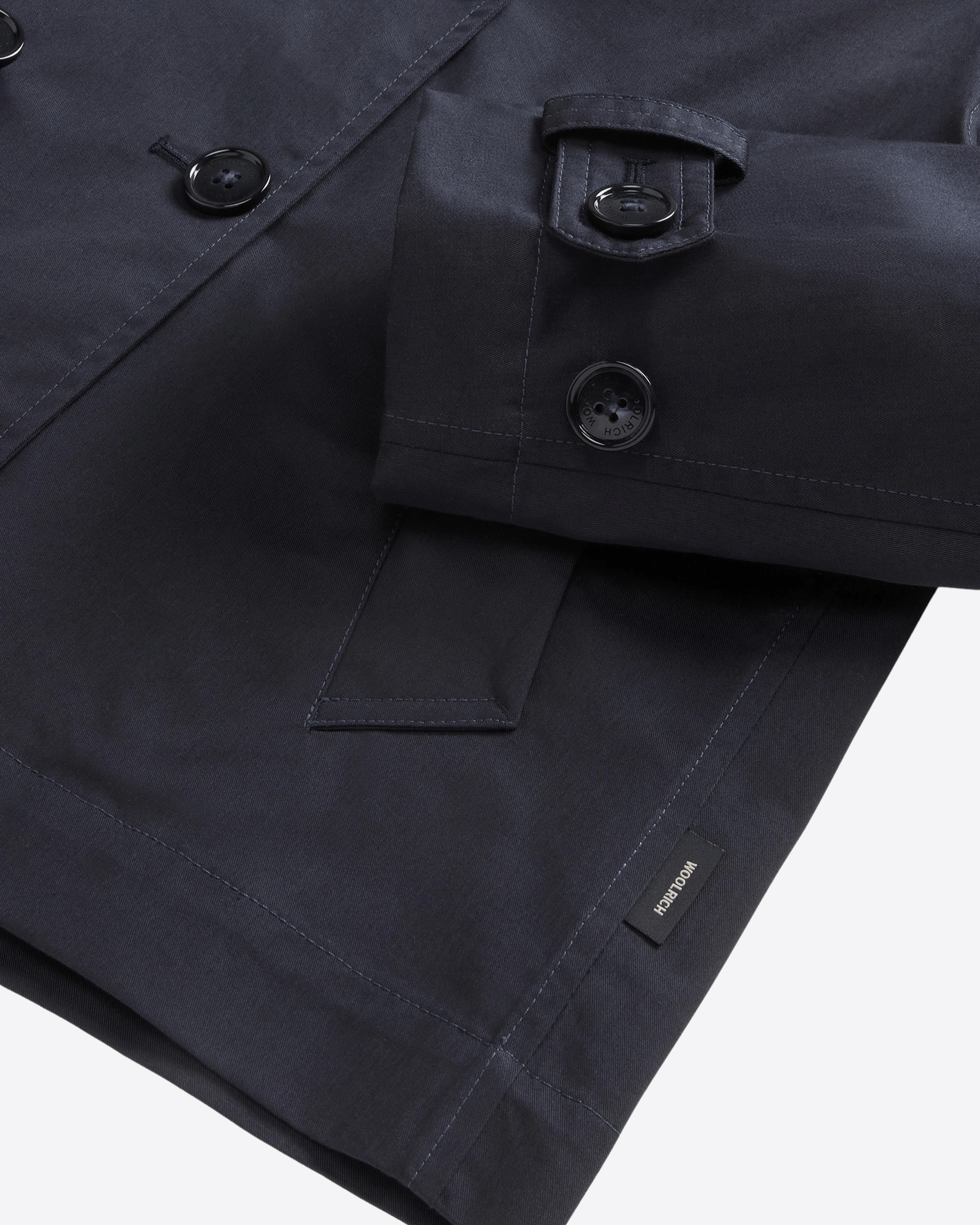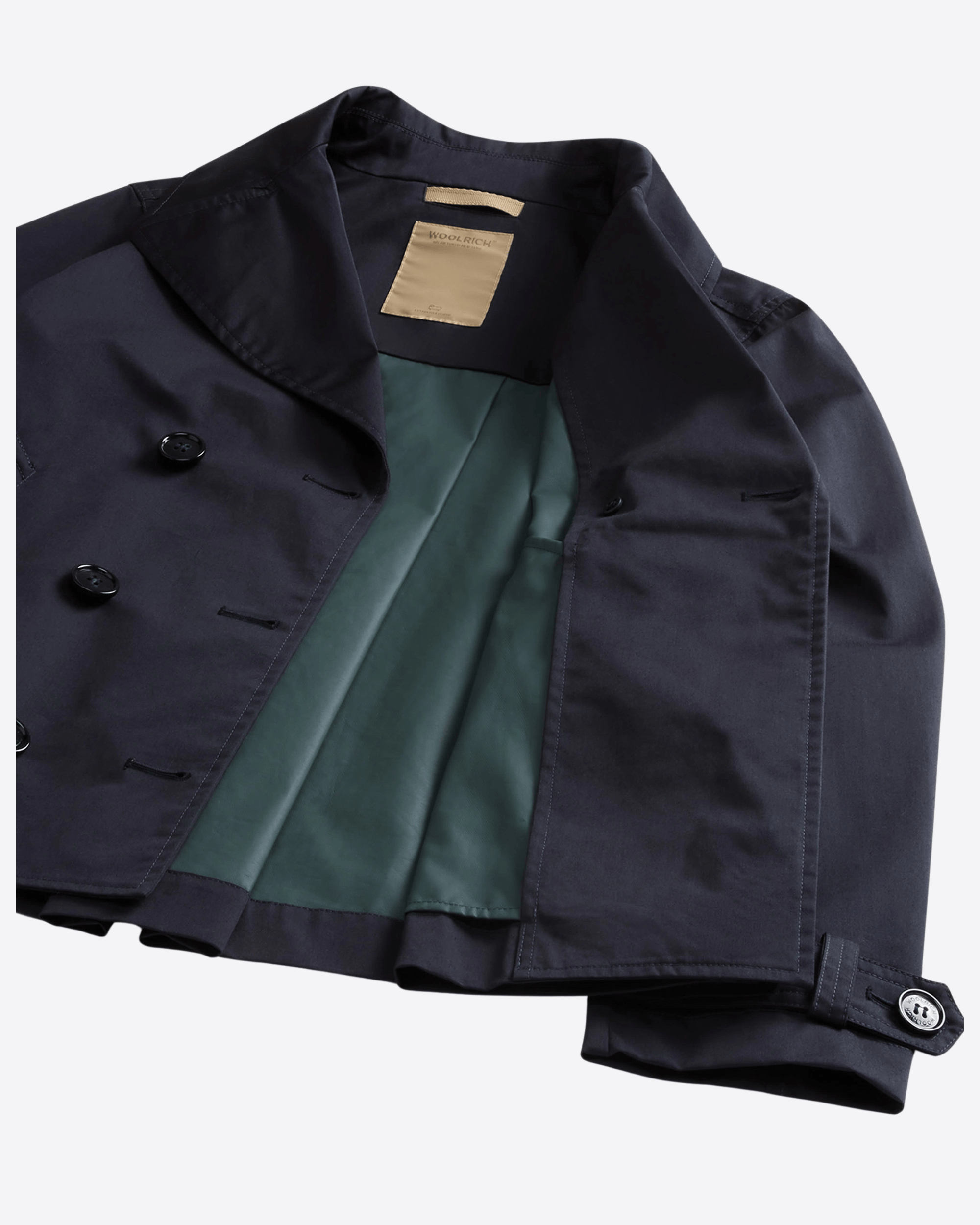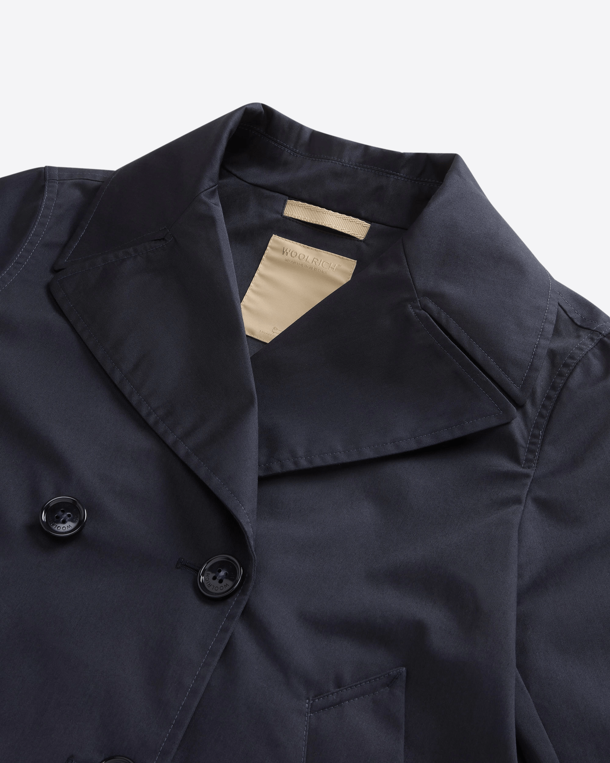 Tech Cotton Peacoat di Woolrich, un’icona dal fascino marinaro reinterpretata con materiali tecnici e performance contemporanee.