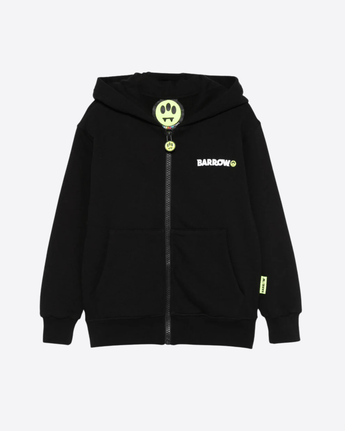Long-sleeved cotton hoodie, front zip fastening, logo and smile print on the chest, two front pockets, print on the back, ribbed cuffs and hem.