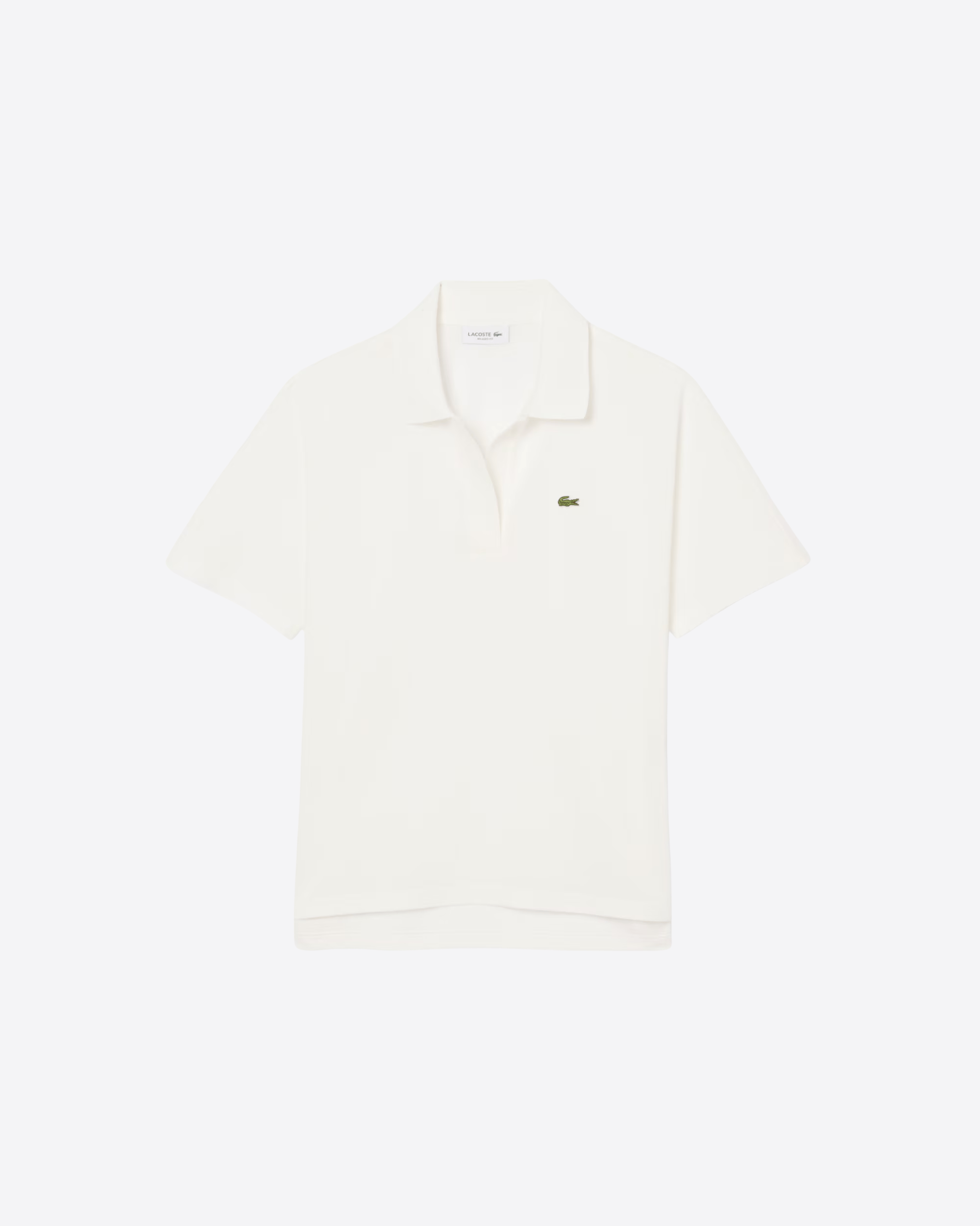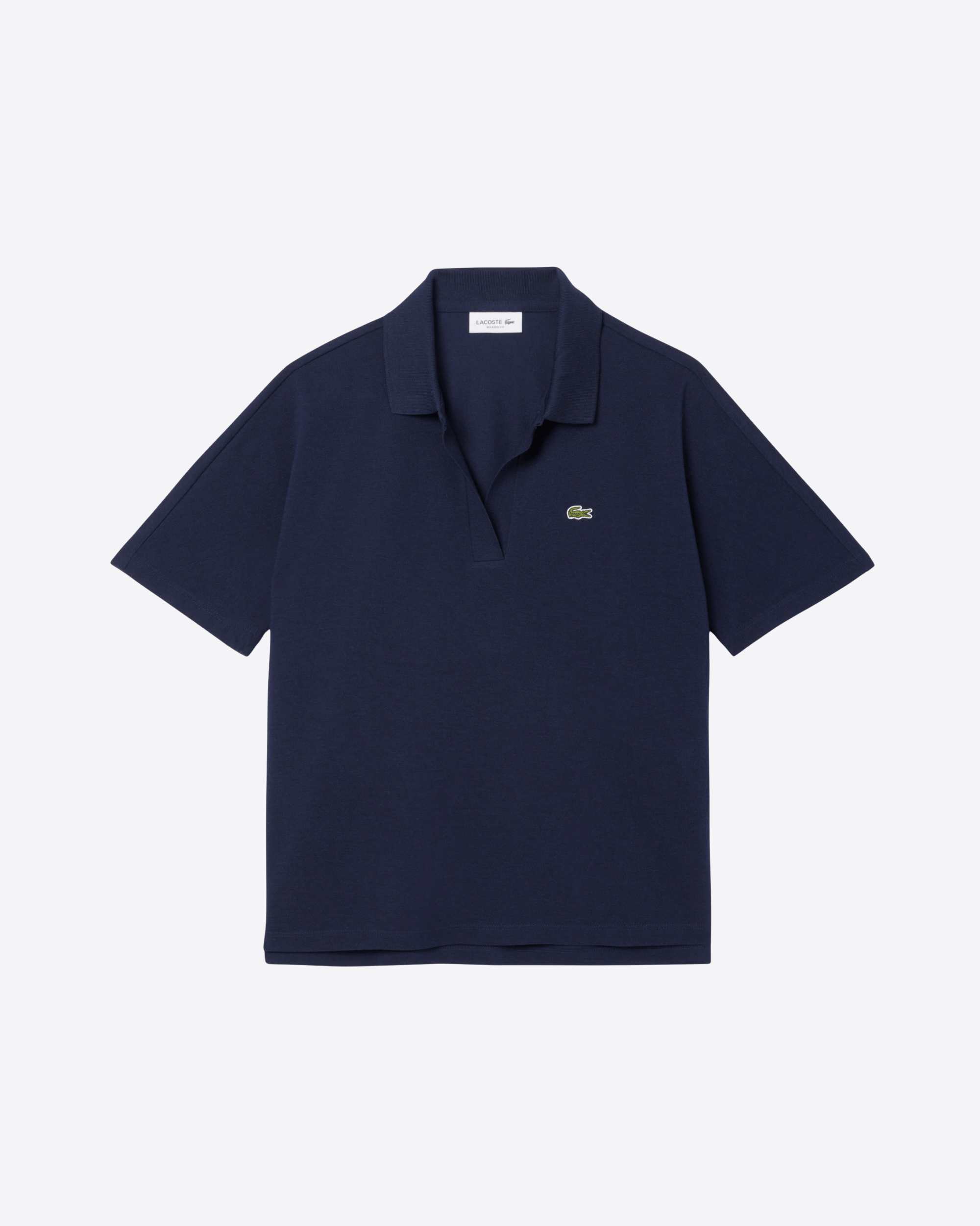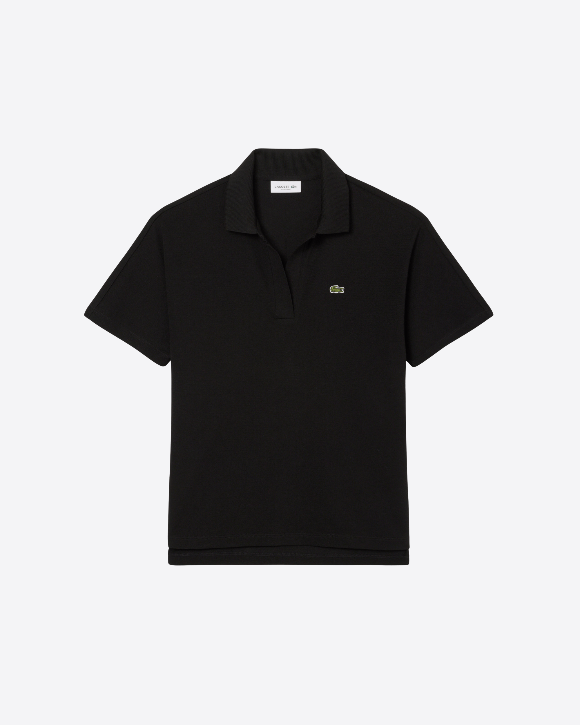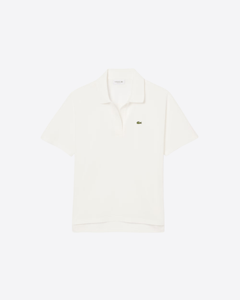 Questa versione dell’iconica polo Lacoste, introdotta nel 1933, è realizzata in tessuto piqué fluido, leggero e traspirante, ideale per uno stile rilassato ma sofisticato. Caratterizzata da scollo aperto senza bottoni e da un taglio comodo con spalle leggermente scese, offre una vestibilità confortevole. Il modello presenta un design asimmetrico, leggermente più corto sul davanti, finiture a costine sul colletto, spacchi laterali e l’inconfondibile coccodrillo ricamato sul petto.