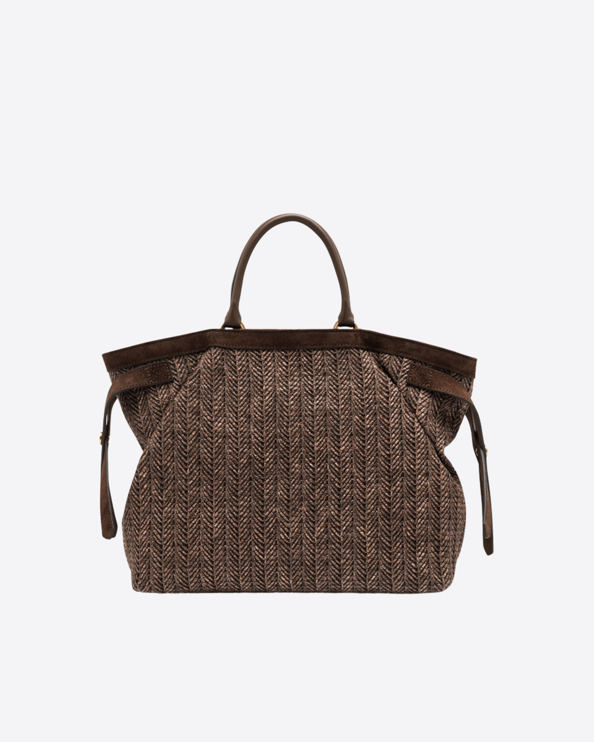 Claudette è una borsa dalla silhouette pratica e versatile, realizzata in paglia intrecciata che evoca un fascino rustico chic, completata da profili in pelle scamosciata. I dettagli in metallo aggiungono un tocco di luminosità, mentre i due manici in pelle e la tracolla regolabile garantiscono una doppia portabilità, a mano o crossbody. Perfetta per un look estivo elegante e funzionale. Dimensioni: 33 x 24 x 14 cm.