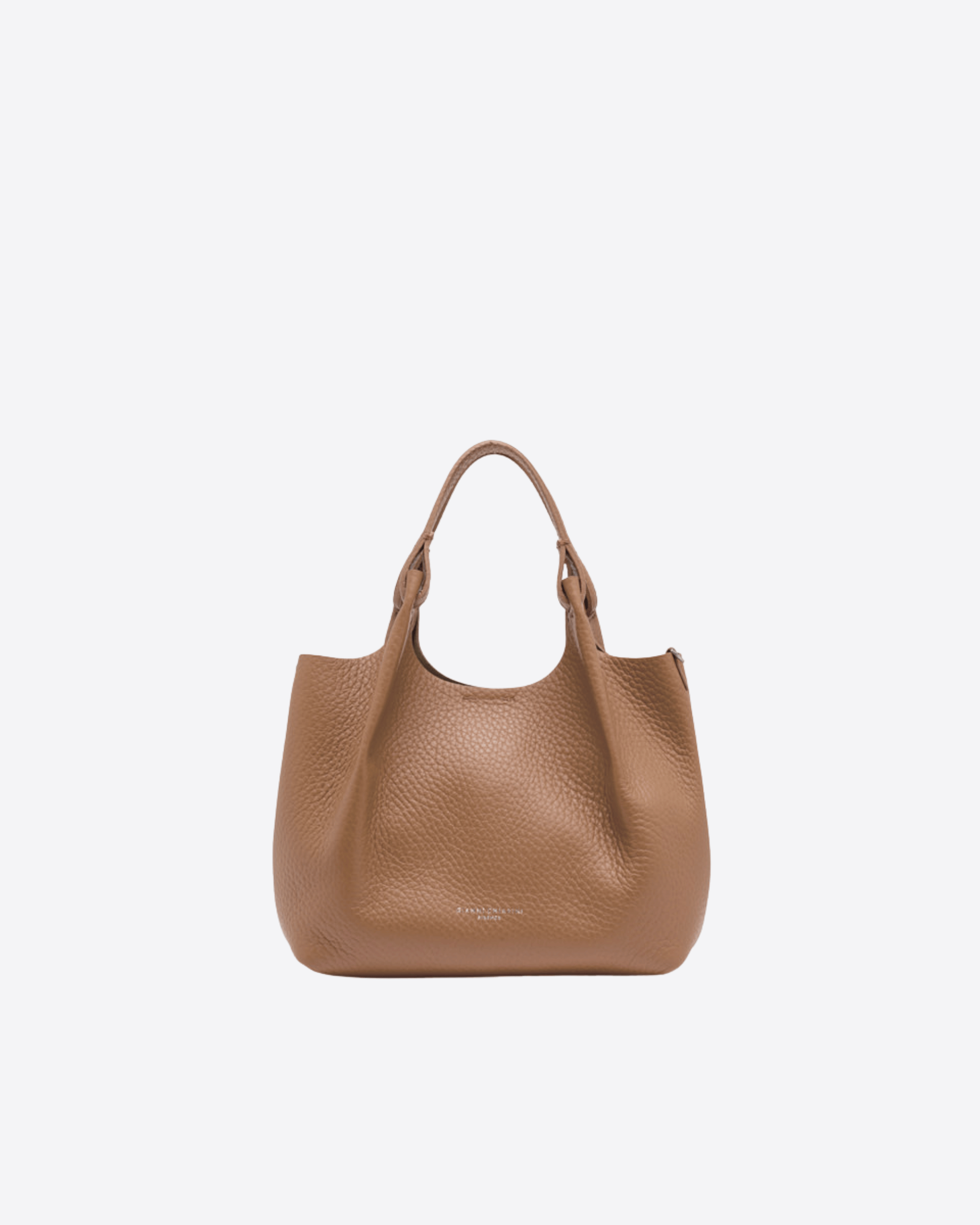 L’icona del brand, la borsa DUA, è realizzata in pelle dalla grana maxi, caratterizzata da una texture unica e distintiva. Il design essenziale è completato da un monoscomparto capiente, profili superiori in pelle e doppi manici in tono. Pratica e versatile, è perfetta per valorizzare ogni look con stile. È inoltre dotata di una pratica pochette interna con chiusura a zip. Dimensioni: 24 × 27 × 12 cm.