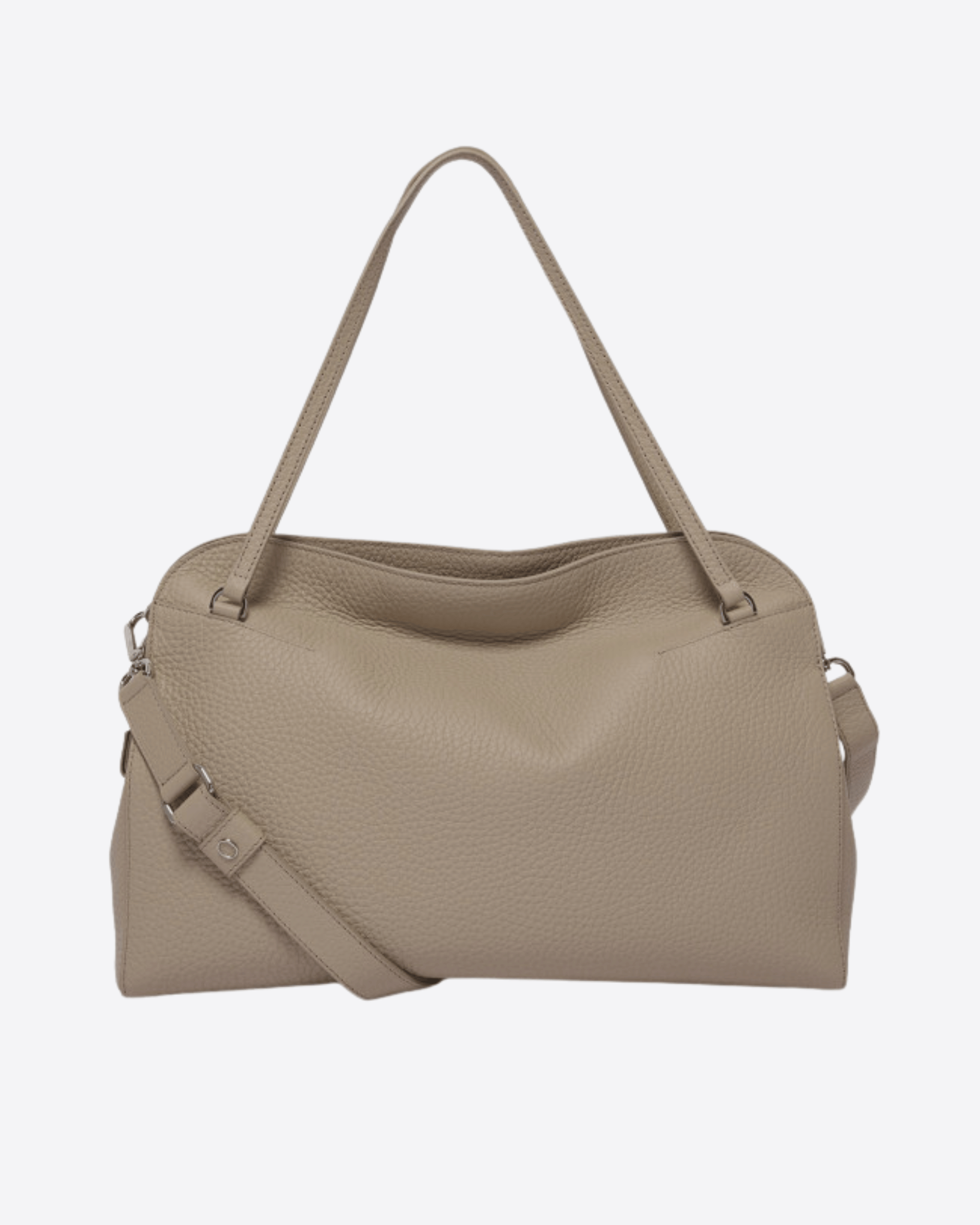 La Borsa Lido Soft Orciani è realizzata in pelle martellata e rappresenta un perfetto equilibrio tra eleganza e funzionalità. L’interno è organizzato con tre taschini, di cui uno con chiusura a zip, ideali per mantenere tutto in ordine. La chiusura con zip garantisce praticità e sicurezza. Dotata di doppio manico da portare a spalla e di tracolla regolabile e removibile, si adatta a diverse esigenze di stile e utilizzo. Rifinita con metallerie in finitura palladio, è un accessorio di alta qualità Made in Italy. Dimensioni: larghezza 35 cm, altezza 23 cm, profondità 12 cm.