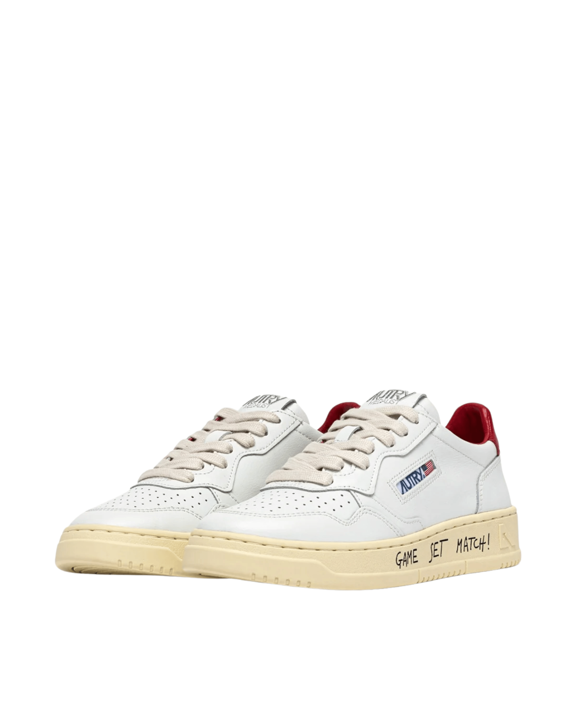 SNEAKERS AUTRY MEDALIST LOW IN PELLE BIANCA E ROSSA CON LETTERING