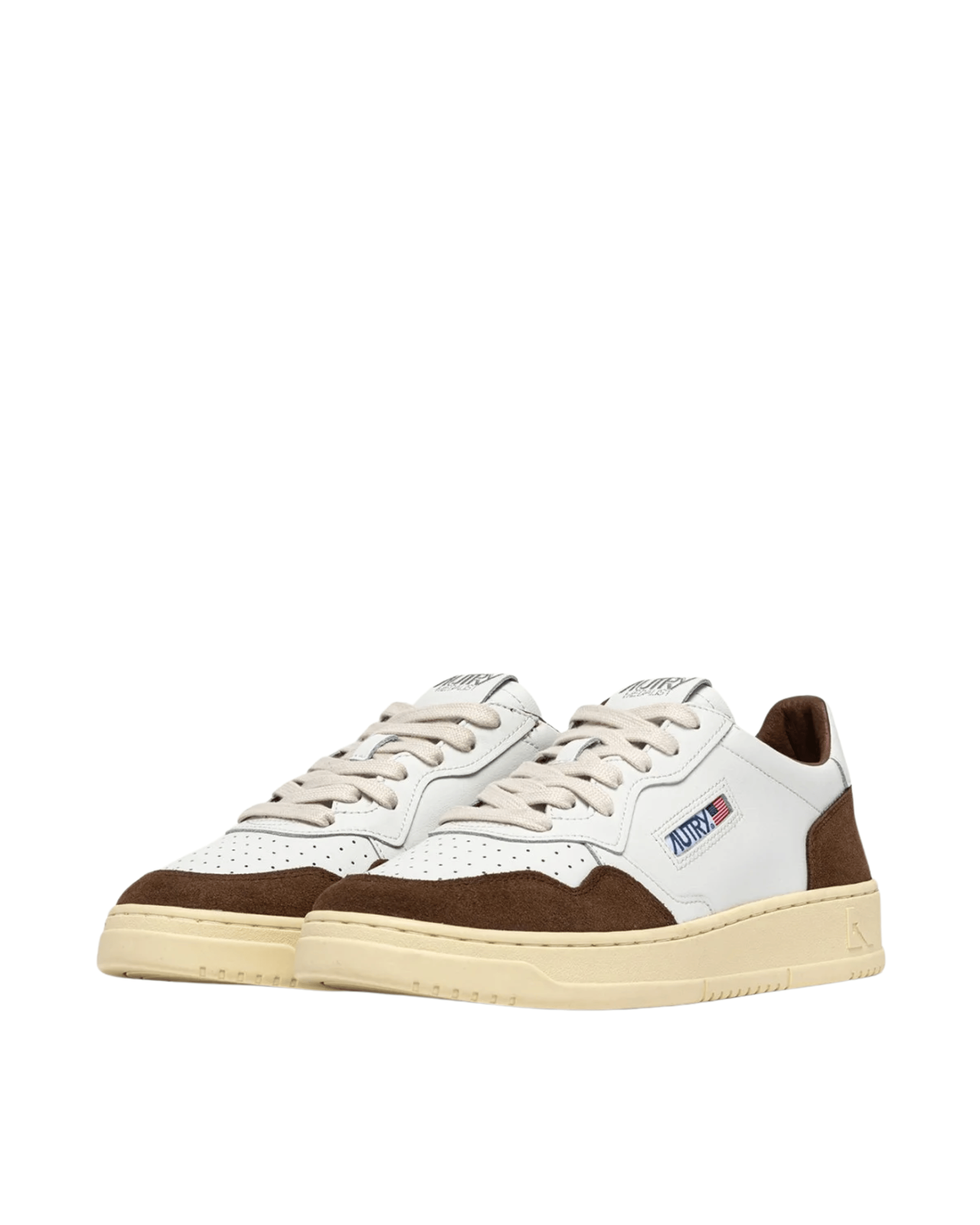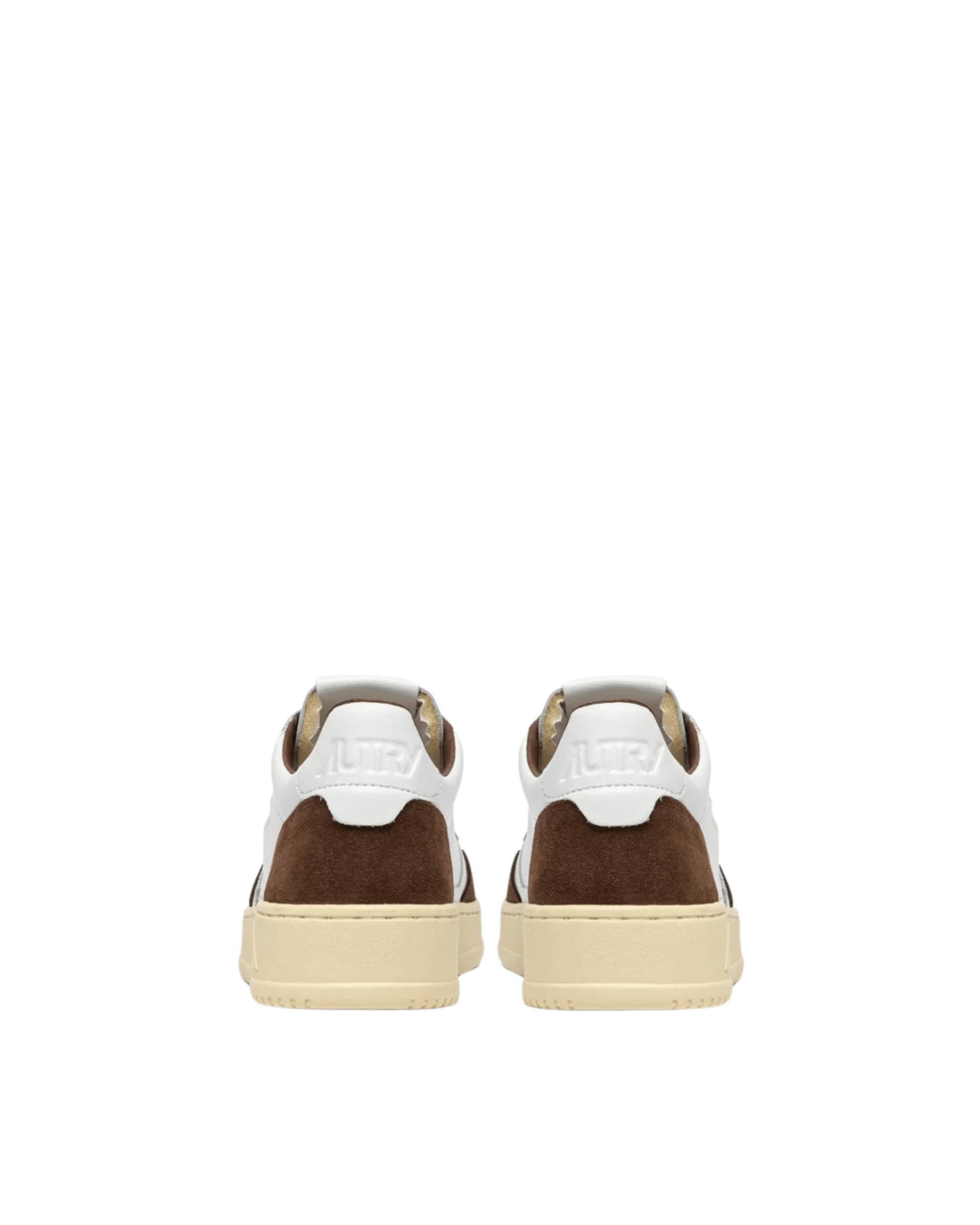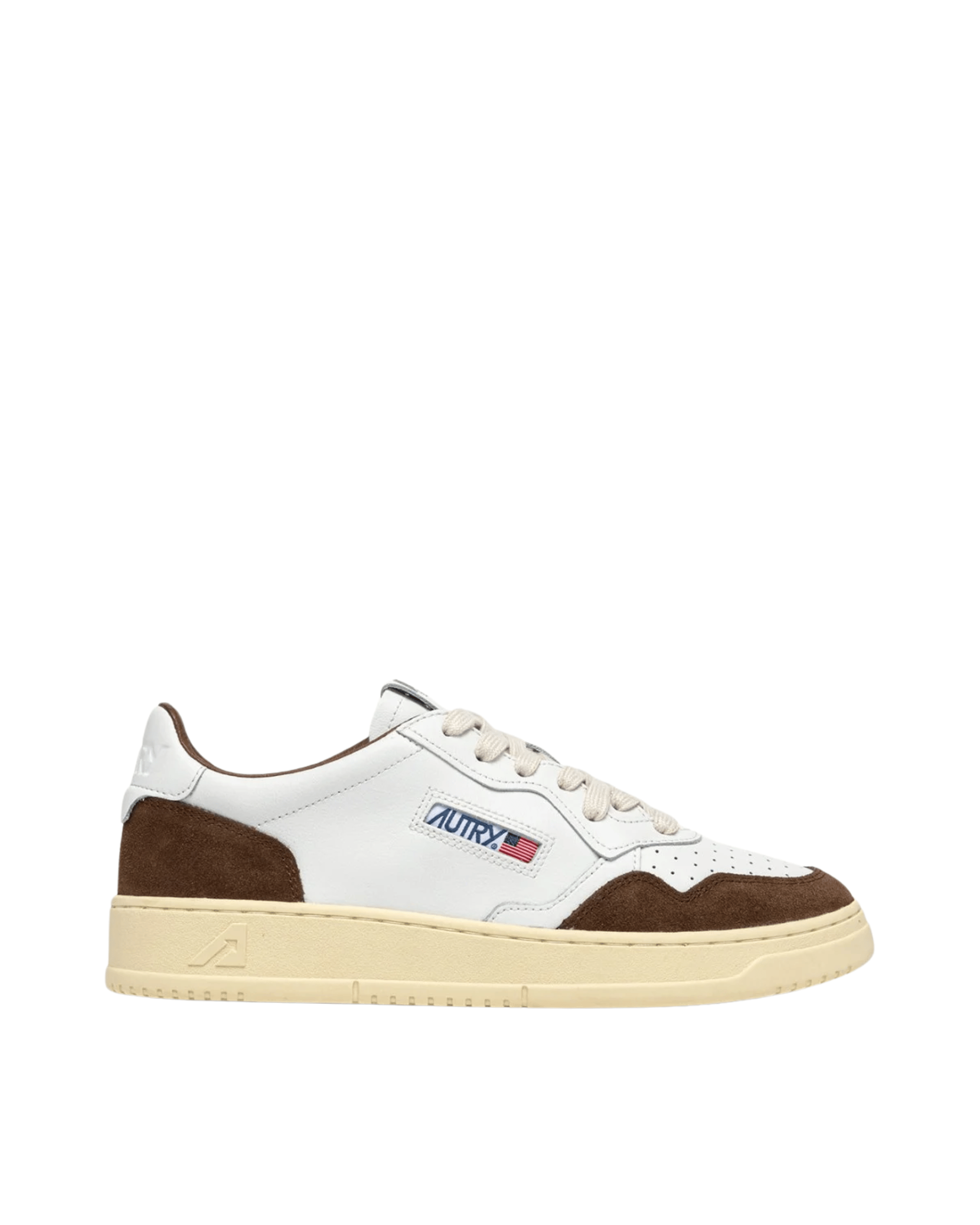 Realizzata in morbida pelle bianca con rinforzi in suede marrone, presenta dettagli logo Autry su tallone, linguetta e lato, per un tocco autentico e distintivo.