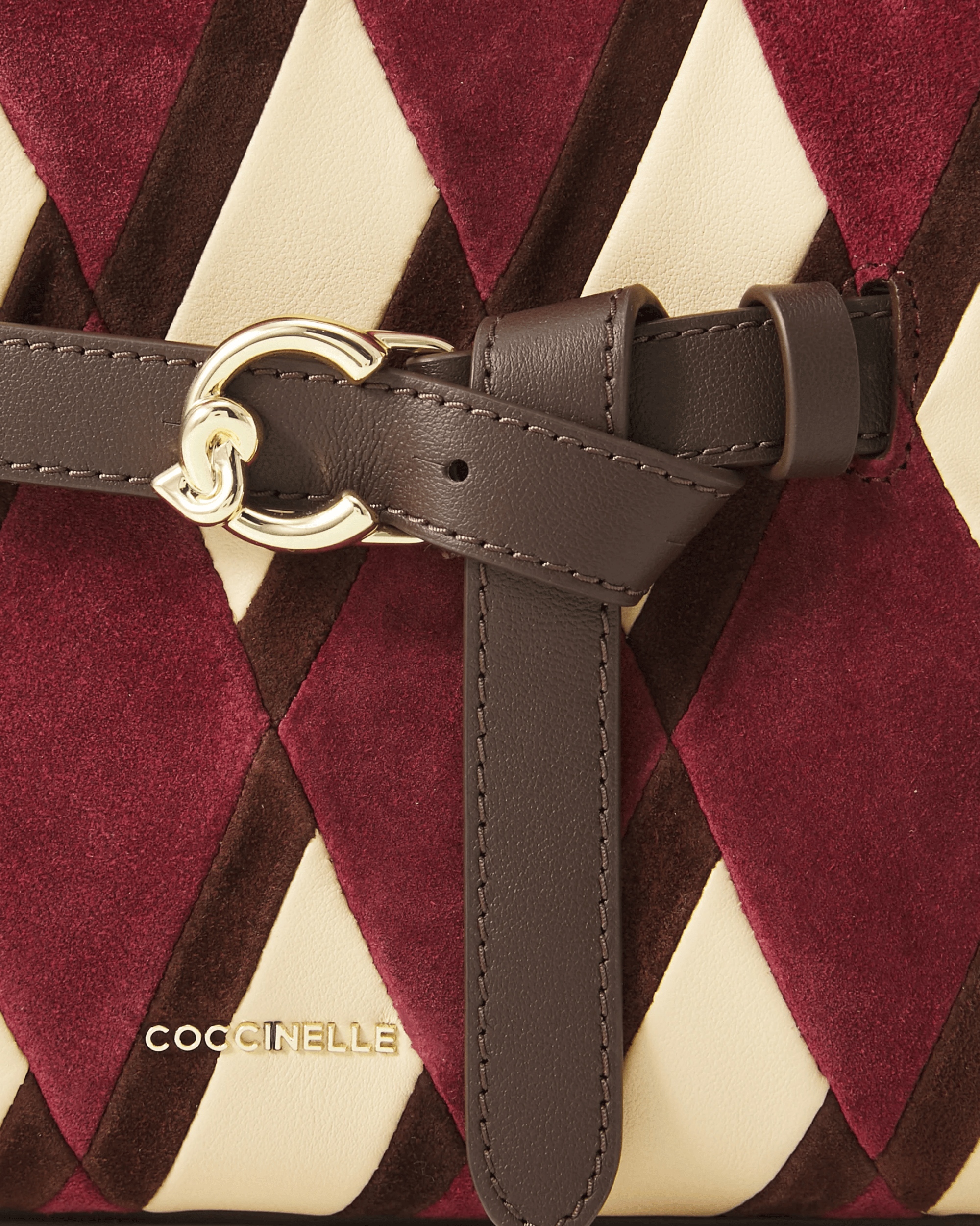 La linea Coccinelle Sabine contrappone struttura e morbidezza e fa evolvere il logo iconico C-Me che diventa cintura attraverso un tocco unico e contemporaneo. La borsa è realizzata attraverso una speciale lavorazione patchwork e ha una portabilità a mano. La comoda tracolla aggiuntiva removibile permette un doppio utilizzo. Questo modello è realizzato attraverso una lavorazione con strisce di vari materiali e colori che vengono cuciti insieme per creare la fantasia desiderata.