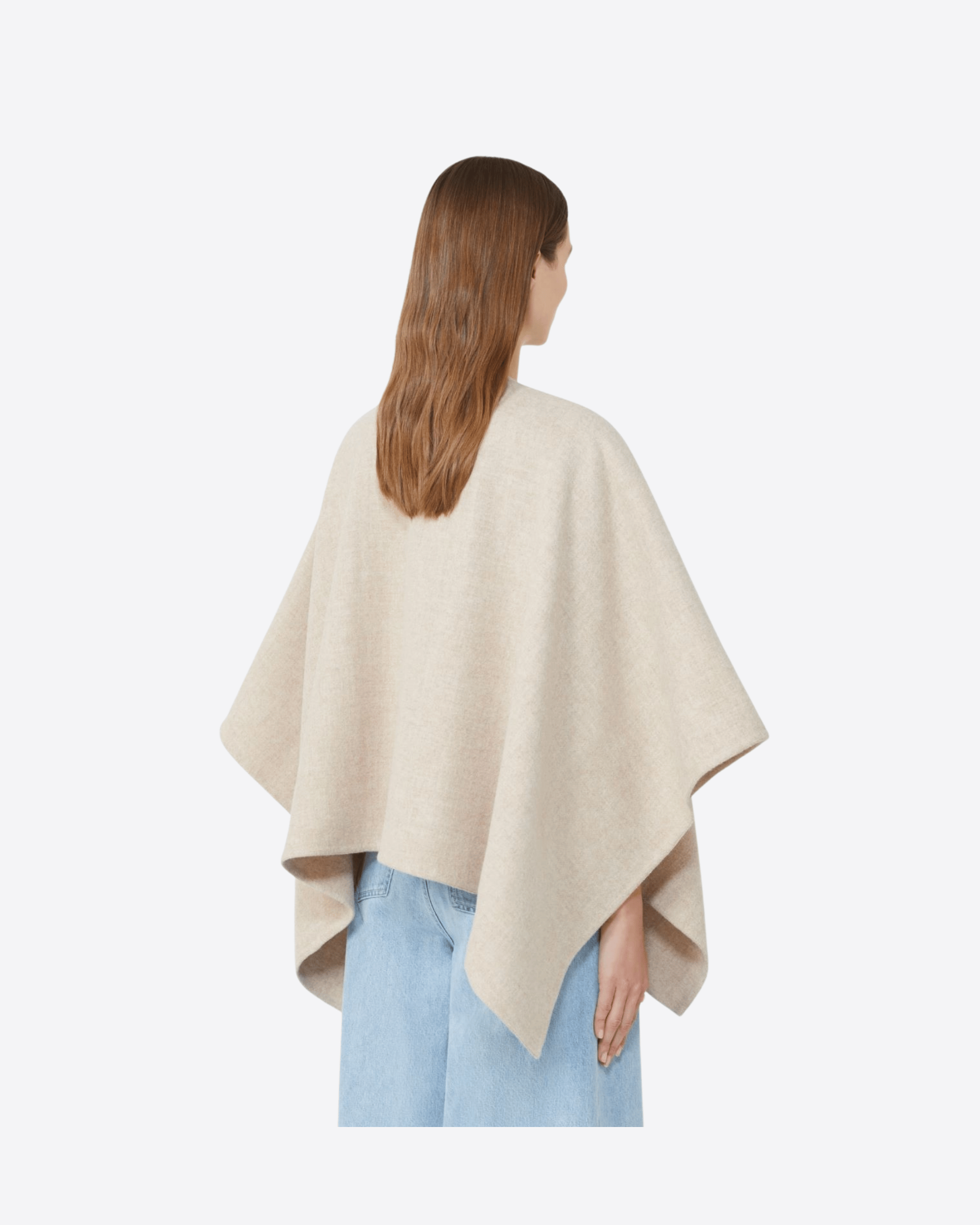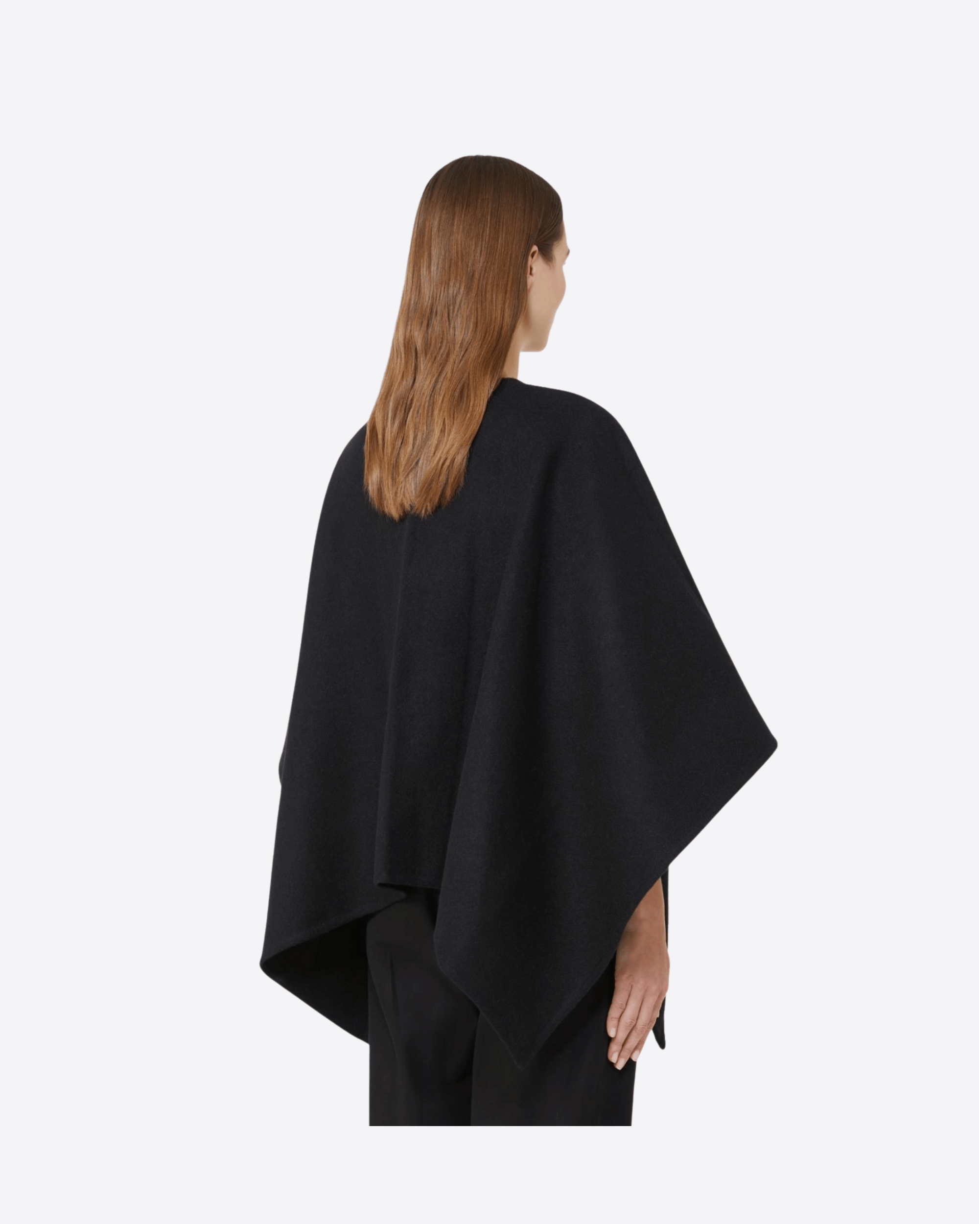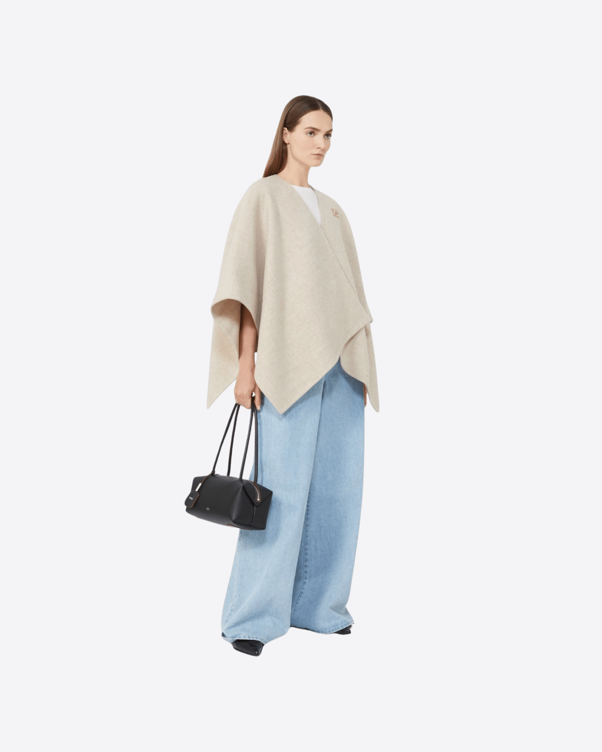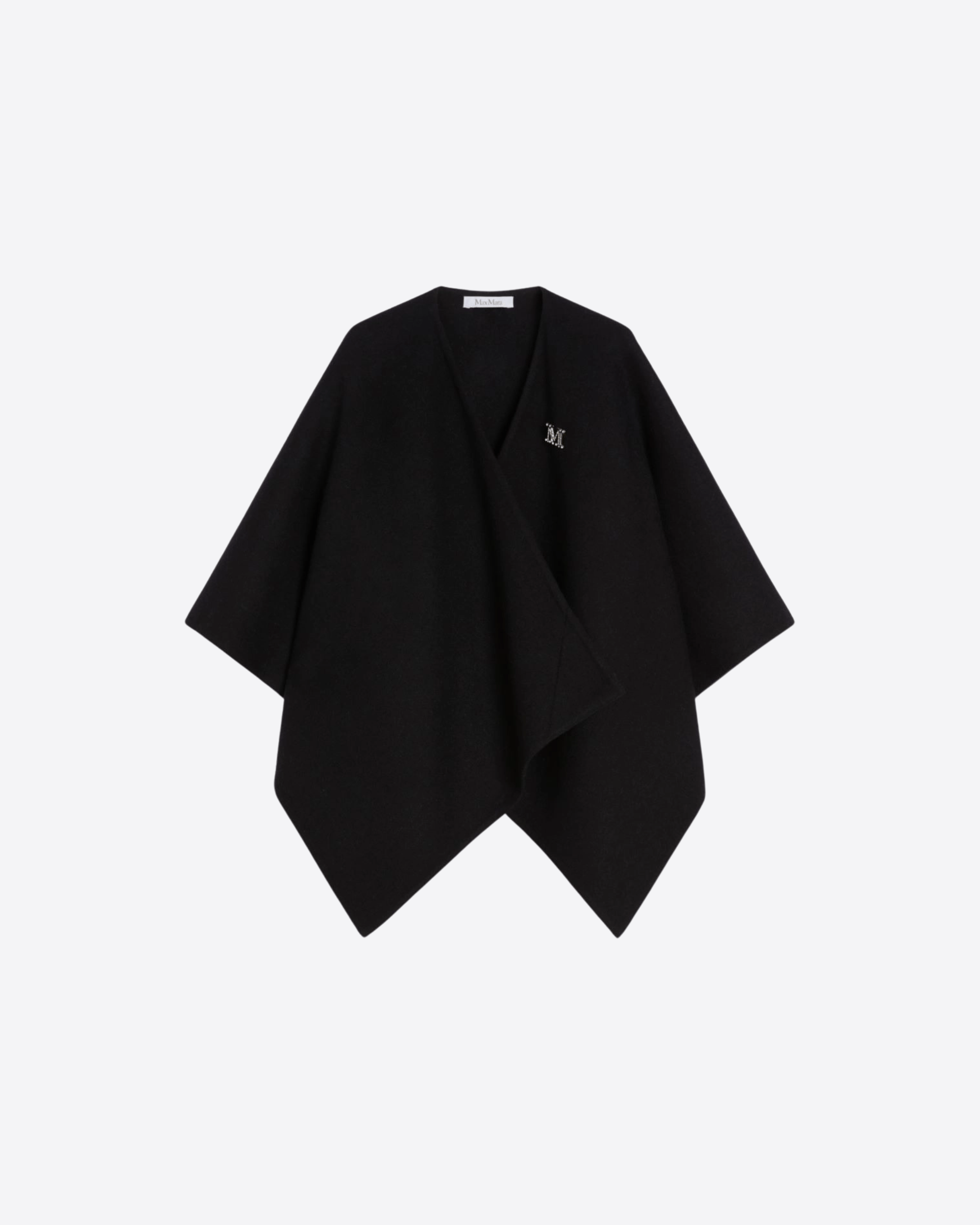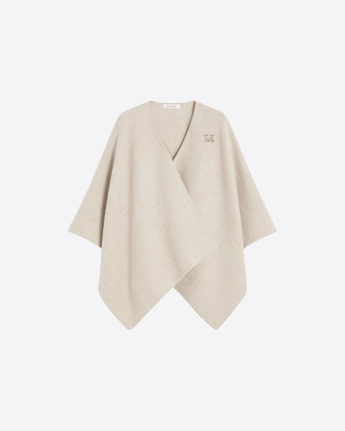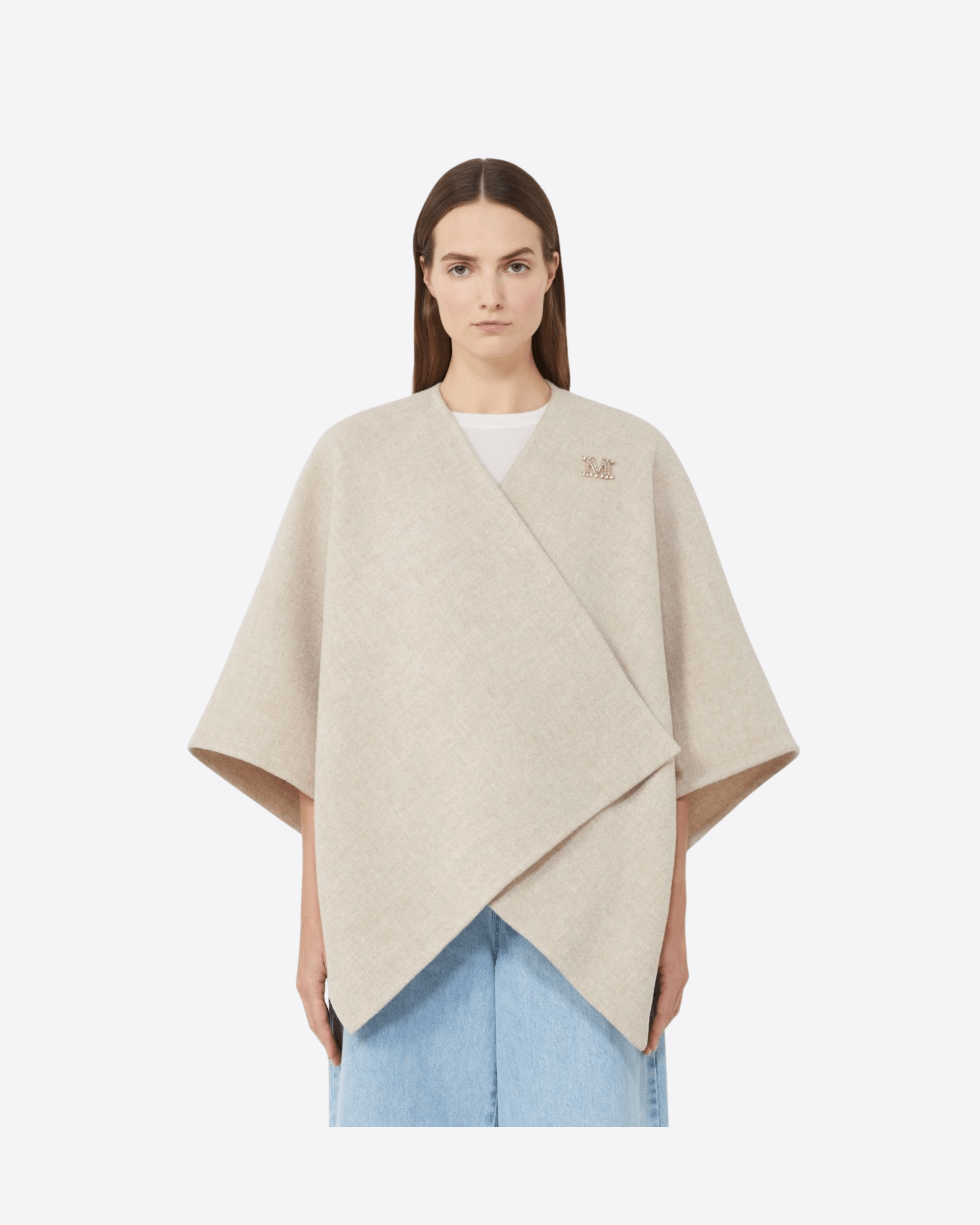 Cappa corta dal design rettangolare, realizzata in un raffinato mix di alpaca e lana dalla mano morbida. Il volume avvolgente dona un’allure sofisticata e permette di indossarla sia chiusa con la spilla decorata dal Monogram M con cristalli, sia aperta con maxi rever per un look più disinvolto. Completata da una maxi label Max Mara applicata nell’angolo, è un capo elegante e versatile, perfetto per valorizzare ogni outfit.