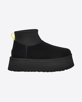 Il bordo in tessuto, anch’esso realizzato con fibre di poliestere riciclato al 100%, completa il design con un tocco funzionale. Il plateau da 5,1 cm aggiunge slancio alla silhouette, mentre il logo UGG® in rilievo sull’etichetta in pelle scamosciata posta sul tallone firma con discrezione questo modello versatile e contemporaneo.