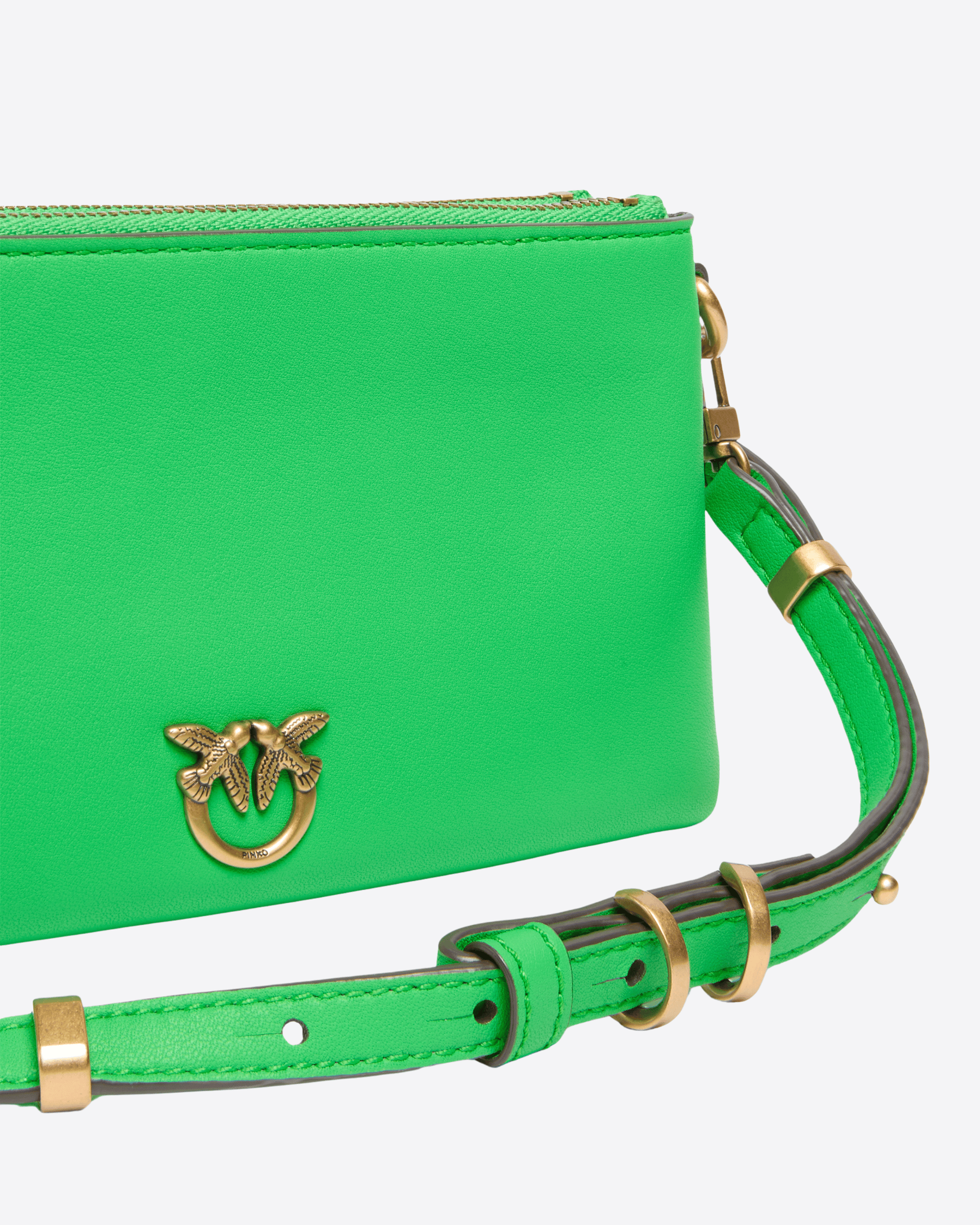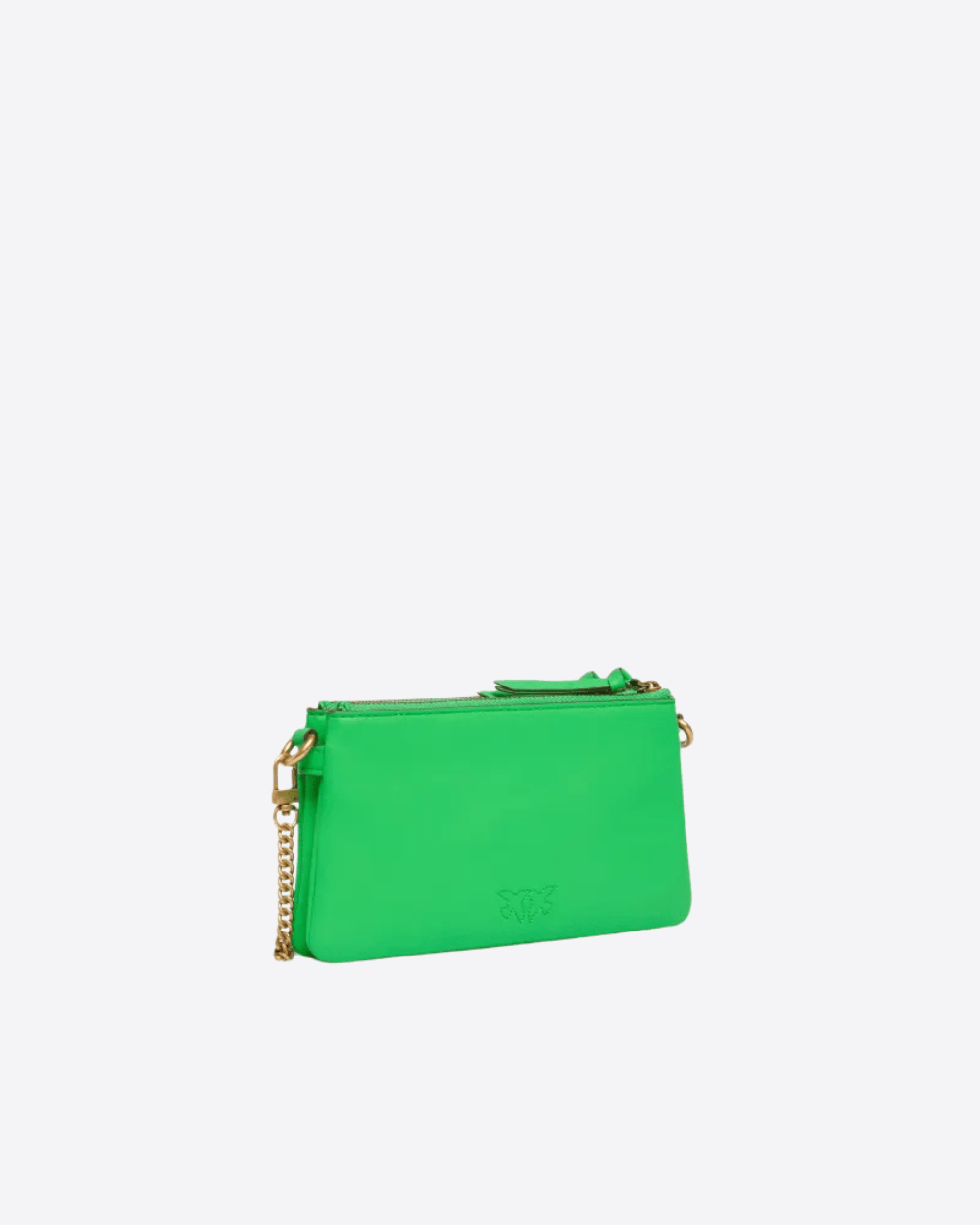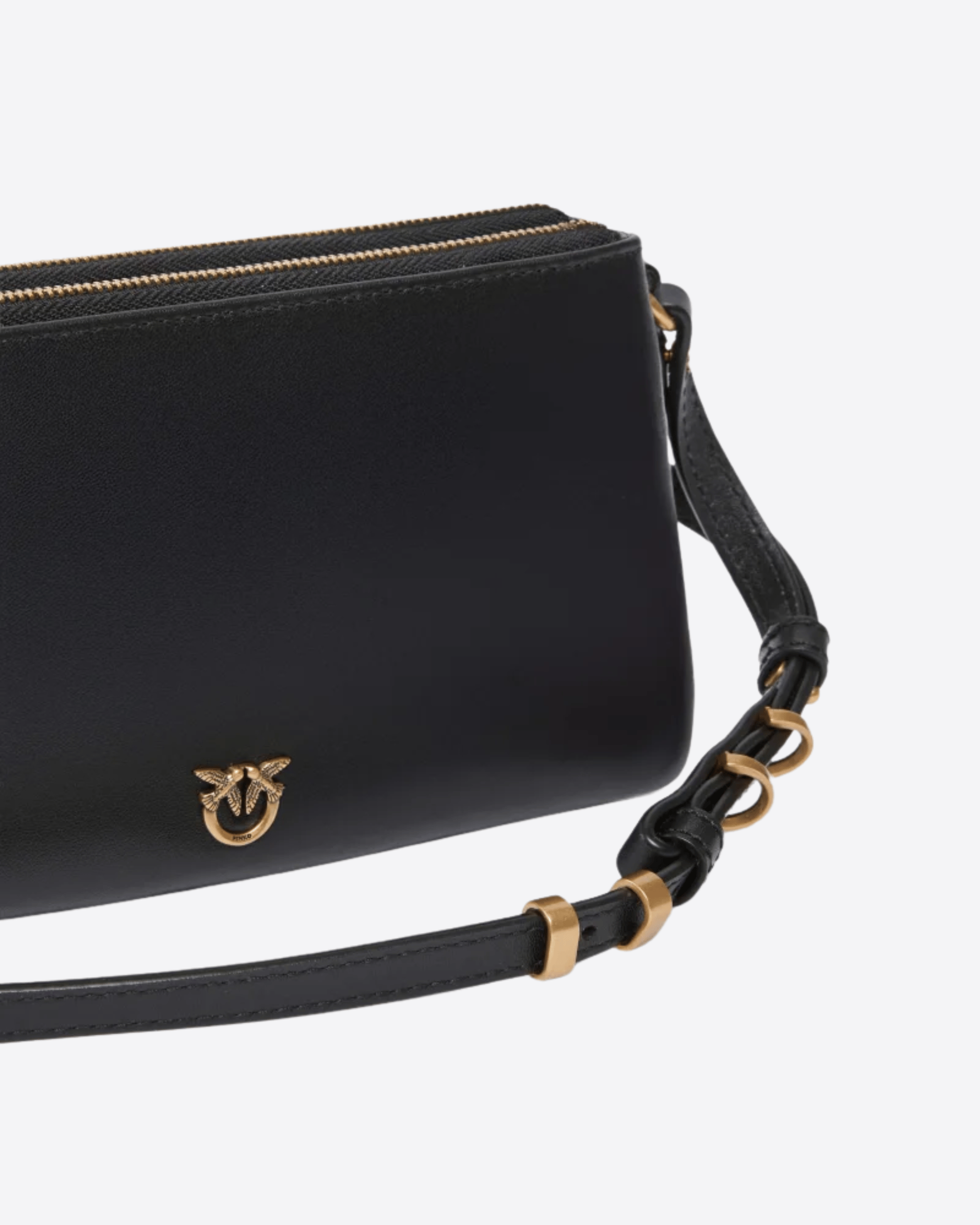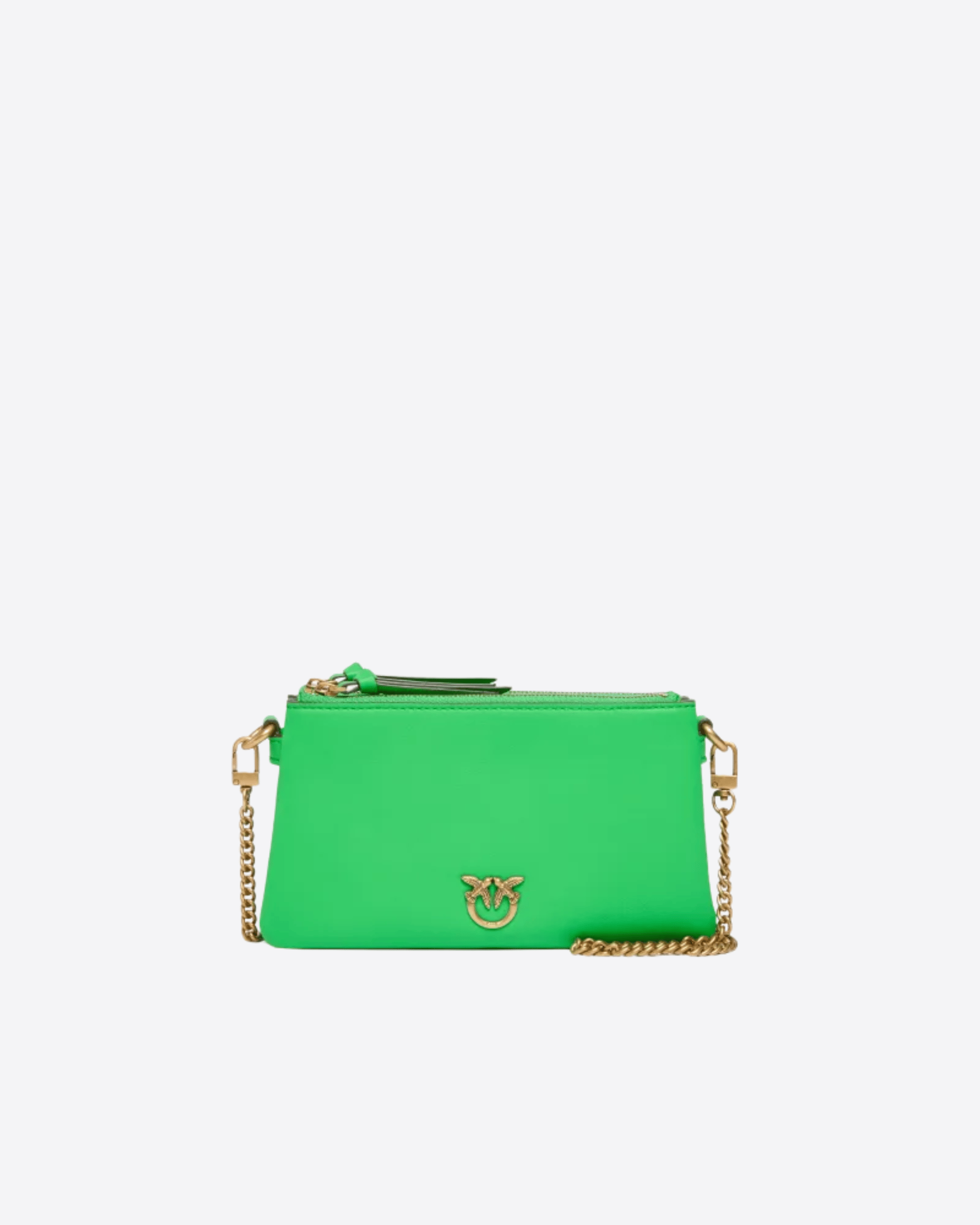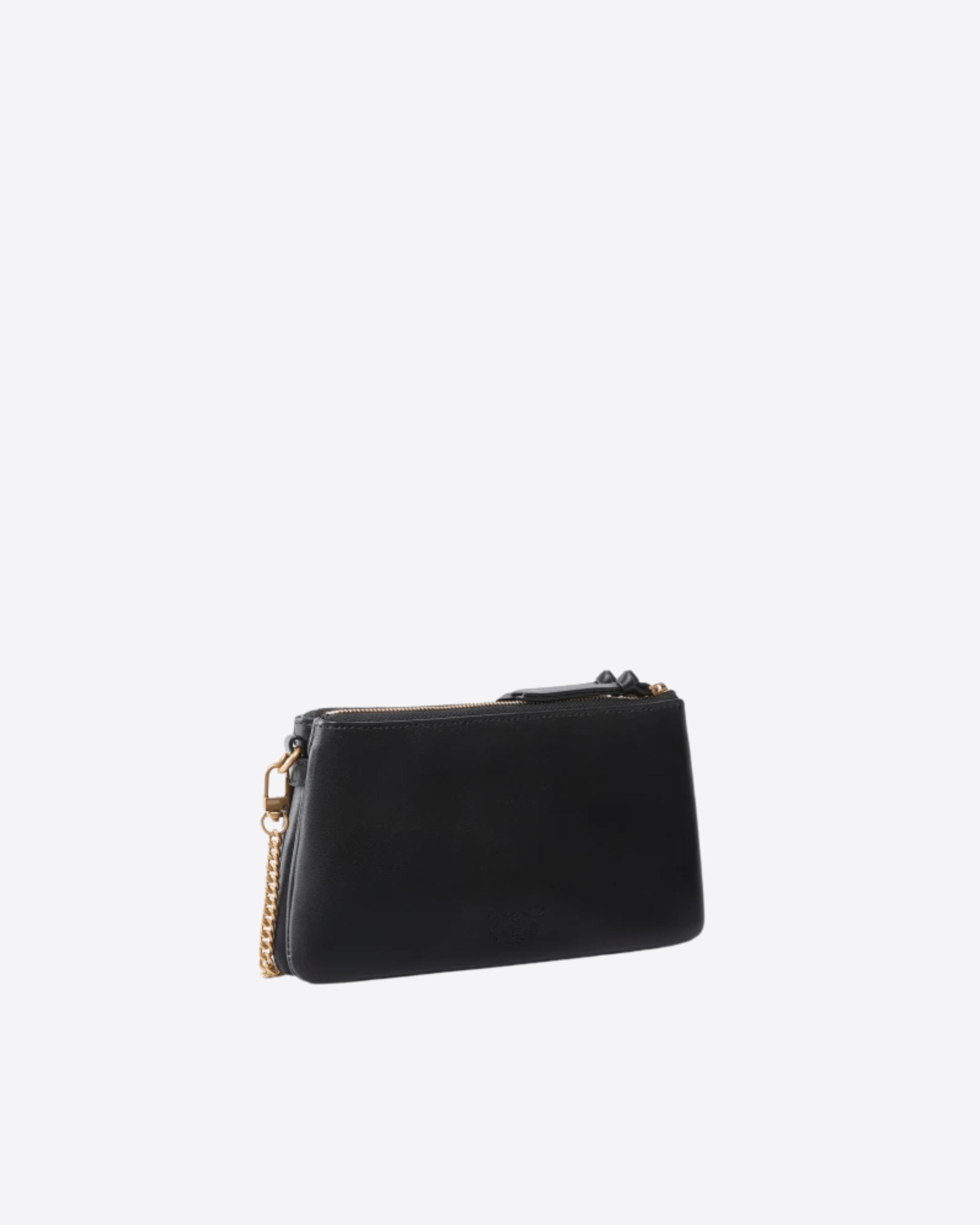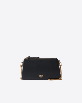 Borsa piccola stile pochette Mini Double Bag dalla forma rettangolare in pelle, dotata di una fodera in cotone. Completa di piccola tracolla regolabile e rimovibile in pelle e catena per una portabilità a mano, a spalla, oppure crossbody, la borsetta risulta estremamente versatile e pratica, anche grazie alle zip che la suddividono in due scomparti. Il modello ti donerà un'aria vivace, mentre l'iconico logo Love Birds si fa portavoce dell'inimitabile stile PINKO. Le coste a contrasto, ben visibili lungo la tracolla, testimoniano invece l'artigianalità del prodotto.