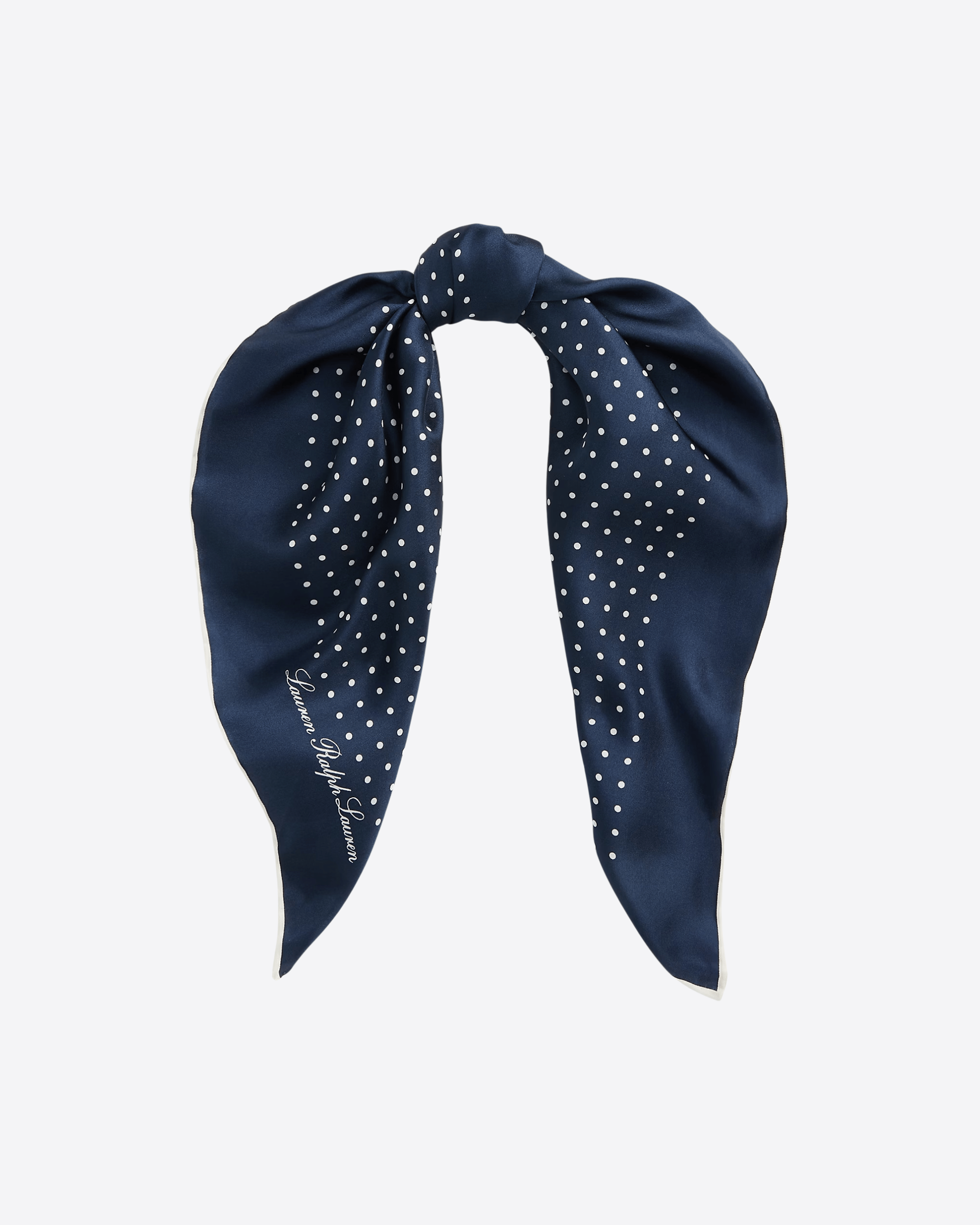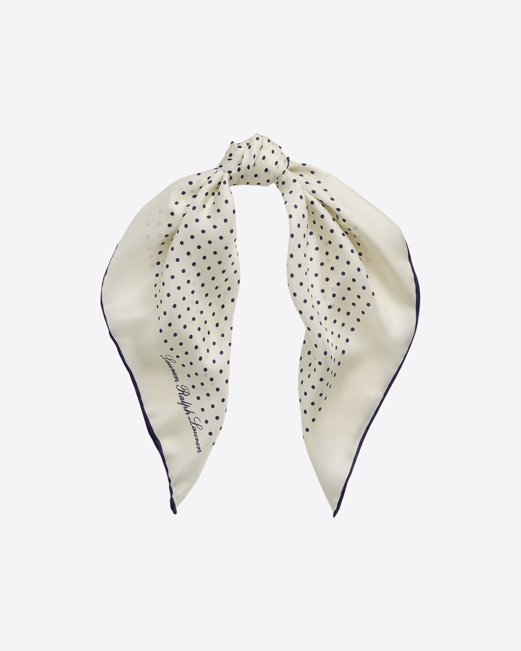 Un liscissimo twill di seta dona un elegante drappeggio a questo foulard dall'incantevole stampa a pois. Rifinito con l'esclusivo logo Lauren, l'articolo vanta estremità arrotolate a mano, per un tocco di fascino artigianale.