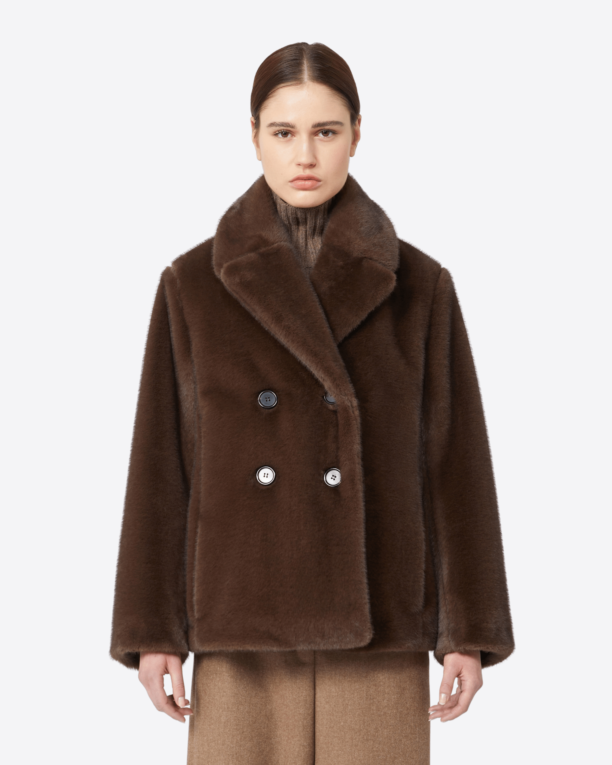 Giacca doppiopetto caratterizzata da una silhouette avvolgente con taglio leggermente cropped.