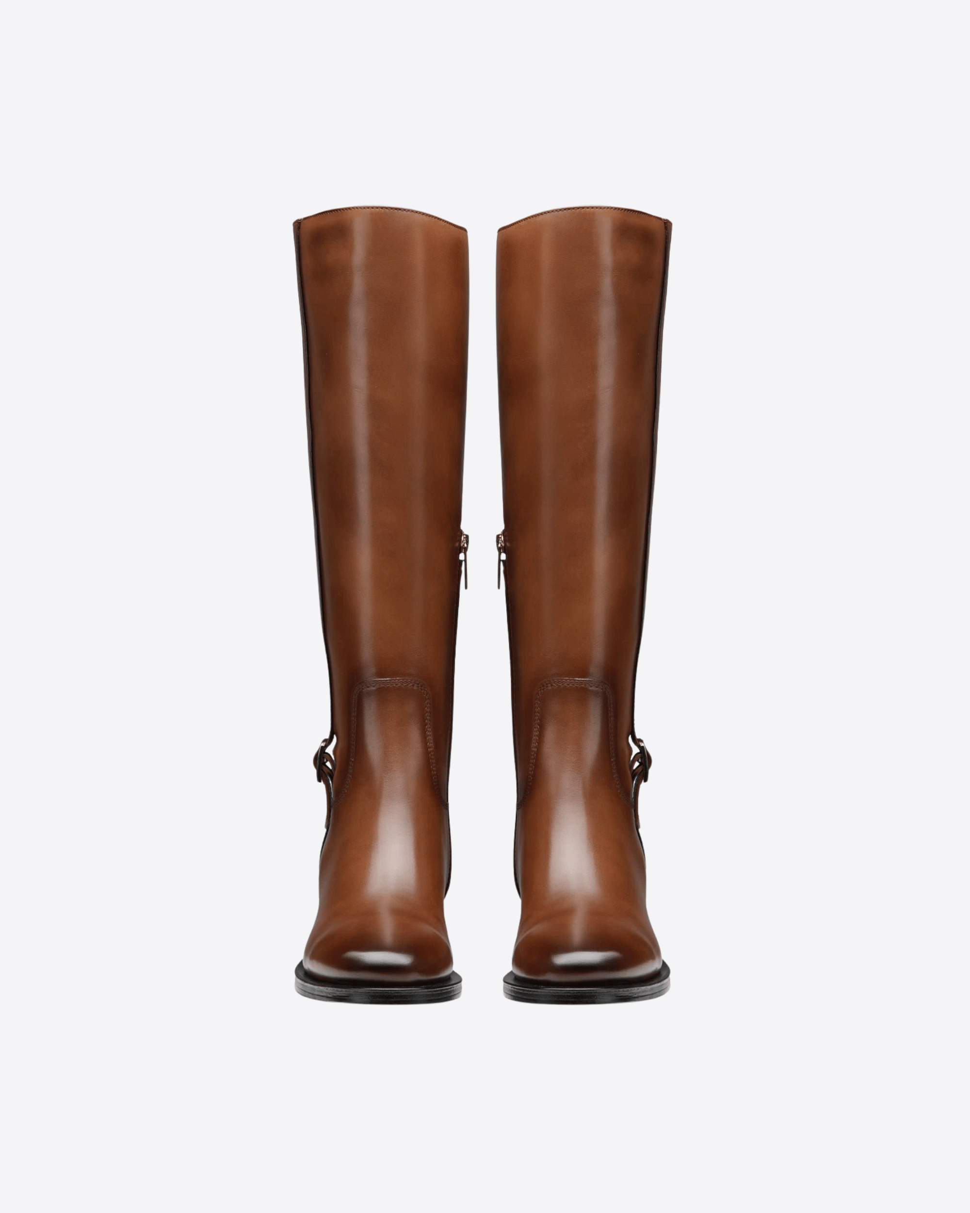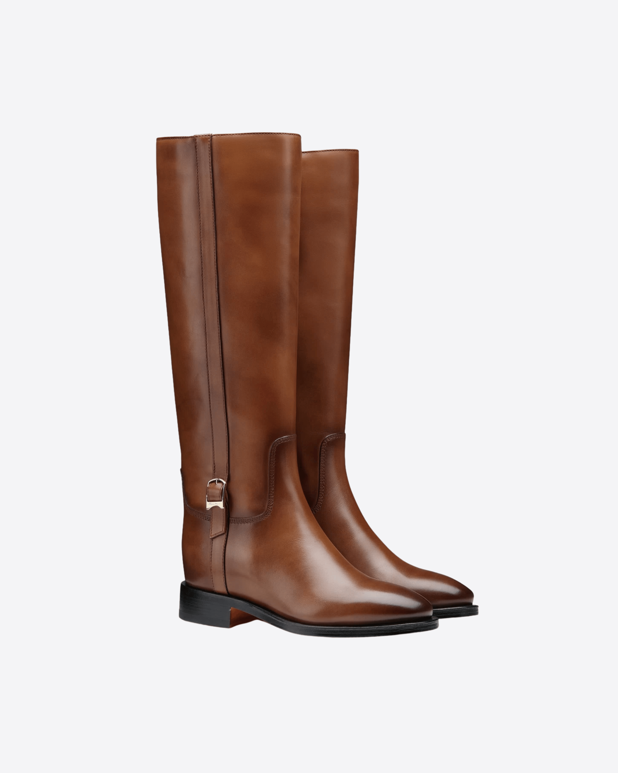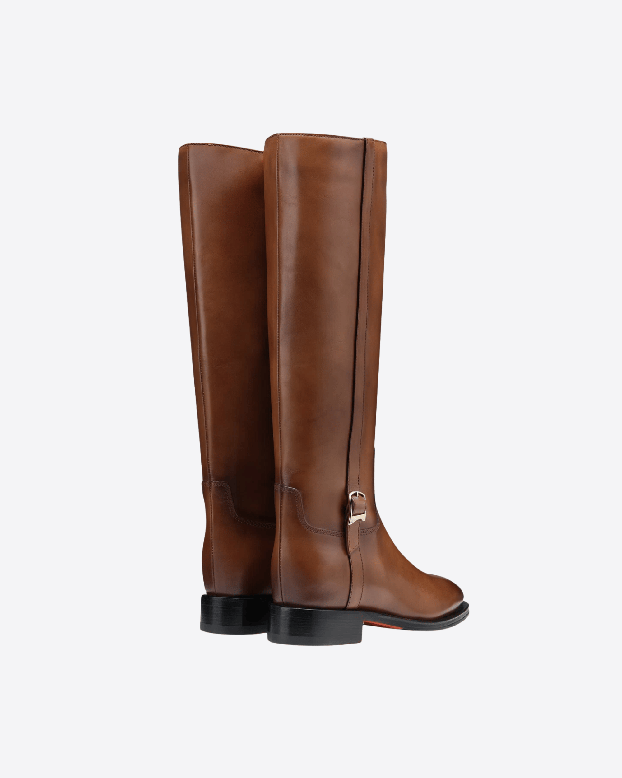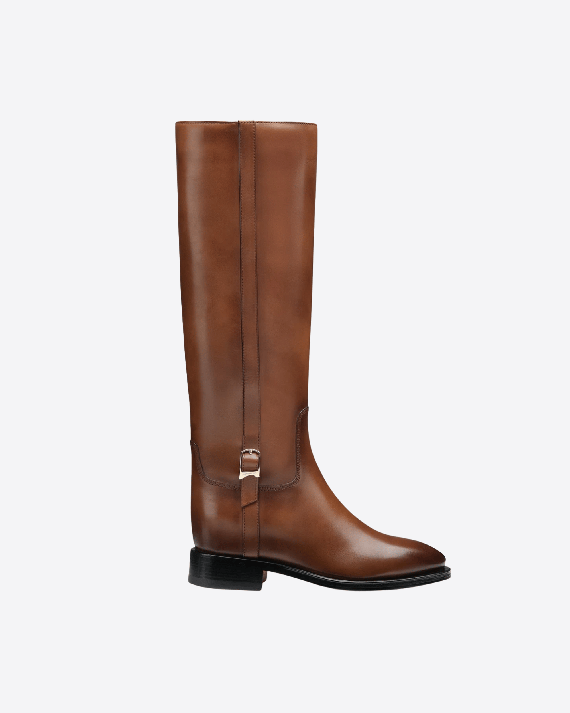 Ispirato all'estetica cavallerizza e rifinito con esclusivo savoir faire artigianale, questo stivale Santoni è il classico senza tempo da indossare in ogni occasione. Realizzato in pelle con velature di colore fatte a mano, il modello ha un design iconico con gambale dritto e il dettaglio in metallo sul lato d'ispirazione doppia fibbia. La punta arrotondata, il tacco largo e il fondo in cuoio con inserti in gomma offrono massimo comfort.