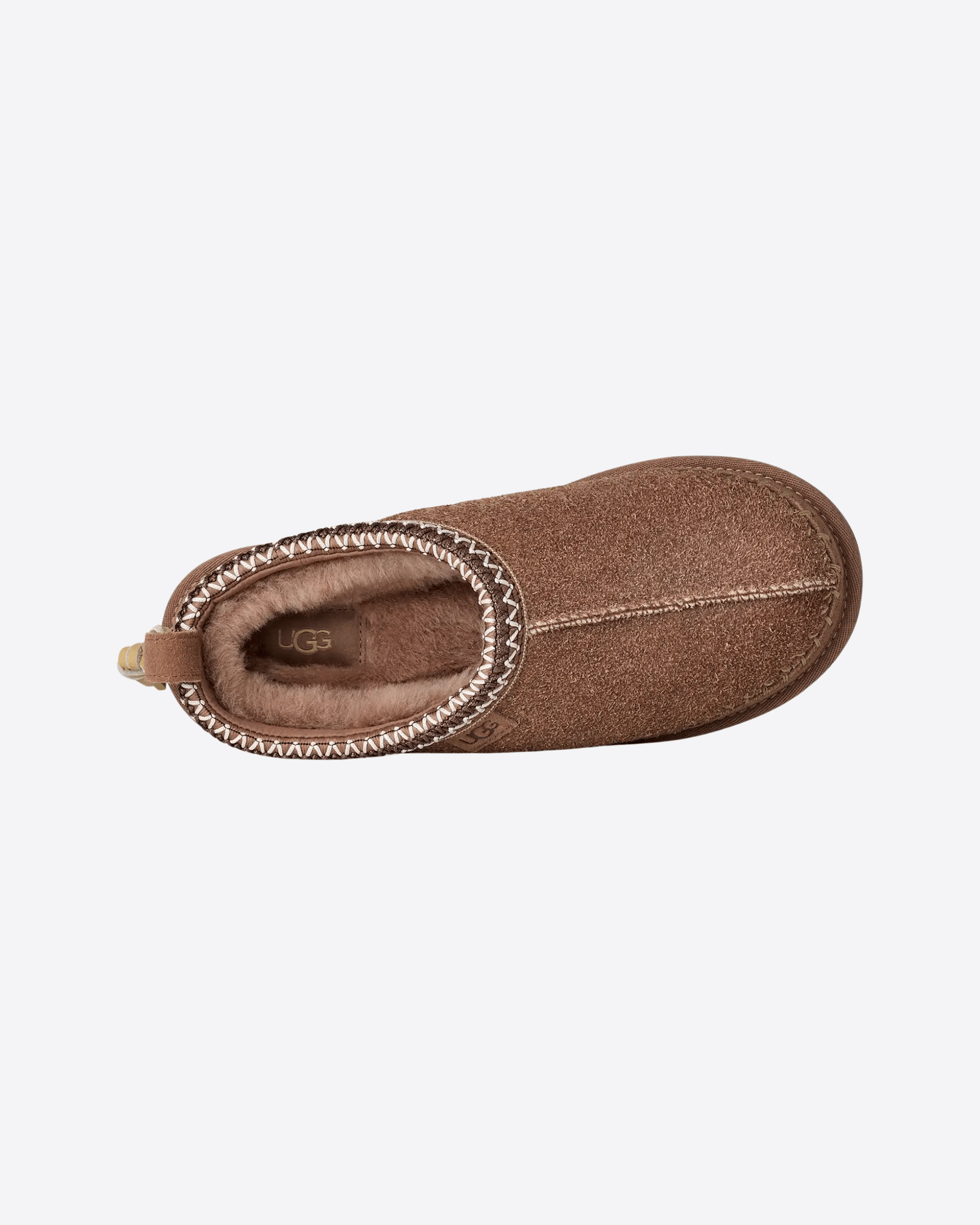 Tasman è uno de modelli classici più amati di UGG, apprezzato per la grande indossabilità e lo stile disinvolto. E la versione Tasman Biarritz non fa eccezione. Questo Tasman in edizione limitata si ispira alle vacanze improvvisate di un weekend, ai tramonti da sogno e ai momenti suggestivi in riva al mare. È realizzato con una tomaia in morbido camoscio, un collarino con l’esclusivo UGGbraid e doppie cuciture. Sono inoltre presenti cuciture decorative e un tirante in vera pelle. L’interno è foderato in morbido montone, mentre la suola è realizzata in EVA da canna da zucchero leggero, per avere la sensazione di indossare un paio di ciabatte, che sia in casa o fuori.