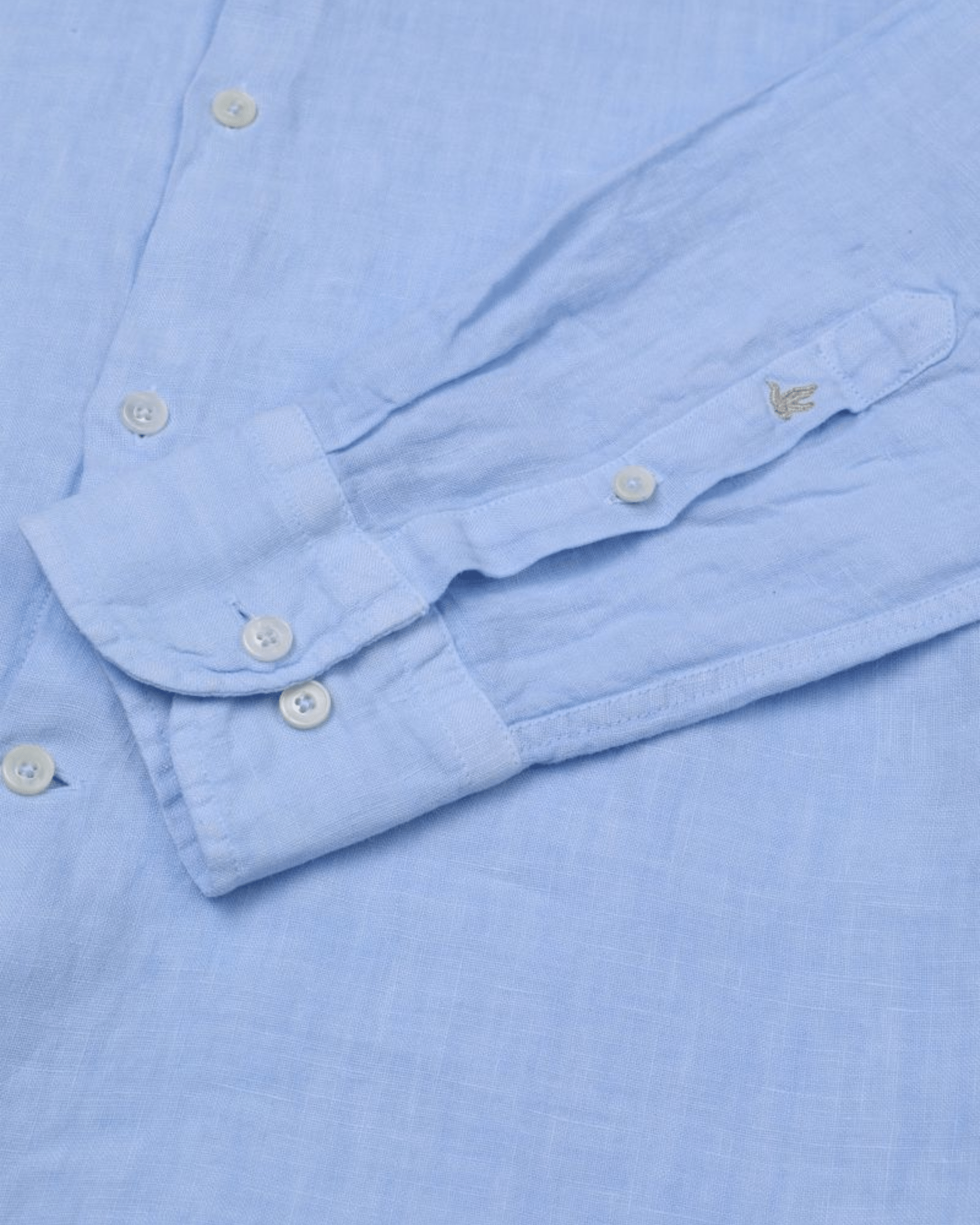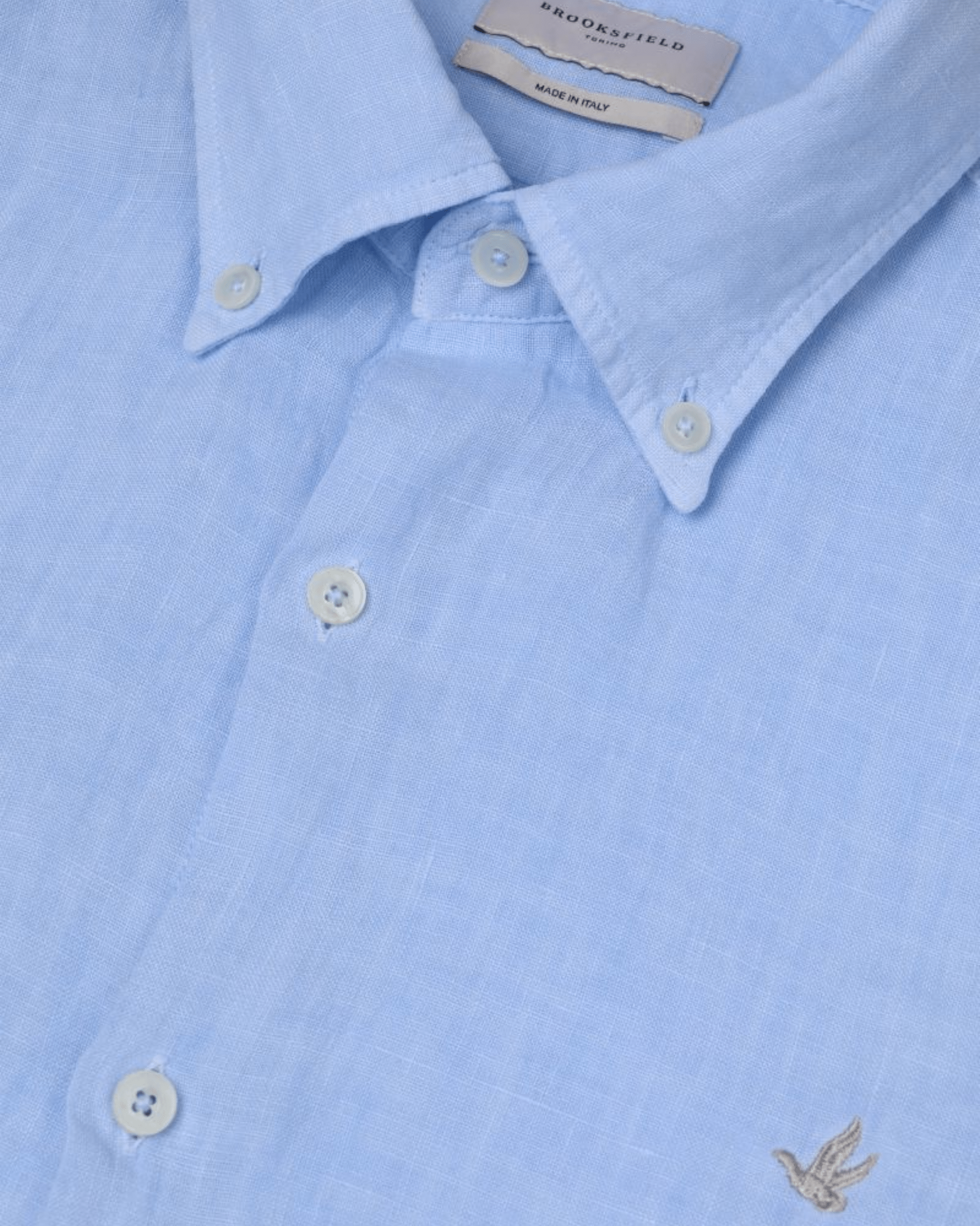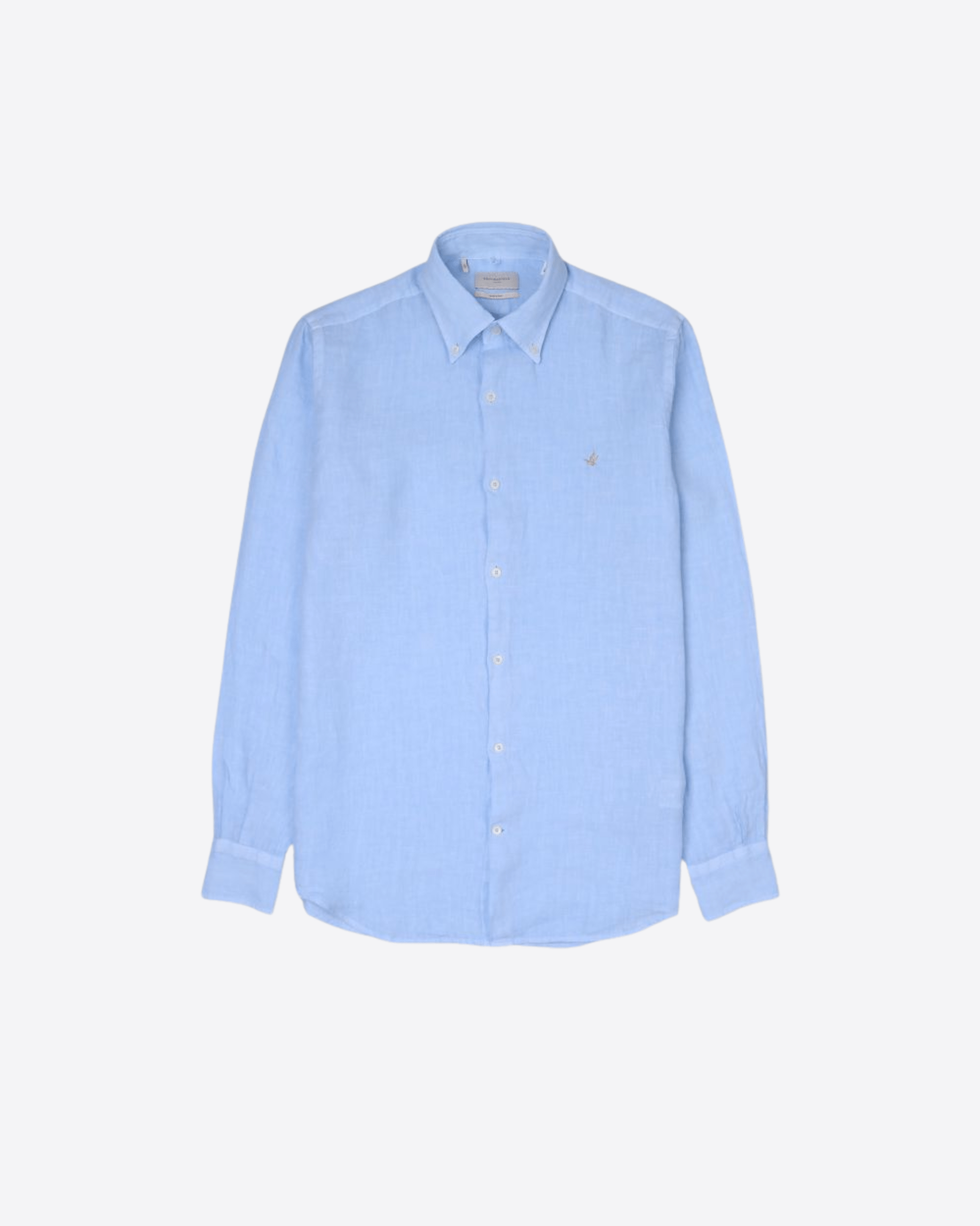 Questa camicia è realizzata in puro lino tinto in capo, una tecnica che dona al tessuto un aspetto unico e leggermente vissuto. È arricchita dal logo ricamato al cuore, discreto ma distintivo. Prodotta in Italia, presenta un classico colletto button-down.