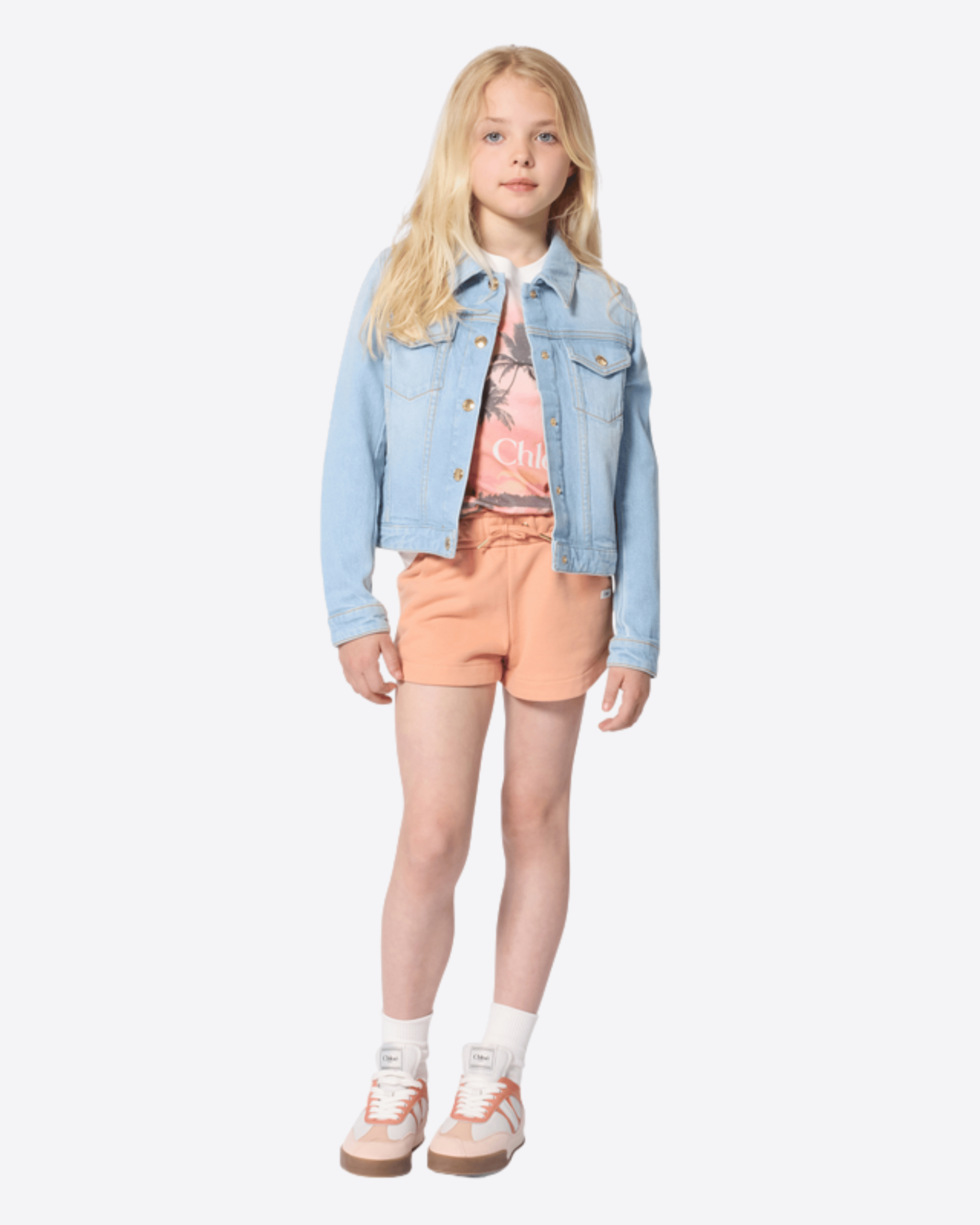 Stimola la tua immaginazione con questi morbidi pantaloncini in pile, realizzati in cotone biologico per garantire comfort e benessere alla pelle del tuo bambino. La vita elasticizzata assicura una vestibilità pratica e confortevole, mentre il laccio con eleganti terminali in metallo dorato aggiunge un tocco raffinato e distintivo. Completati dall’etichetta intrecciata con logo Chloé, questi pantaloncini si ispirano alla collezione donna del brand, reinterpretando lo stile iconico in chiave mini-me. Perfetti per creare look casual ma ricercati, uniscono qualità, stile e comodità in un capo pensato per accompagnare ogni momento della giornata.