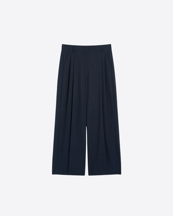 Pantalone ampio con doppia pinces e taglio cropped sopra la caviglia.