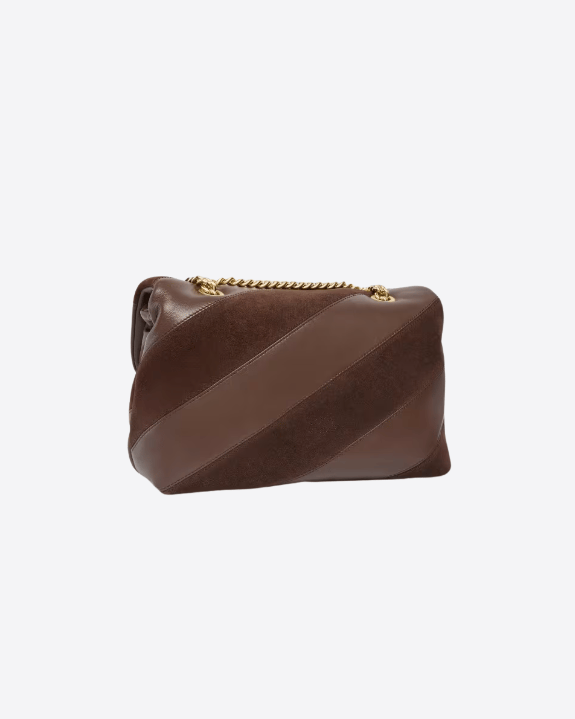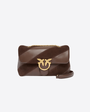 Caratterizzata dall’iconico logo Love Birds in metallo, questa borsa Pinko combina raffinatezza e funzionalità. Il design trapuntato a spalla, dalla forma rettangolare, è impreziosito da una patta con chiusura a bottone e da una tracolla con poggiaspalle in pelle per il massimo comfort. Gli interni, organizzati con tramezza e chiusura a zip, offrono praticità e ordine. Realizzata in nappa e pelle scamosciata, presenta una fantasia monogram con righe bicolor che dona un tocco contemporaneo. Perfetta per il giorno, unisce stile, eleganza e versatilità in un unico accessorio distintivo.