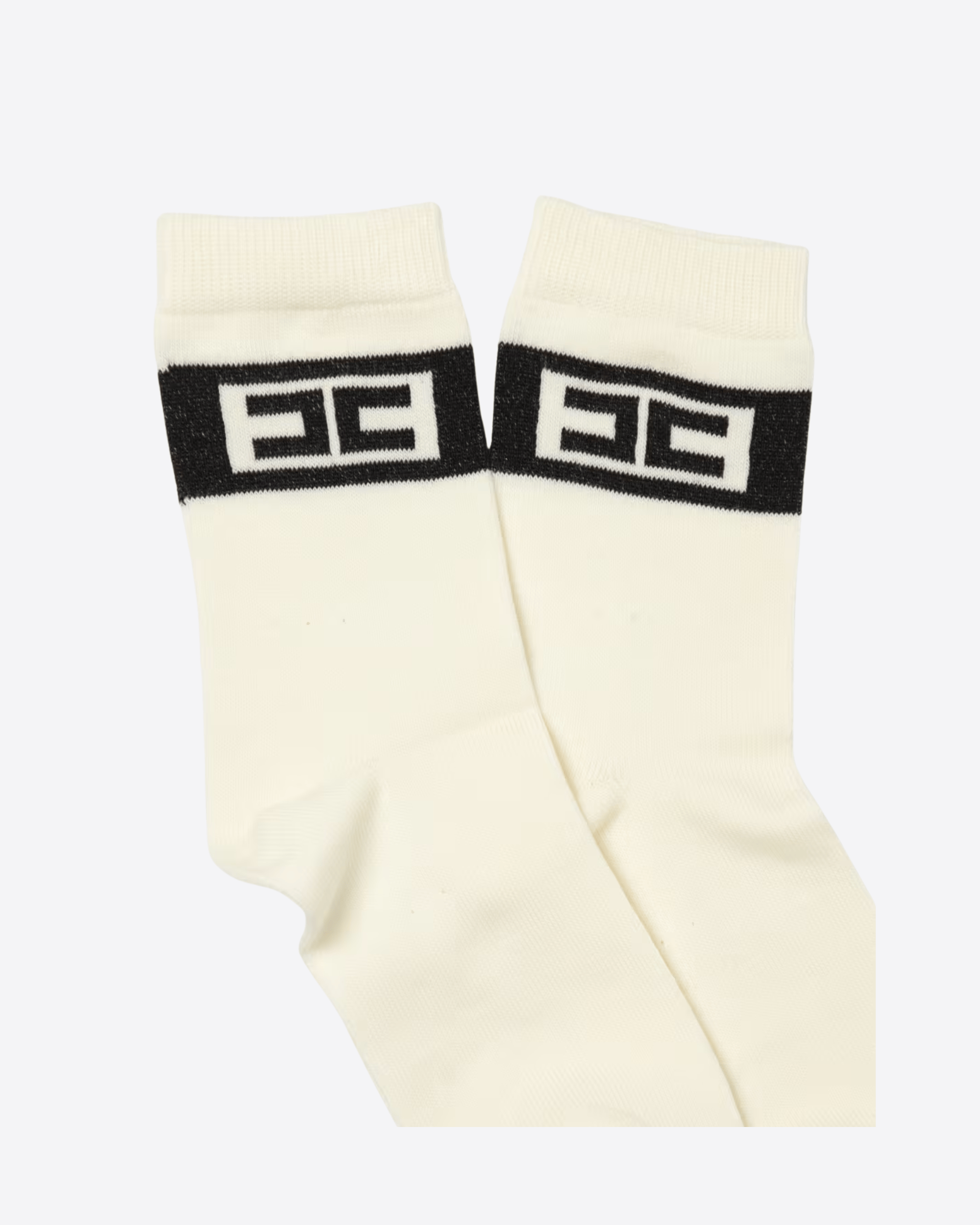 Calze da neonata in cotone elasticizzato, dal design elegante e confortevole. Realizzate in tessuto morbido e traspirante, presentano una raffinata lavorazione jacquard con logo, per un tocco distintivo e delicato.