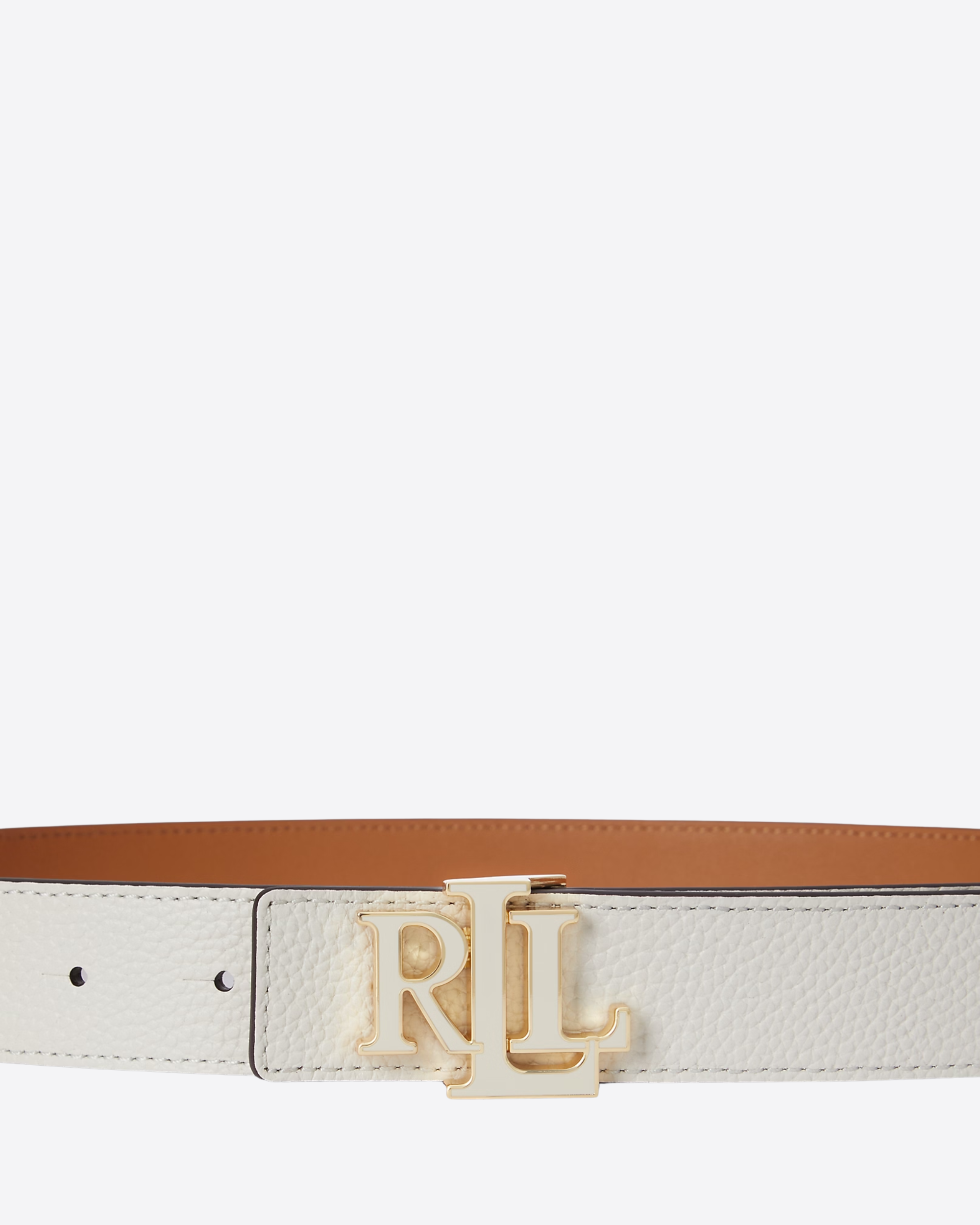 Impreziosita da una fibbia in ottone e smalto con il monogramma “LRL”, questa cintura si distingue per il design double-face che consente di cambiare facilmente look. Un lato è realizzato in pelle martellata, che dona una texture raffinata, mentre l’altro è in morbida pelle pieno fiore dalla finitura naturalmente liscia. La lunghezza è di 81,5 cm per la taglia S, 89 cm per la taglia M e 96,5 cm per la taglia L.