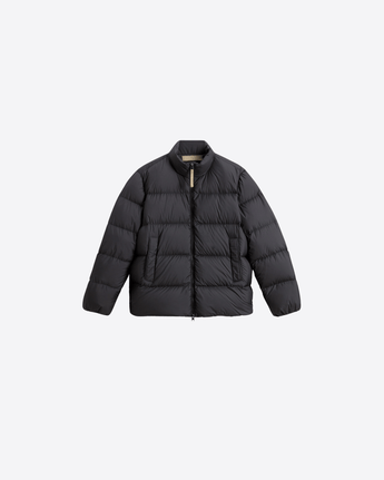 Perfetto alleato contro i primi freddi, questo piumino della Cloud Series – la nostra capsule di capispalla caldi ma leggeri come una nuvola – è un must-have del guardaroba di stagione. Realizzato in microfibra idrorepellente e resistente al vento, è imbottito in piuma d’anatra per offrire un calore avvolgente senza appesantire. Il design include un collo alto per una protezione extra e una zip bidirezionale con tirazip logata, mentre le tasche a filetto con bottoni a pressione nascosti e le due tasche interne, una laterale e una con zip, garantiscono praticità e spazio per gli oggetti personali. La coulisse interna sul fondo consente di regolare la vestibilità in base alle esigenze. Completano il capo il logo stampato sul retro e l’etichetta laterale.