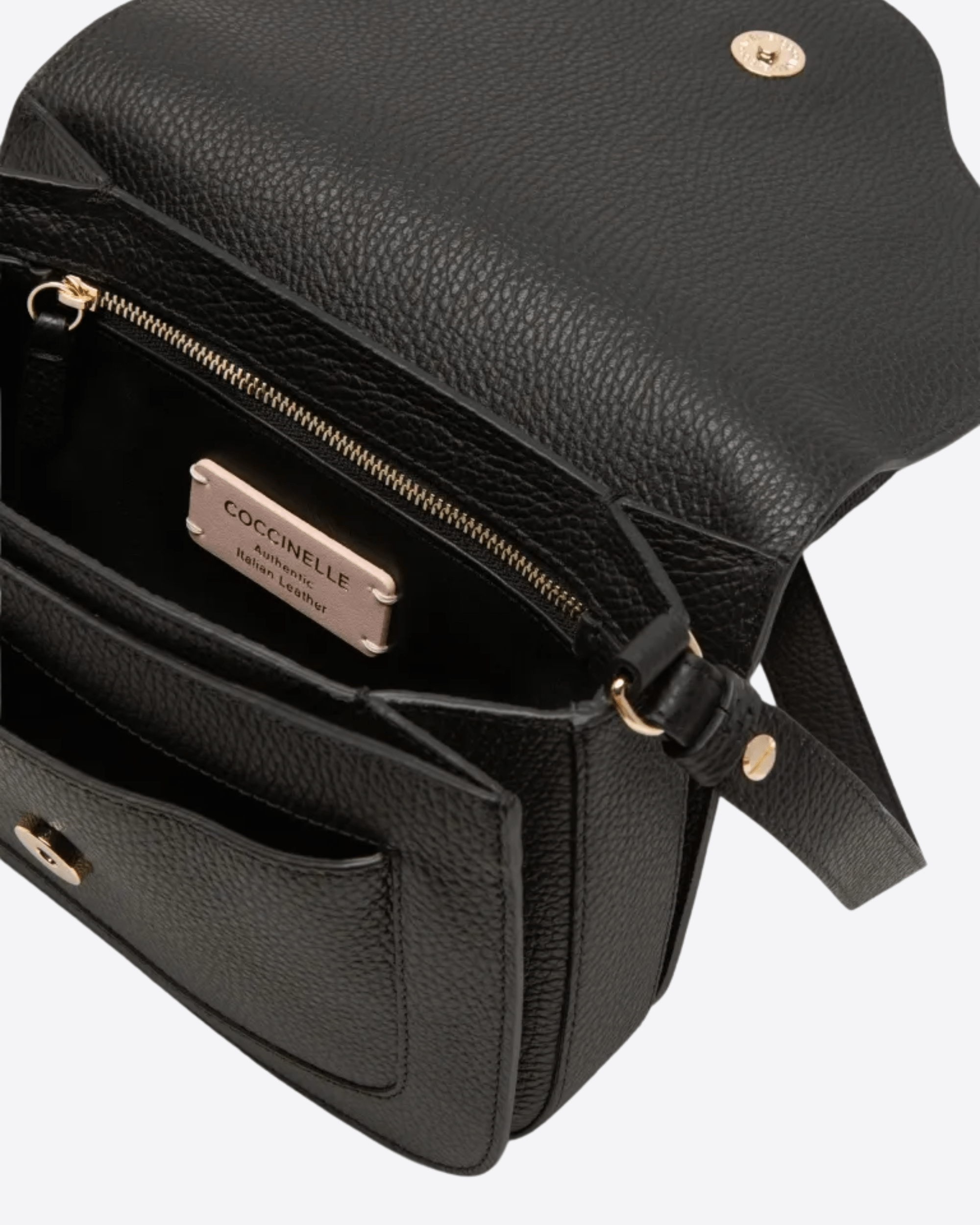 Una nuova signature entra a far parte del brand, Coccinelle C-Me. Il logo reinterpretato attraverso la C di Coccinelle che si annoda e abbraccia il plettro, elemento iconico del brand, un'unione che si intreccia con la vita di una donna tra passato e presente. Le linee geometriche e le curve sofisticate rafforzano il design, mentre la costruzione a soffietti aggiunge un tocco di funzionalità e delicata eleganza a questa borsa che vuole essere la compagna essenziale della donna Coccinelle durante la sua giornata.