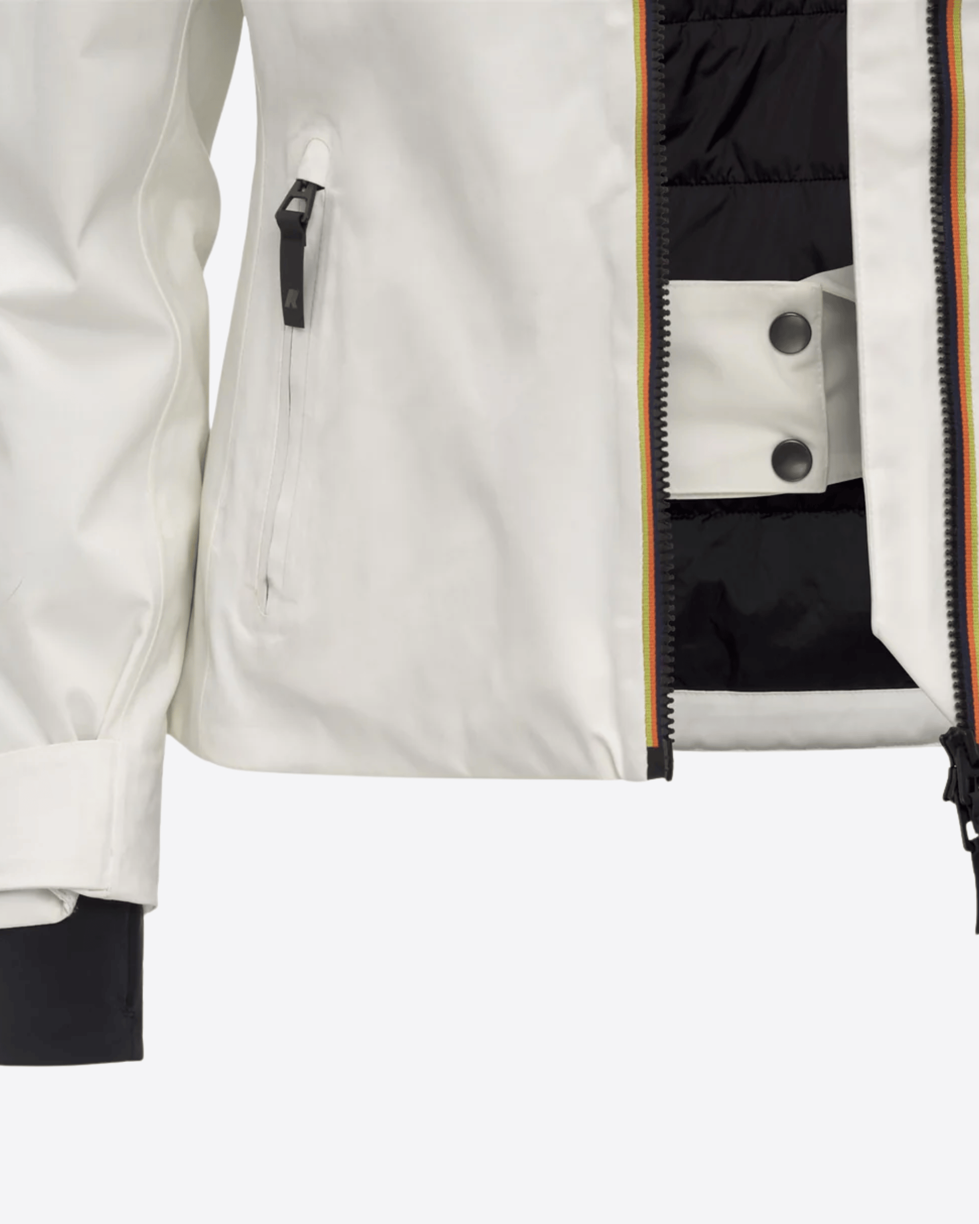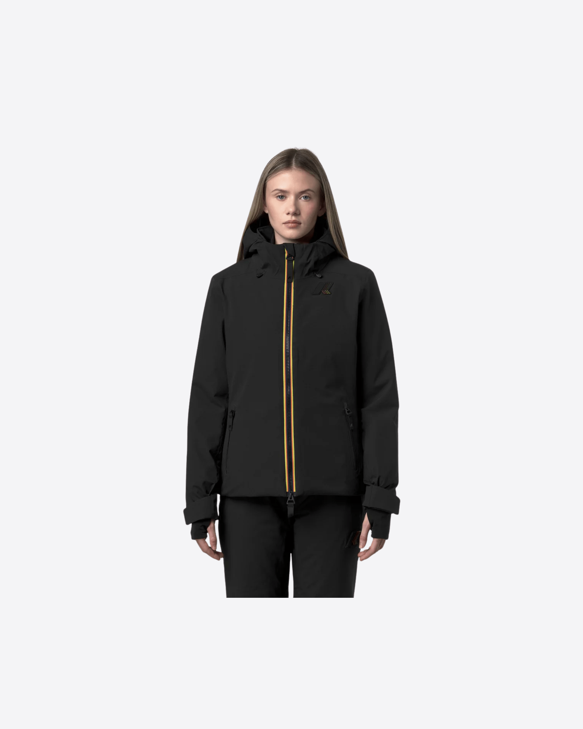 Dispone di cappuccio regolabile, zip di aerazione sotto le maniche, polsini regolabili con ghetta interna e ghetta interna al punto vita. Completano il modello le tasche esterne a filetto, la tasca skipass sulla manica e le tasche interne, sia in rete che con zip. Vestibilità regolare con logo in silicone nero.
