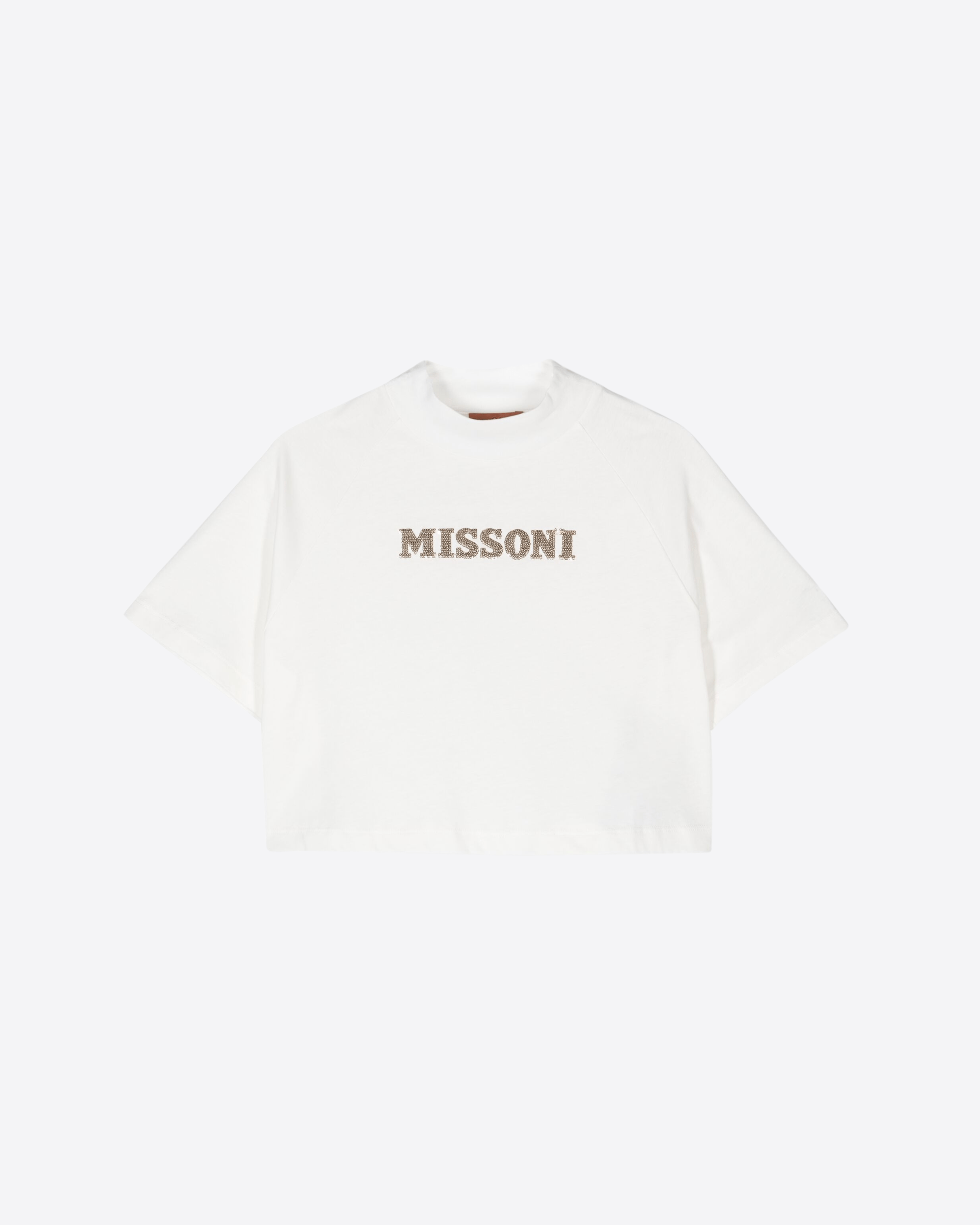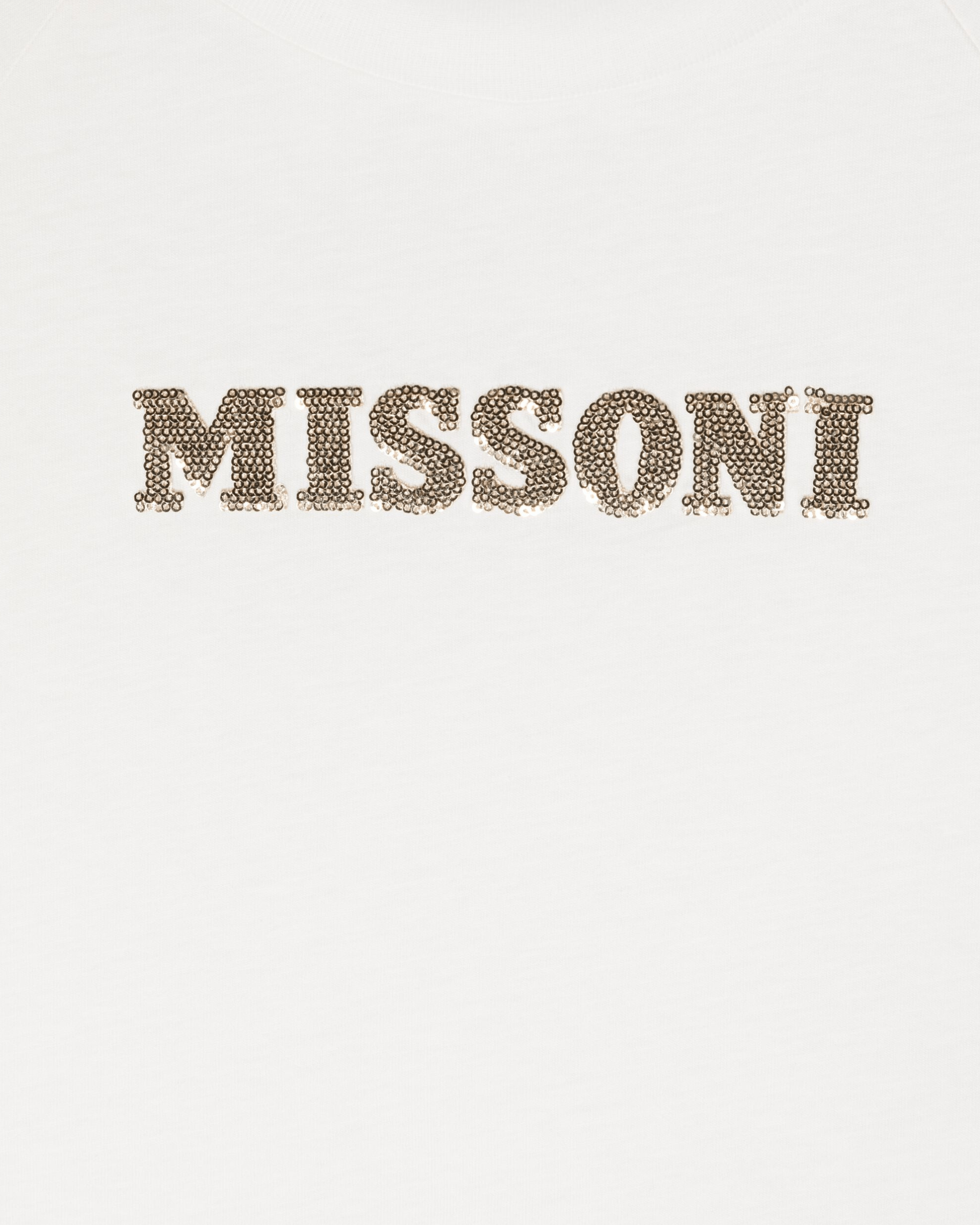 Sequin logo T-shirt made from cotton and lightweight jersey. The shirt features a crew neck, long raglan sleeves and a straight hem.