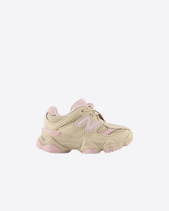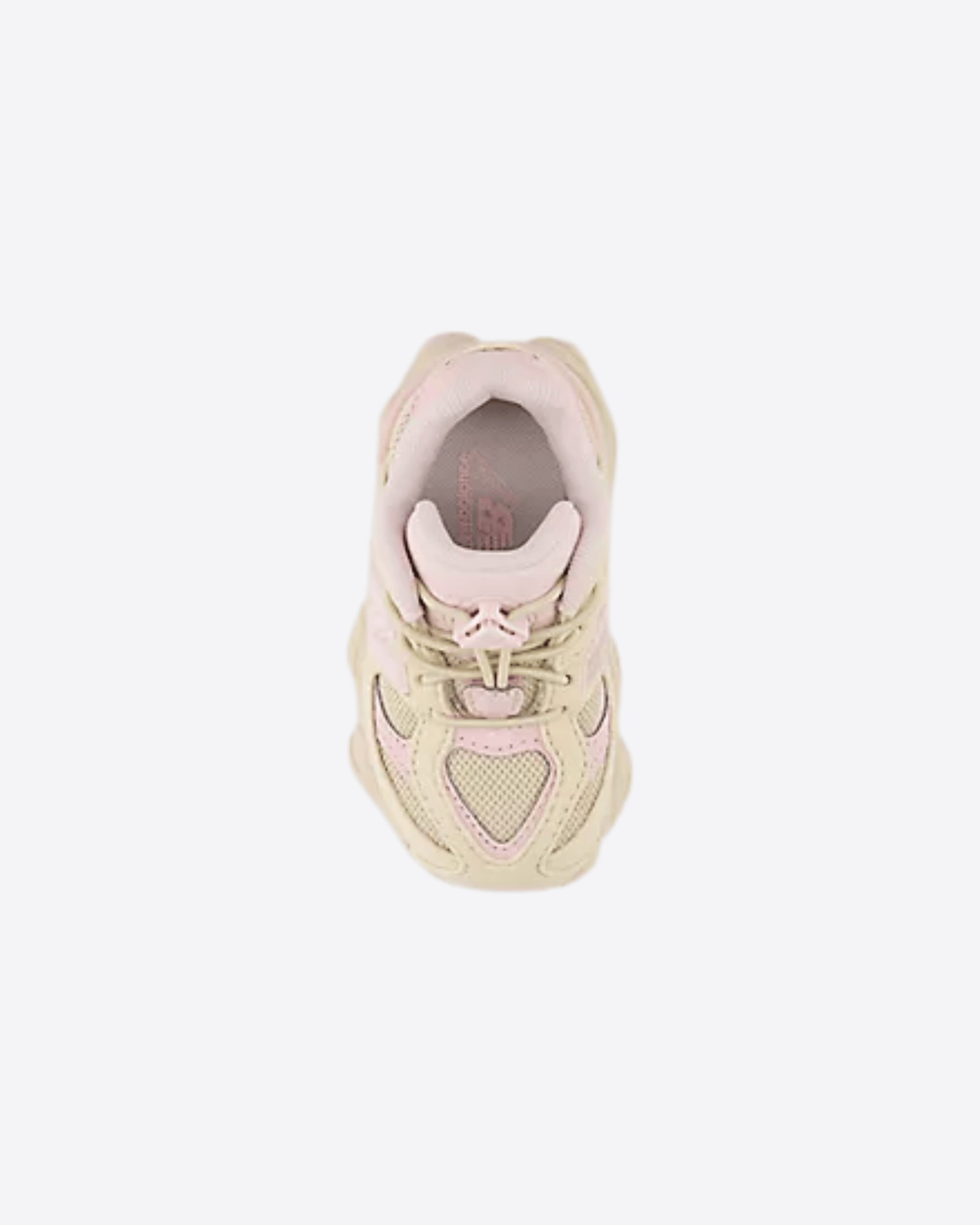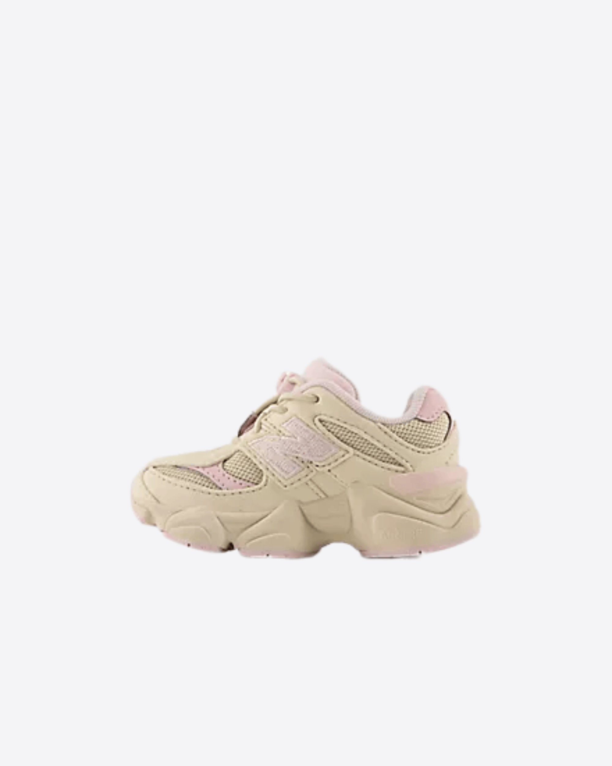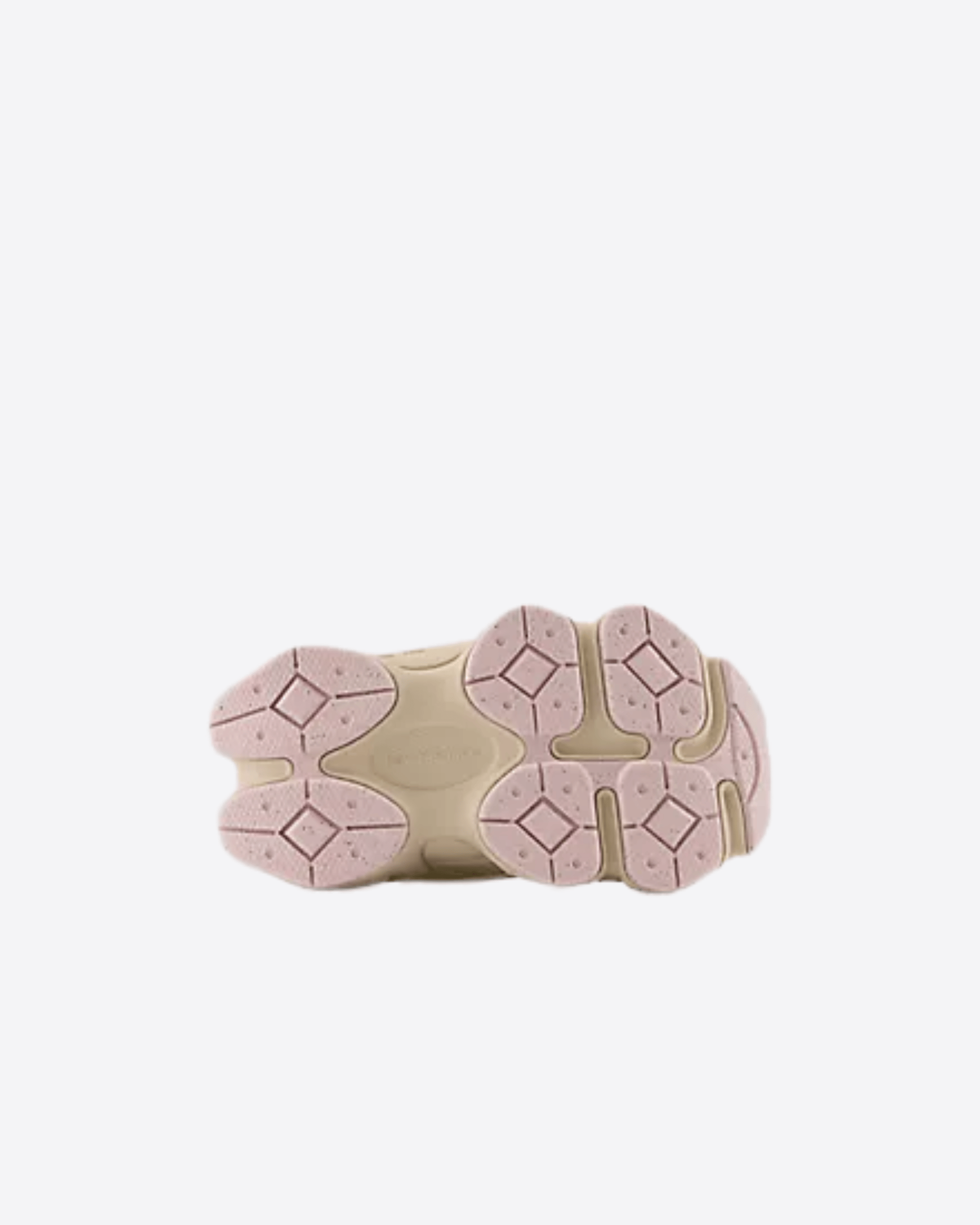 Versione per bambini delle iconiche 9060, che reinterpretano lo stile sofisticato e il design innovativo della serie 99X con un tocco futuristico ispirato all’era Y2K. Presentano intersuola a doppia densità con ammortizzazione ABZORB e SBS, dispositivo CR traslucido sul tallone e suola con motivo a rombi ispirato al classico design delle 860.