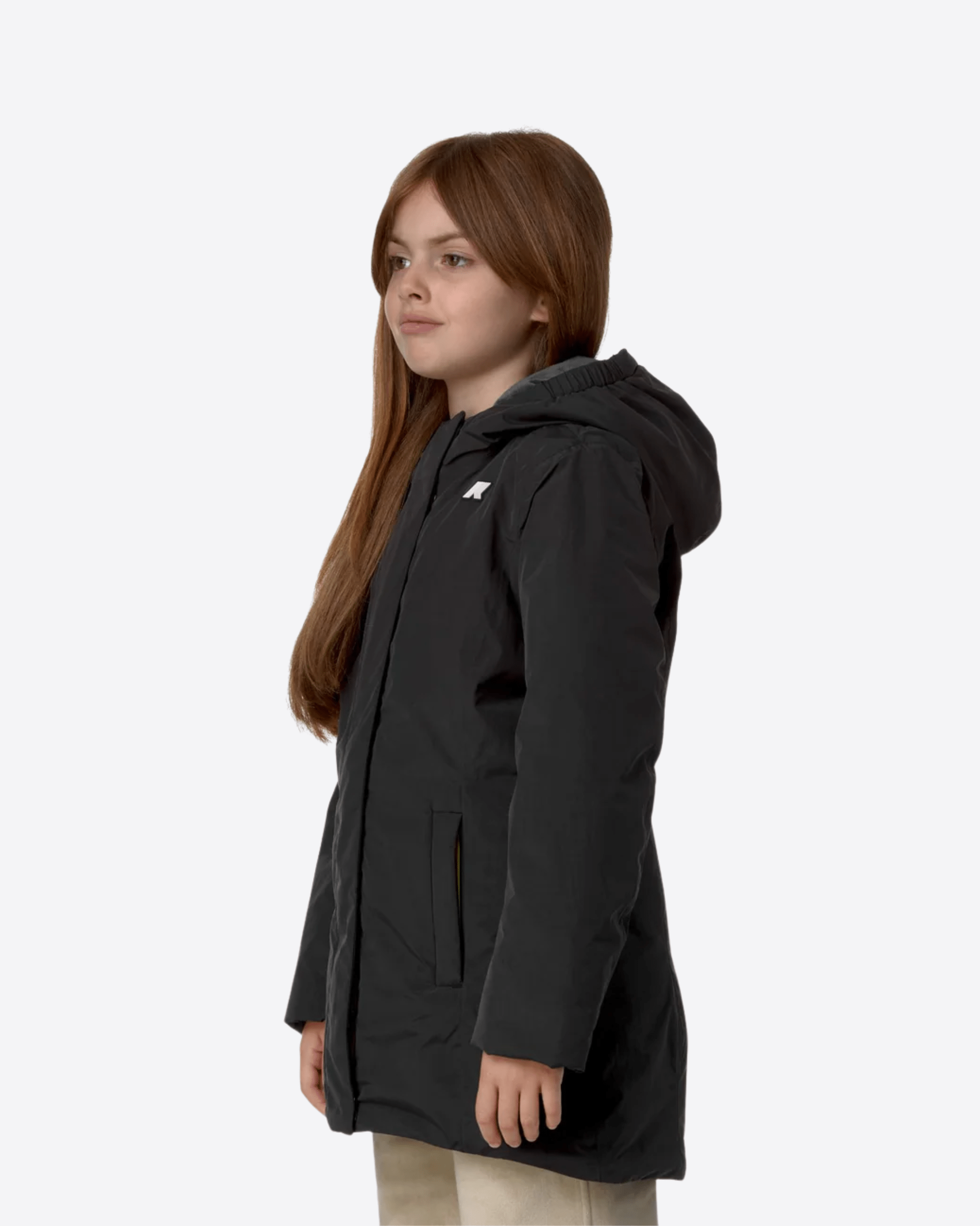 Denise è una giacca di lunghezza media da bambina. Ideale per le mezze stagioni e i primi freddi, è realizzata in tessuto impermeabile e antivento e presenta un’imbottitura leggera ed ecologica in PrimaLoft®. L’interno svela una fodera calda e soffice, effetto peluche. Il capo è dotato di cappuccio, chiusura zip e tasche laterali.