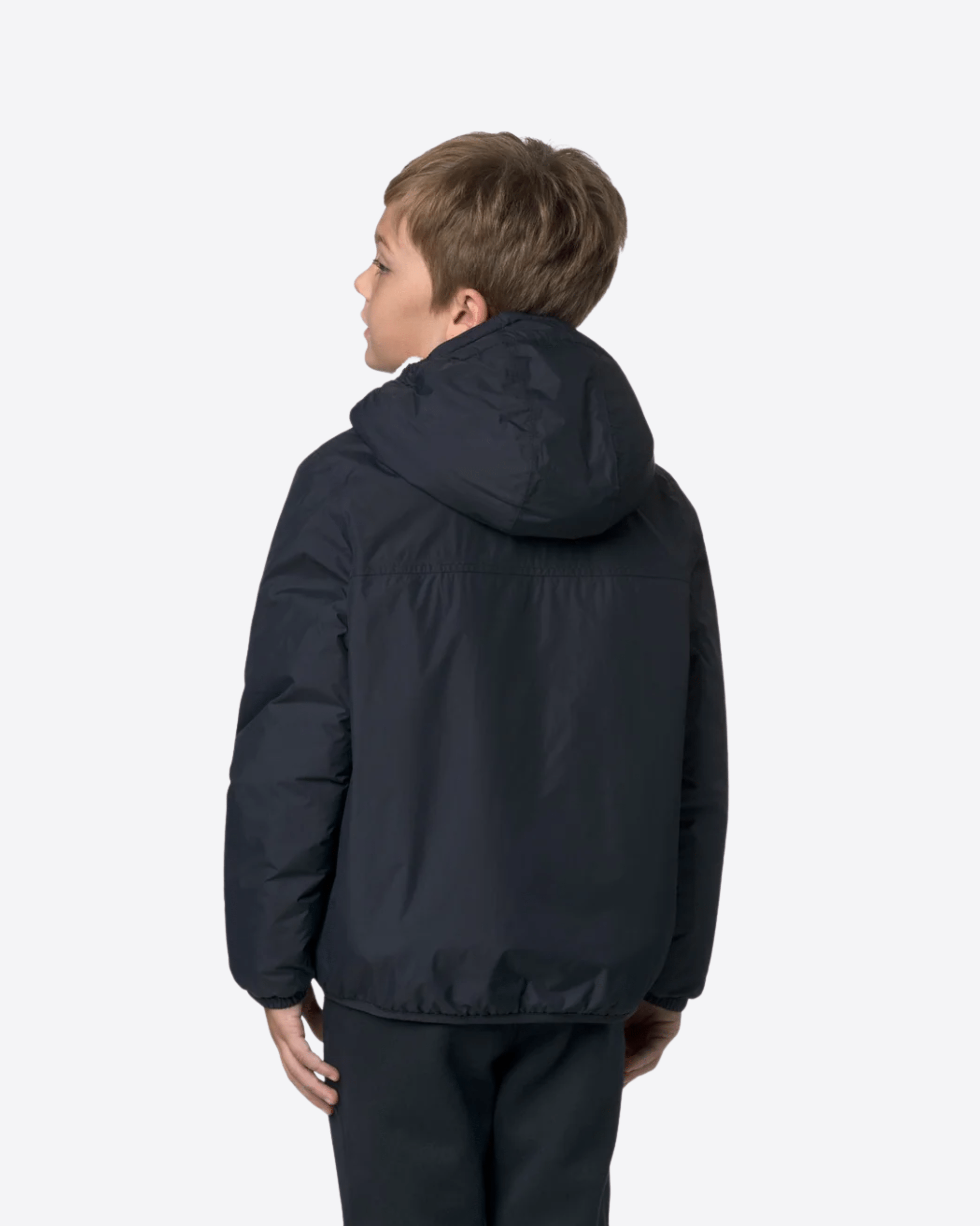 Claude è una giacca corta per bambini progettata per le mezze stagioni e i primi freddi. Realizzata in nylon micro ripstop 100% riciclato, resistente all’acqua e traspirante, presenta un'imbottitura in PrimaLoft®, una fibra riciclata, leggera e poco ingombrante. L’interno svela un rivestimento caldo e morbido, in tessuto effetto sherpa.