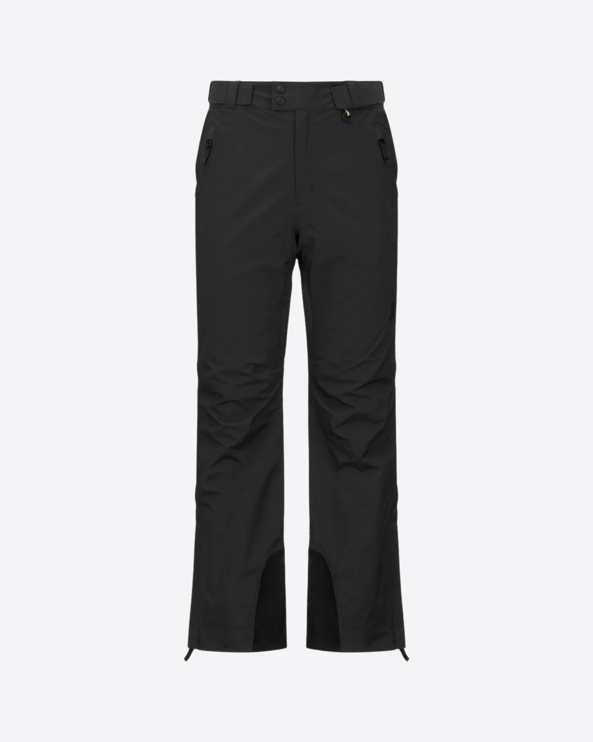In tessuto a due strati impermeabile e traspirante (20.000 mm/20.000 g/m2/24h), con imbottitura PrimaLoft e fodera in poliestere per un elevato grado di calore. È dotato di cuciture termonastrate, chiusura con zip e bottoni, vita regolabile, anello porta guanti e tasche con zip. Include zip di aerazione interna, ginocchia ergonomiche e fondo gamba con apertura a zip, patta con strap, rinforzo e ghetta interna. Vestibilità regolare e logo in silicone nero.