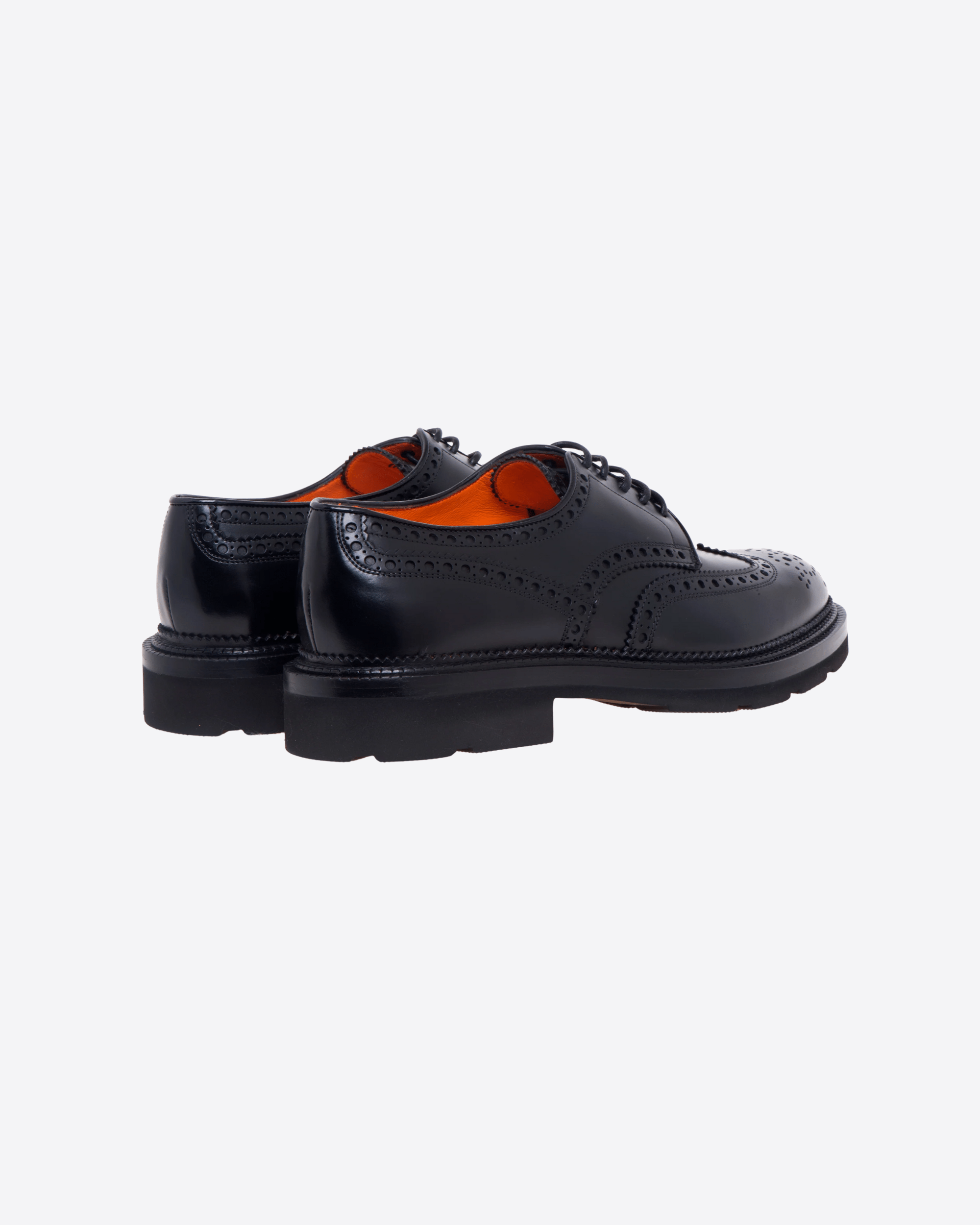 Questa versione di Santoni, realizzata in pelle anticata da look moderno ed accattivante, presenta una suola in cuoio con battistrada in gomma.
