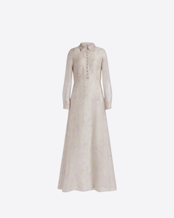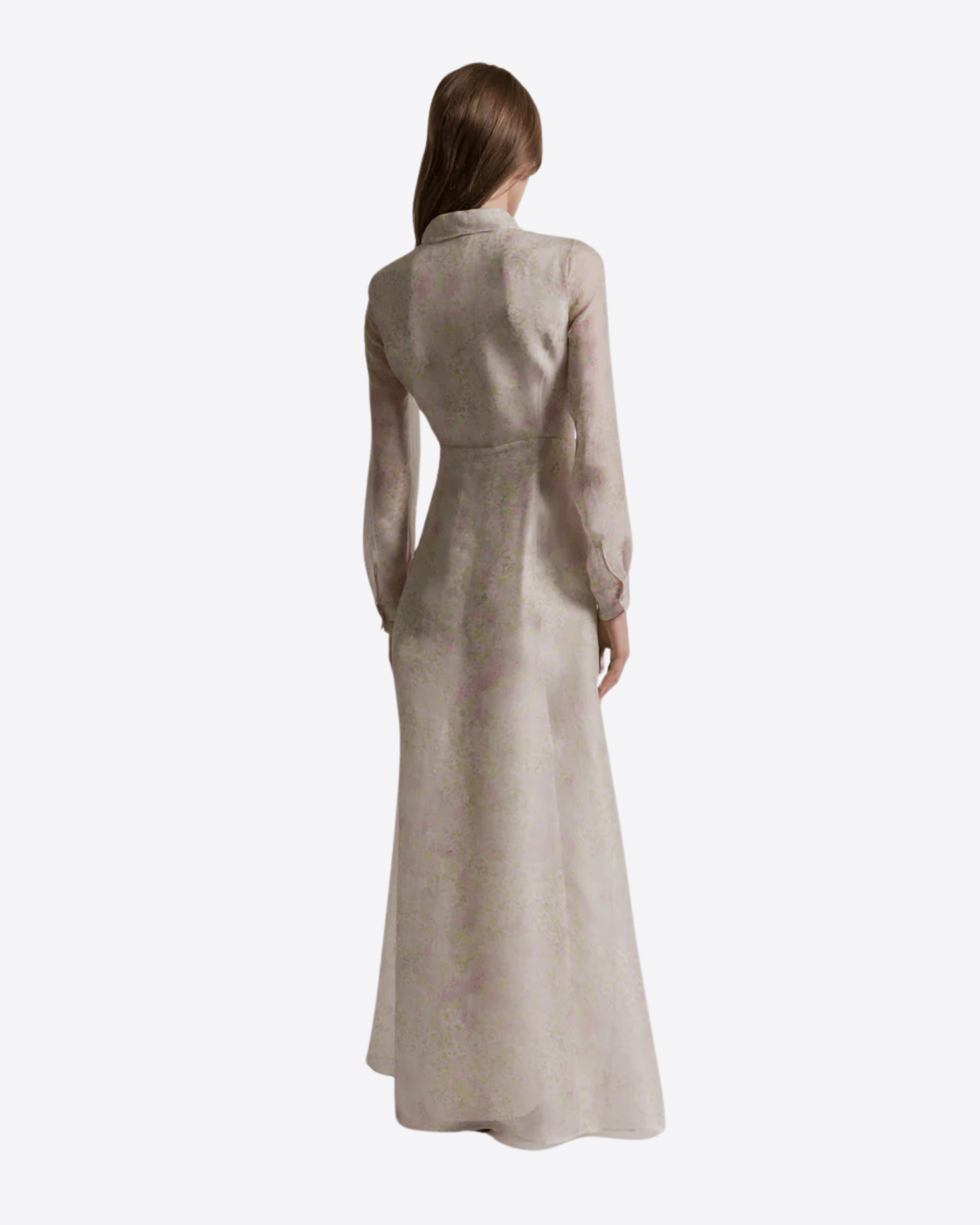 L’abito camicia in organza di seta firmato Alberta Ferretti unisce eleganza romantica e raffinatezza contemporanea. Caratterizzato da una delicata stampa floreale, esprime una femminilità sofisticata e senza tempo.