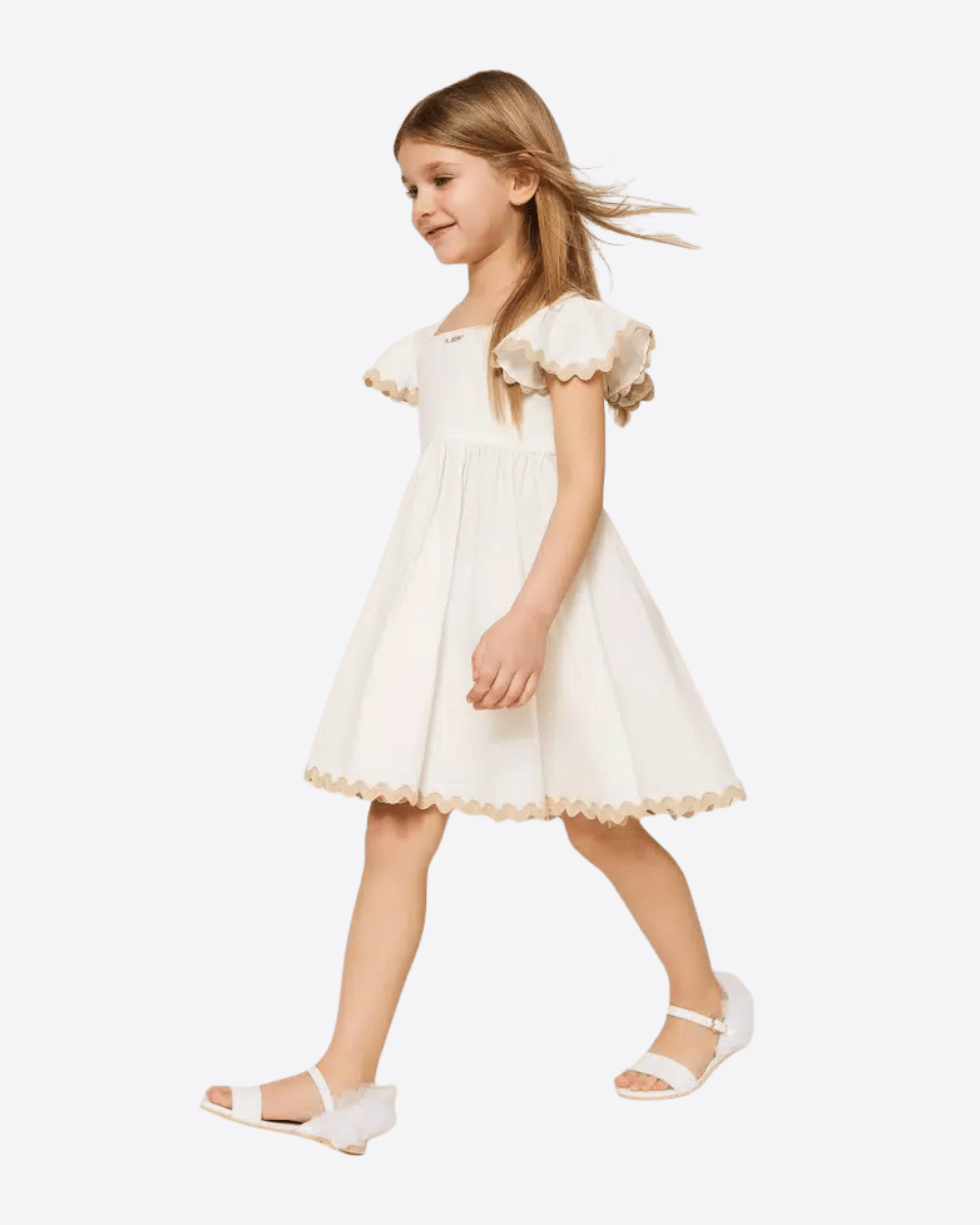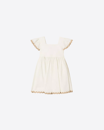 Abito corto da bambina in popeline di cotone stretch, leggero e piacevole da indossare, perfetto per le giornate più calde. Il capo è rifinito da un delicato ricamo a contrasto che aggiunge un tocco di personalità ed eleganza.
