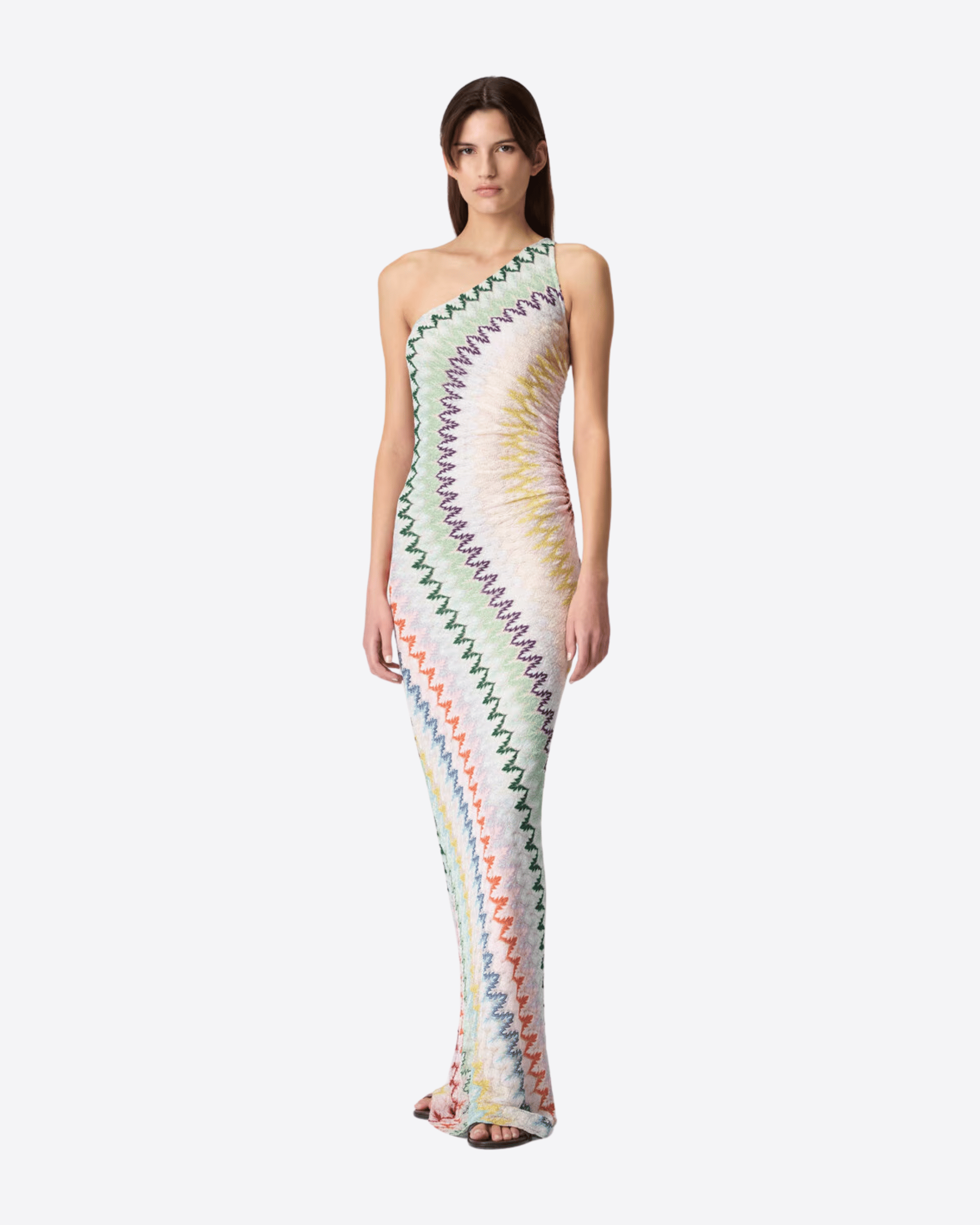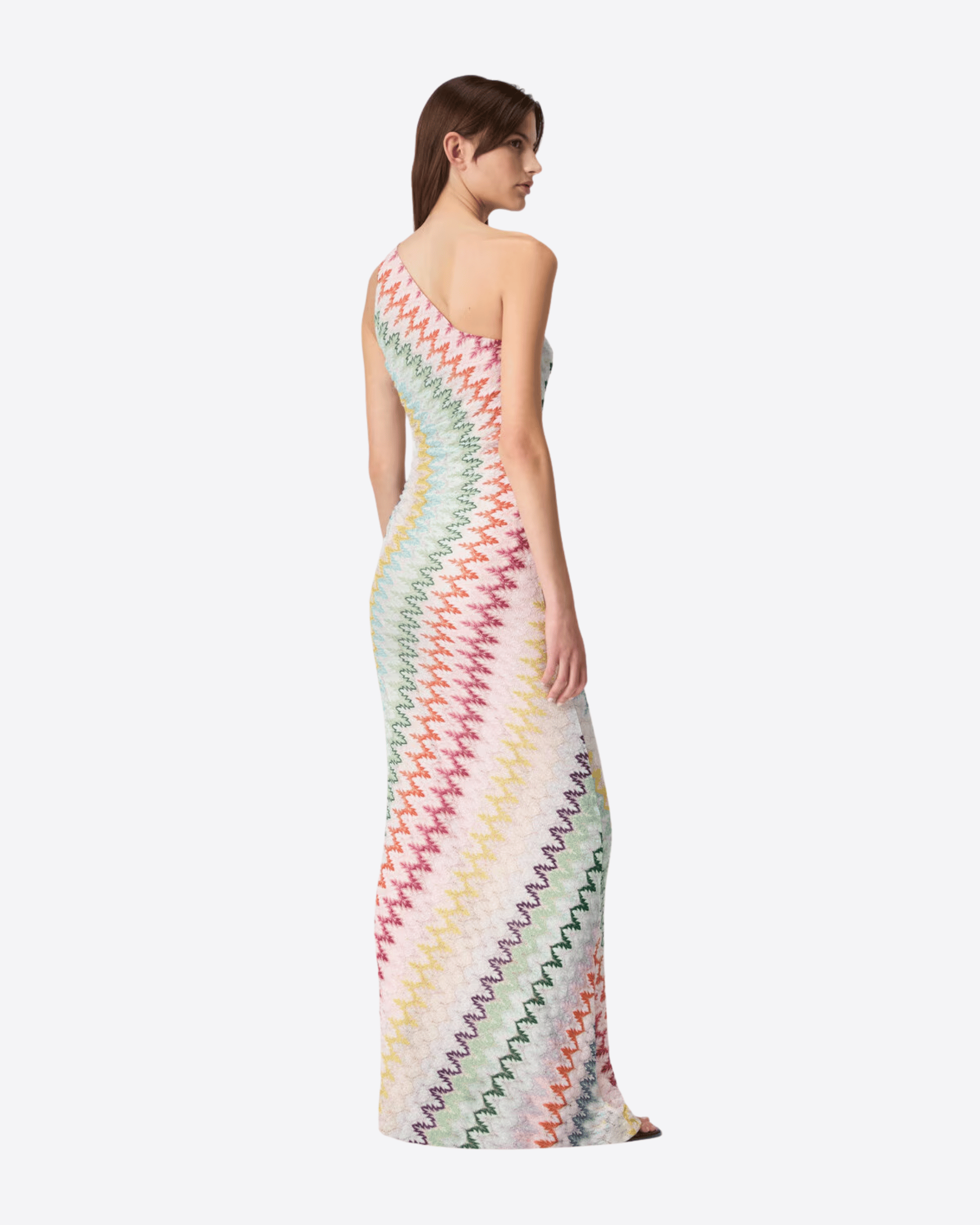 ABITO LUNGO MONOSPALLA IN VISCOSA CHEVRON LAMÉ