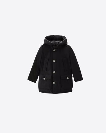Un'interpretazione in miniatura di un'icona Woolrich, l'Arctic Parka da bambino è perfetto per i piccoli esploratori durante i mesi più freddi. Realizzato con il caratteristico tessuto Ramar Cloth e rinforzato con uno speciale rivestimento in Teflon per una maggiore protezione dagli elementi, è imbottito in piuma d'anatra per un calore eccezionale. Un ampio cappuccio con chiusura a velcro sul colletto, diverse pratiche tasche e polsini interni a coste garantiscono un riparo ottimale in caso di vento o pioggia.