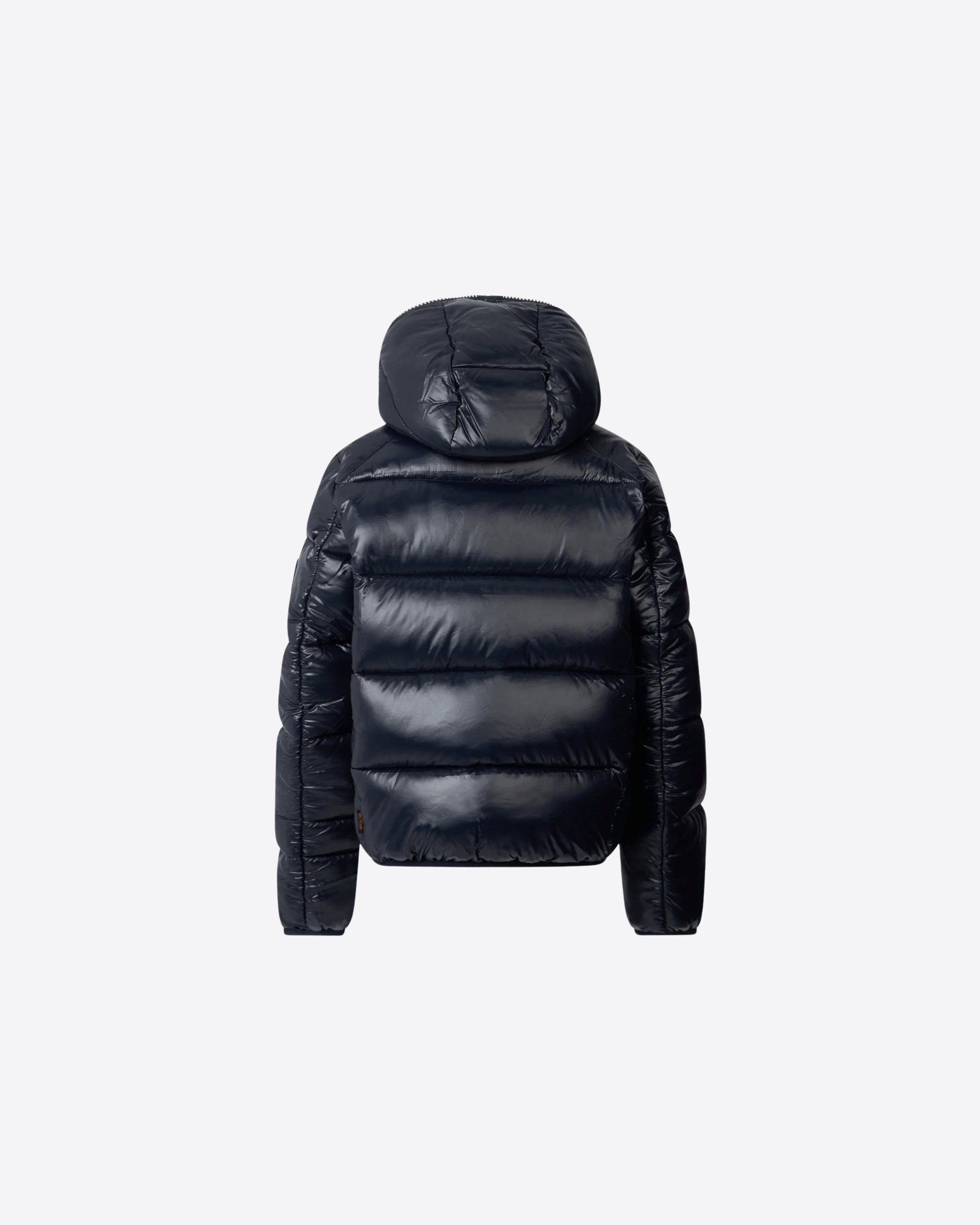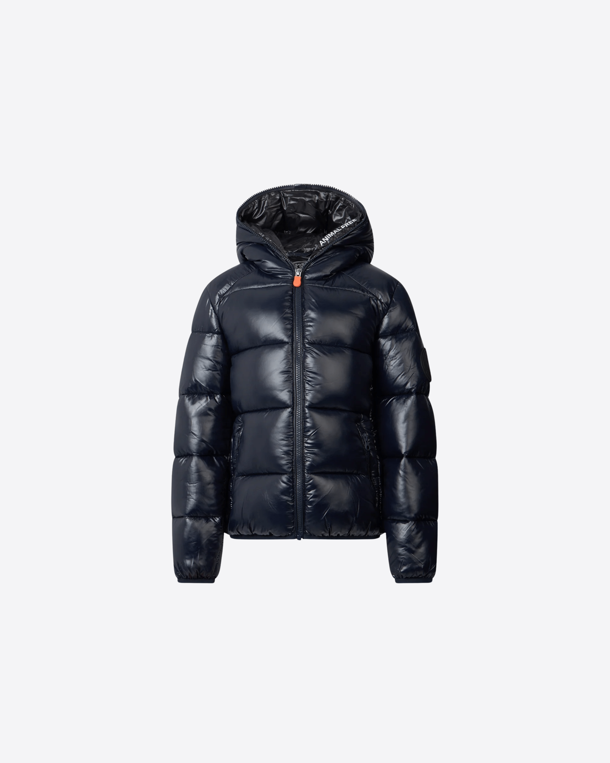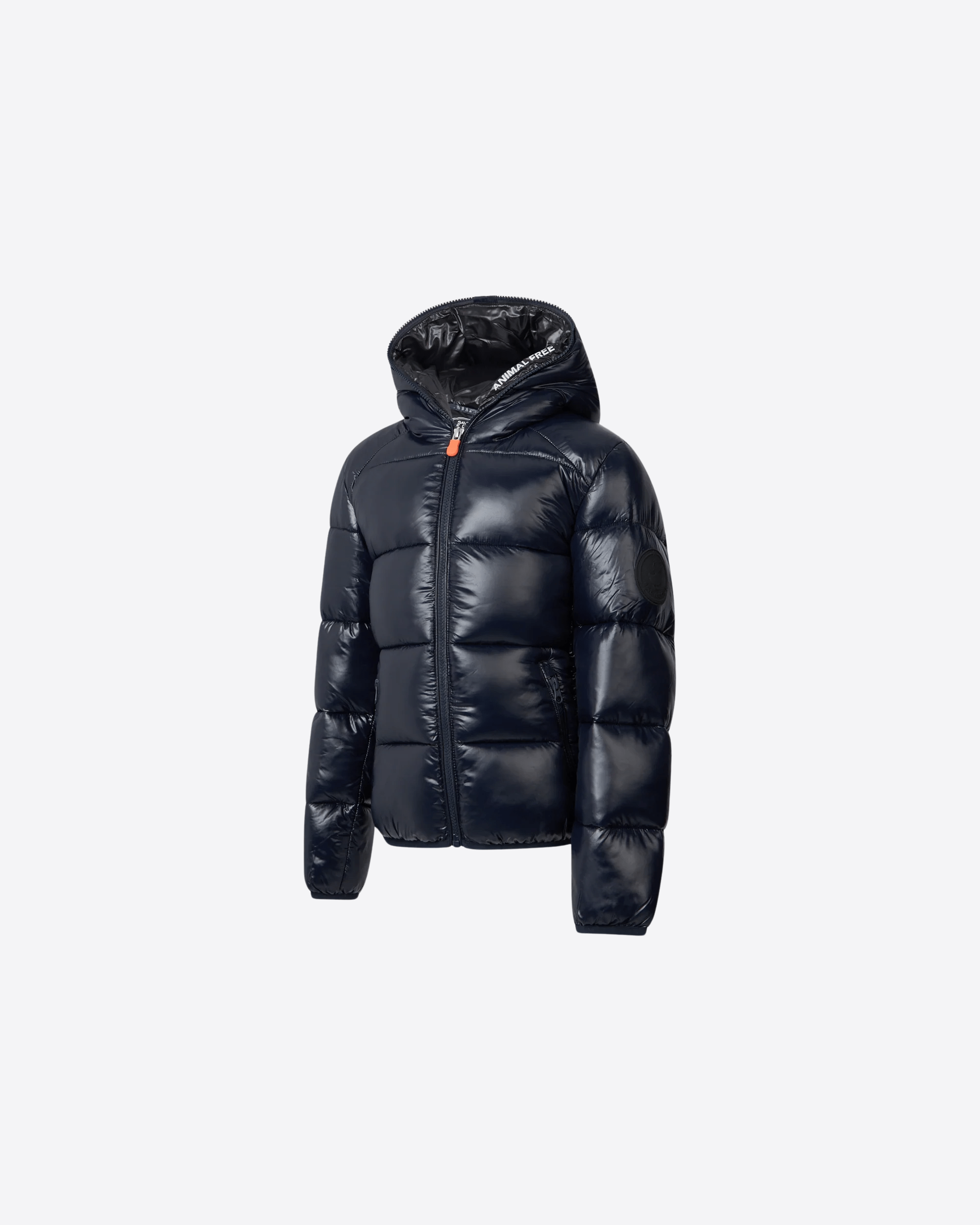 Il giubbotto bambino modello Artie vola dritto tra i preferiti dei piccoli di casa per la calda imbottitura animal-free e la finitura laqué. Dotato di cappuccio, tasche zippate ed elastici su fondo e polsi, si distingue per la stampa nell'interno del cappuccio, il tirazip arancione e il logo rotondo sulla manica.