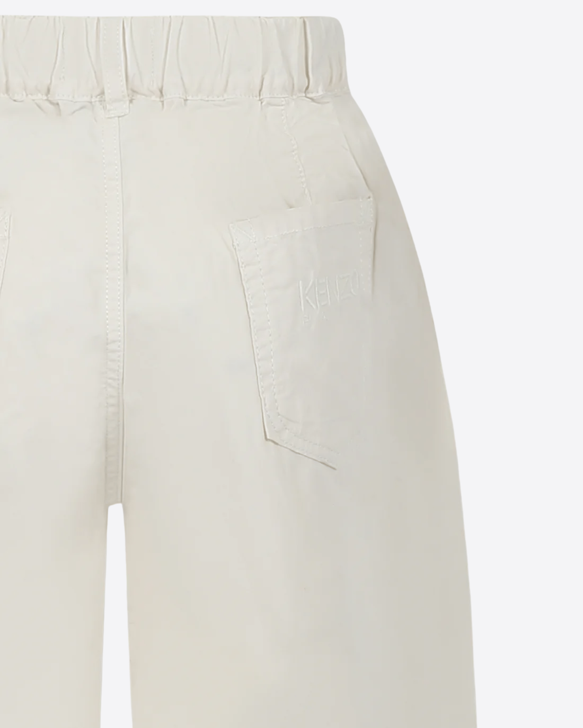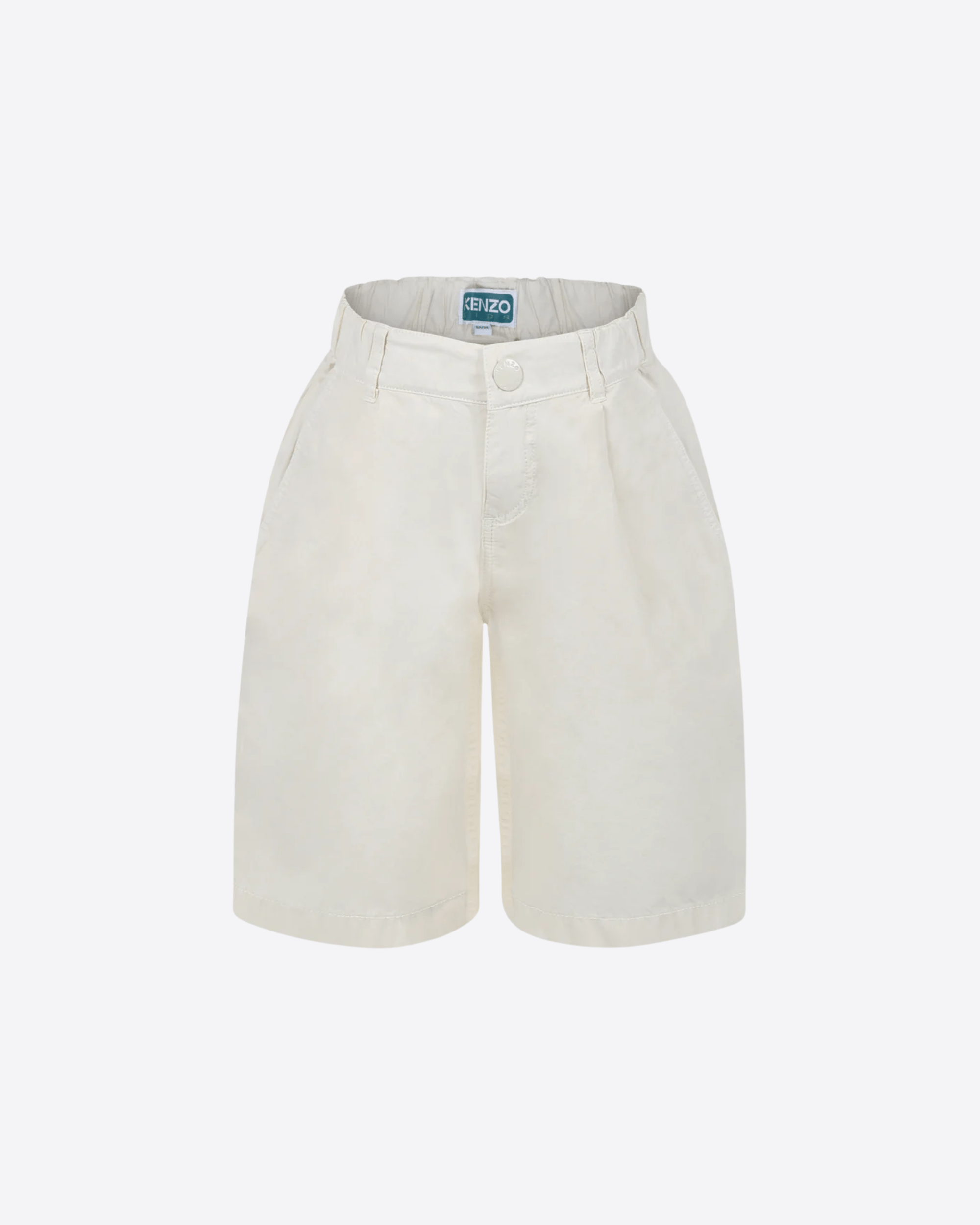 Shorts beige del brand francese Kenzo Kids, in cotone, con passanti per cintura, chiusura frontale con zip e bottone automatico, vita elasticizzata, tasche laterali e tasche sul retro. Sono decorati con logo ricamato sul retro.