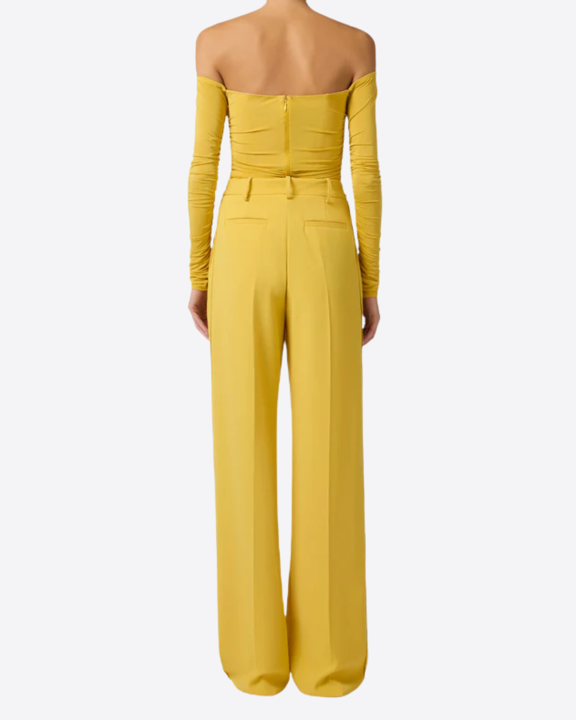 Body realizzato in jersey crêpe leggero con maniche lunghe e profondo scollo a cuore, impreziosito da un piccolo dettaglio con logo posizionato al centro del décolleté. Il capo è finemente drappeggiato su tutta la lunghezza, per valorizzare la silhouette con una vestibilità aderente ed elegante.