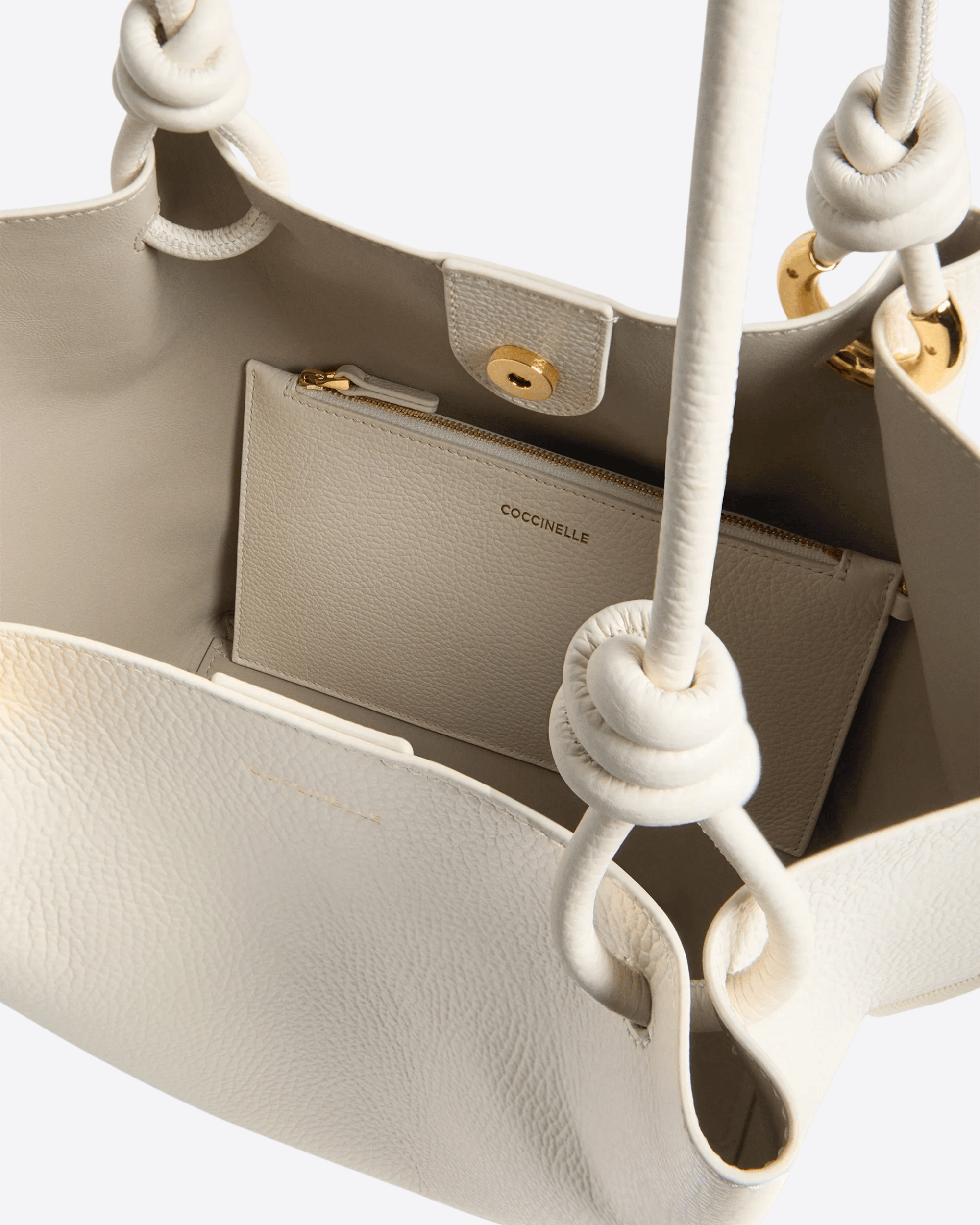 La linea Coccinelle Finn combina struttura e morbidezza, dando vita a un design elegante e contemporaneo.