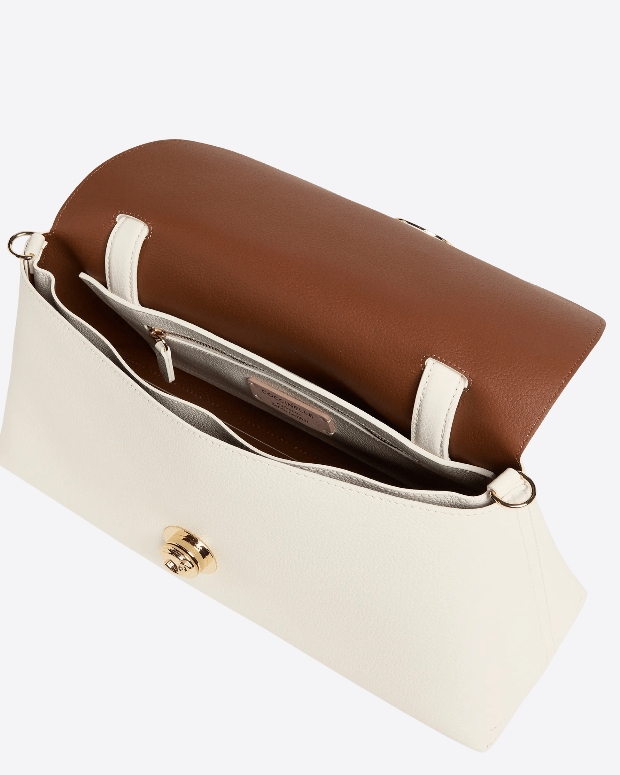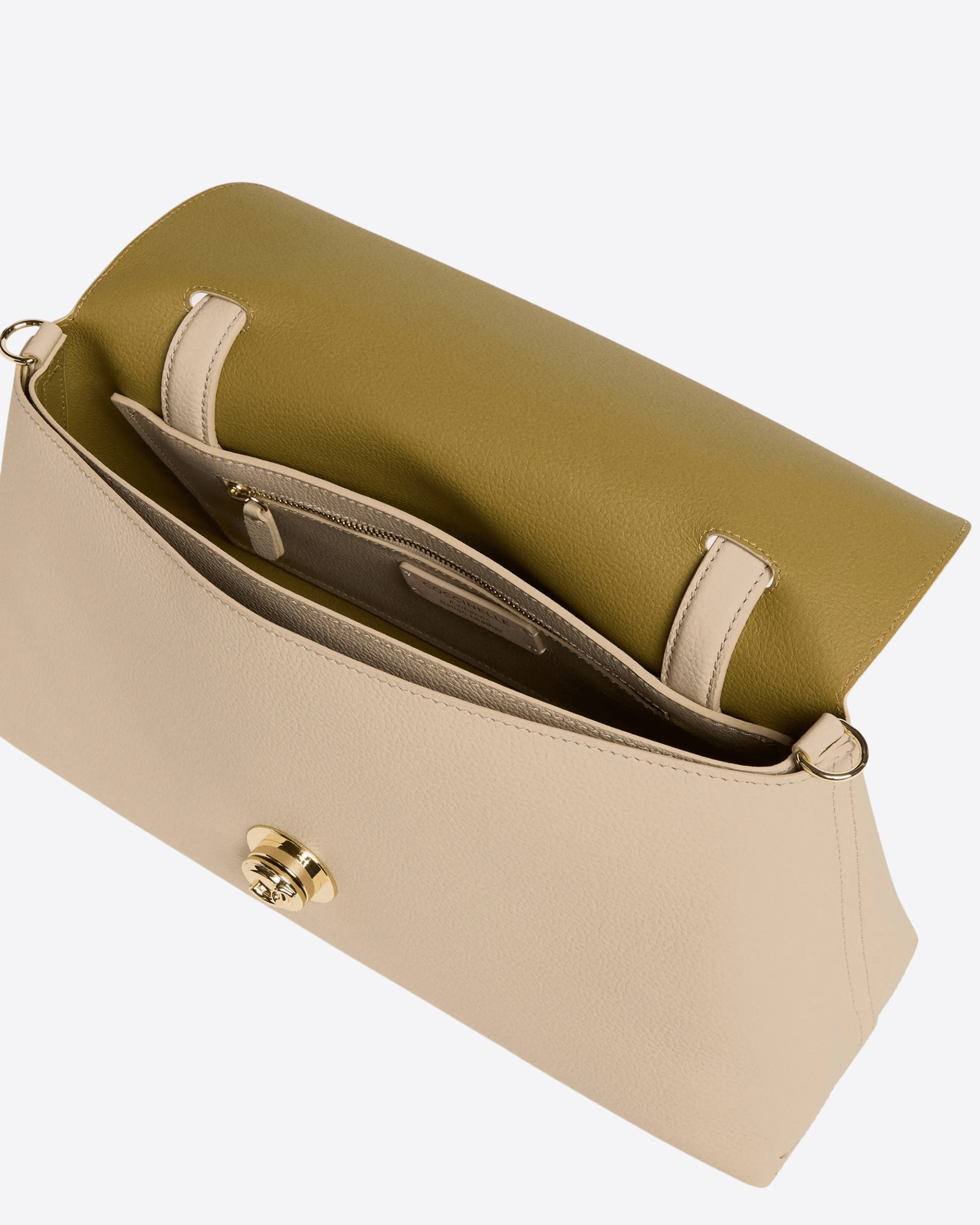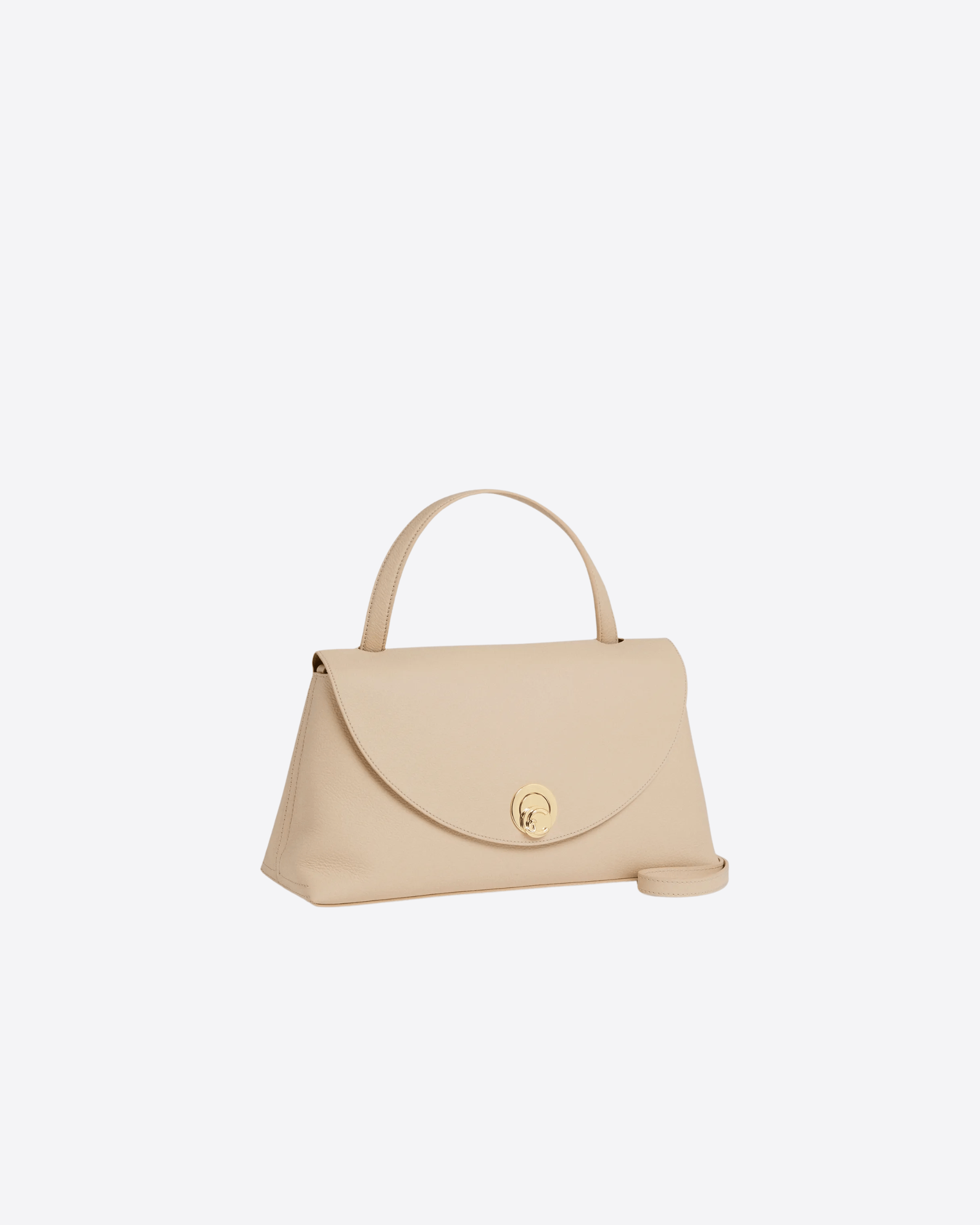 Raffinata e moderna, la borsa unisce dettagli dall’eleganza senza tempo a una silhouette dai volumi contemporanei, esaltati dalla morbidezza della pelle. La costruzione in pelle double conferisce struttura e resistenza, mantenendo al contempo una piacevole sensazione al tatto.