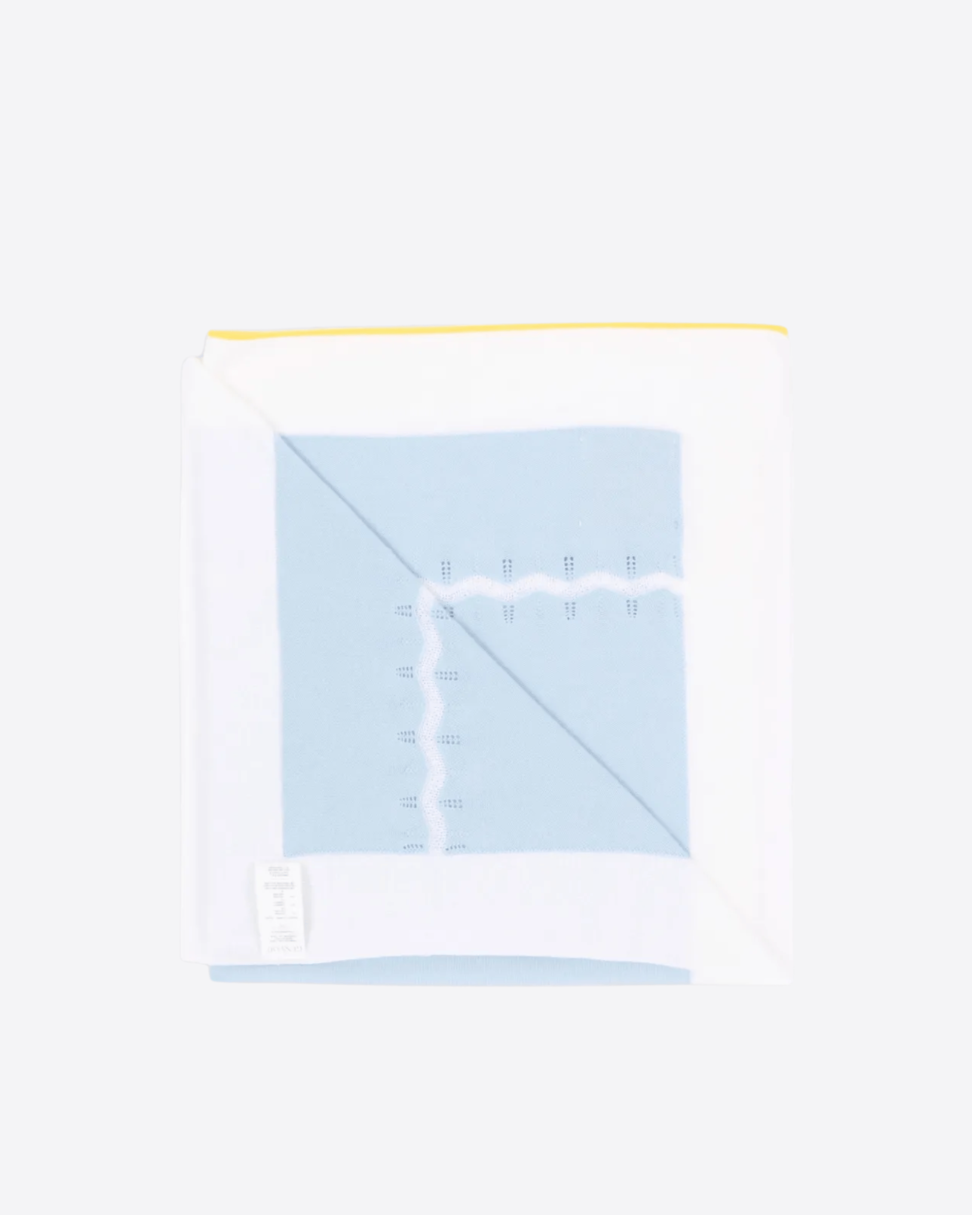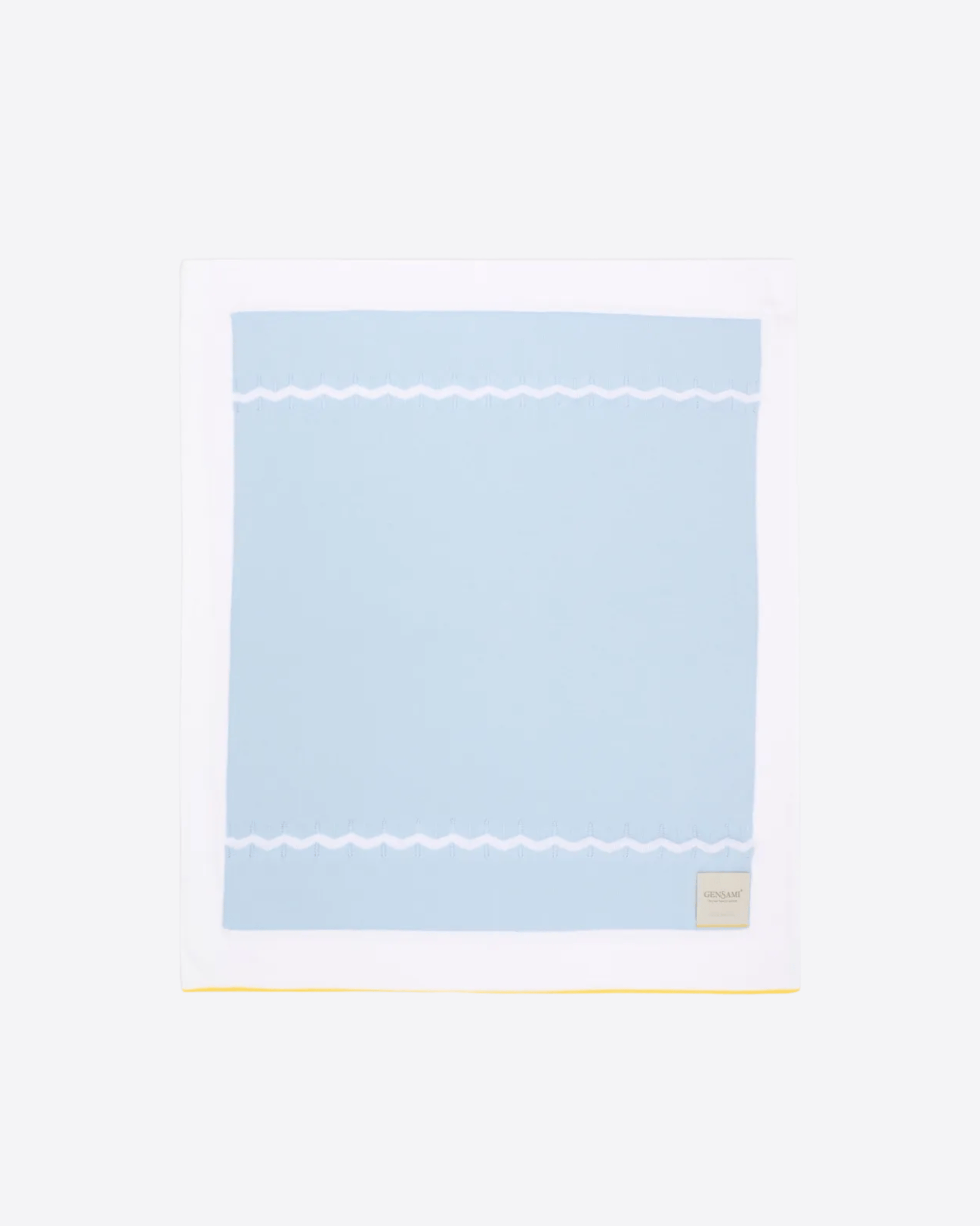 Delicata e avvolgente, la coperta Gensami è realizzata in morbida maglia lavorata, ideale per garantire comfort e protezione nei momenti di riposo. Il design in tonalità celeste è impreziosito da una raffinata rifinitura a zigzag che aggiunge un tocco elegante e curato.