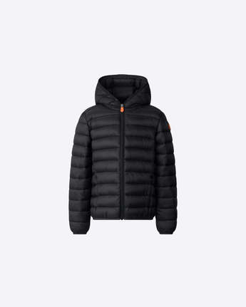 Lo stile Save The Duck non ha età: lo dimostra il piumino bambino modello Dony, versione in miniatura di uno dei cult della linea adulto. Il capo presenta una classica linea trapuntata con cappuccio, tasche laterali e finiture elastiche su polsi e fondo. Non mancano i dettagli chiave Save The Duck, come il logo rotondo sulla manica e il tiretto arancione della zip centrale.