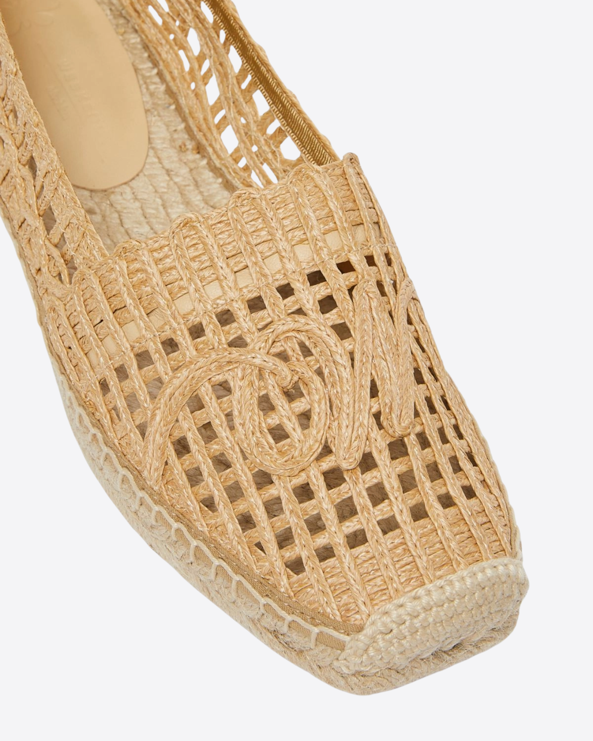 Espadrillas da donna caratterizzate da una tomaia intrecciata effetto see-through e dai classici dettagli in corda, per un look estivo e leggero.