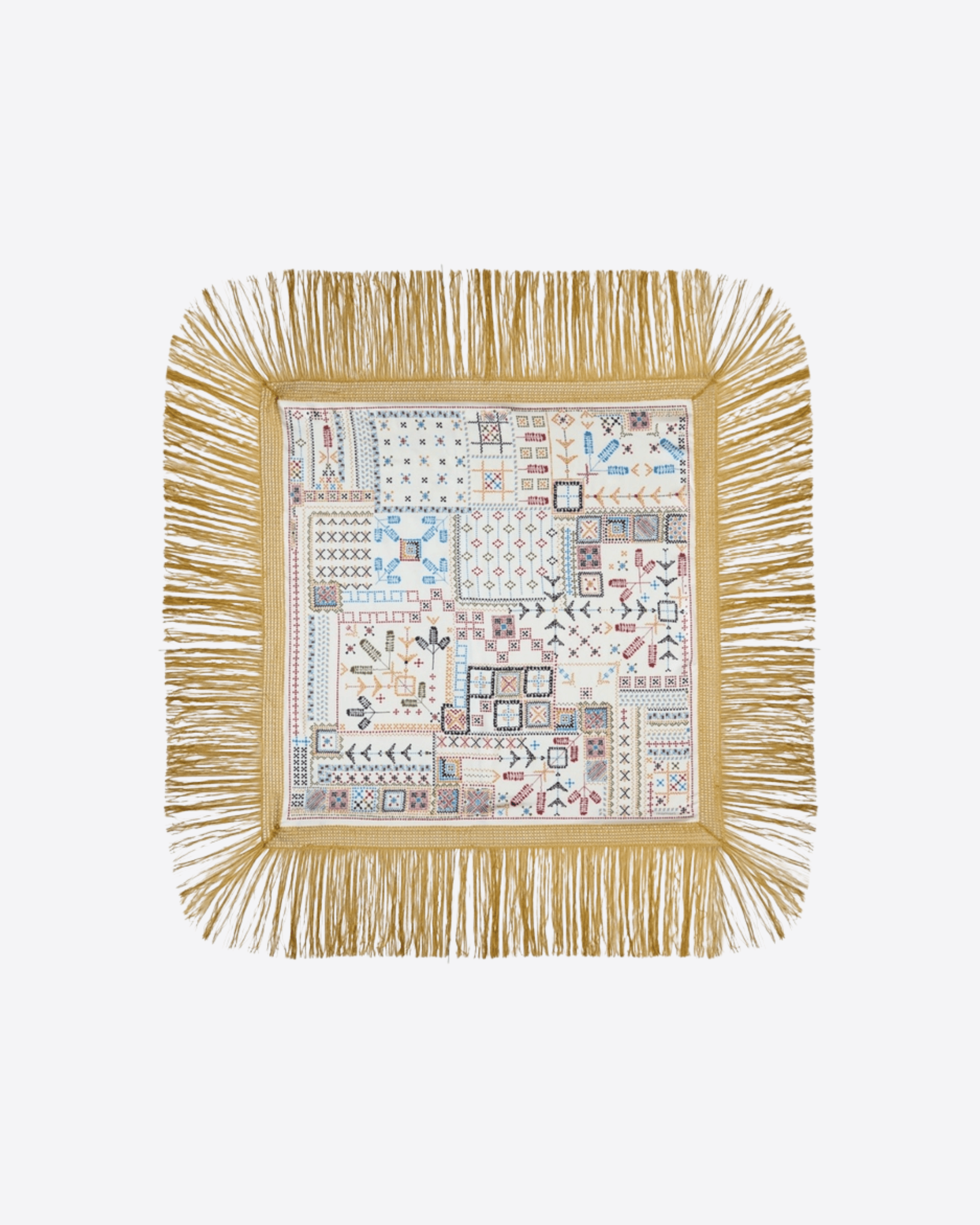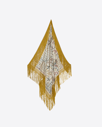 Foulard in twill di seta, impreziosito da frange in tripolino e realizzato con esclusive stampe piazzate Momonì. Leggero e raffinato, è interamente Made in Italy e dona un tocco ricercato e distintivo a ogni look.