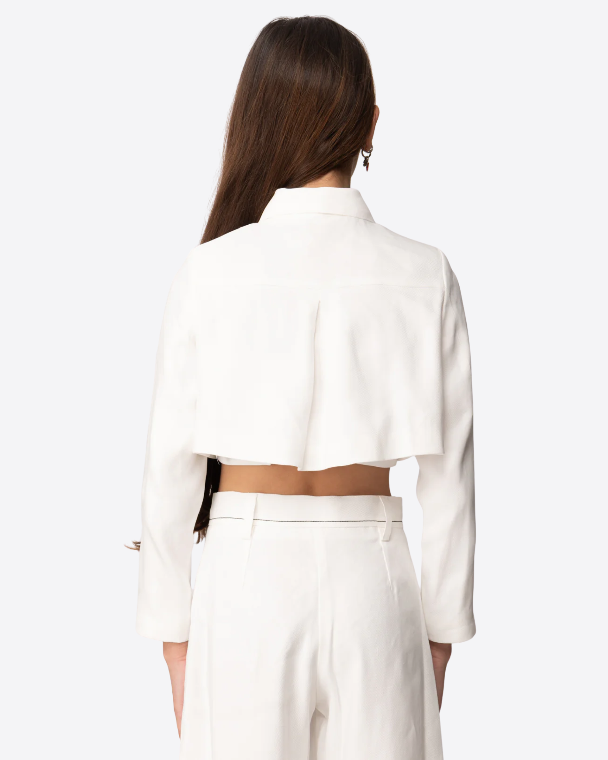 Il design pulito ed essenziale è impreziosito dal colletto classico, che conferisce un tocco sartoriale, e dalla chiusura frontale con bottone gioiello, dettaglio luminoso e distintivo. Realizzata in misto lino, assicura leggerezza, comfort e vestibilità ottimale anche durante le giornate più attive.