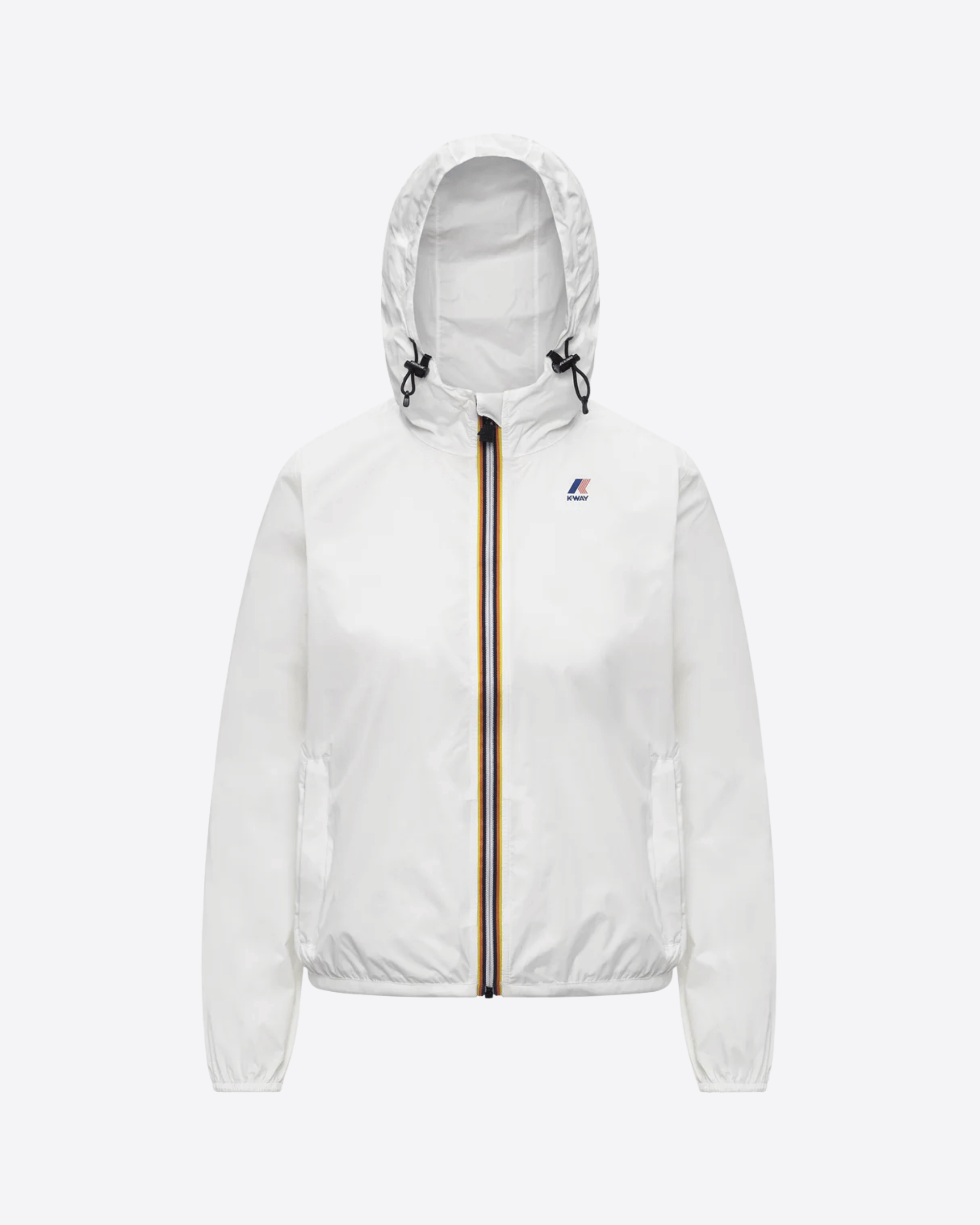 Claudette è una giacca corta da donna che unisce lo spirito sportivo e funzionale di K-Way al comfort quotidiano. Realizzata in micro ripstop 100% riciclato con cuciture termonastrate, resiste a pioggia e vento pur rimanendo traspirante. Ripiegabile nella tasca integrata, è pratica da portare in borsa o nello zaino. Il cappuccio regolabile, la chiusura zip con patta antivento, le tasche con zip, i polsini e il bordo fondo elasticizzati completano un design funzionale e versatile, arricchito dal logo colorato stampato.