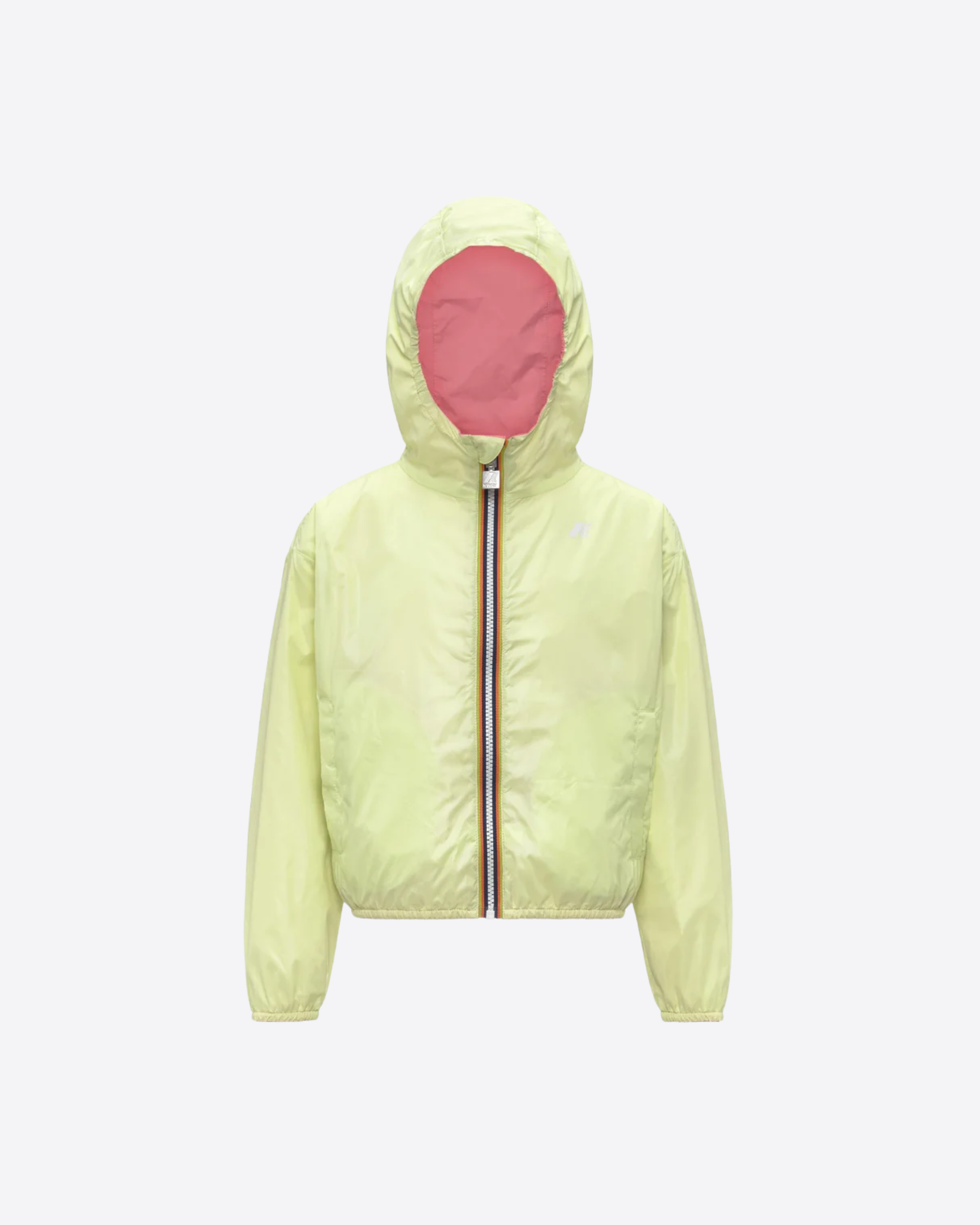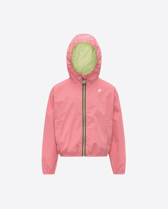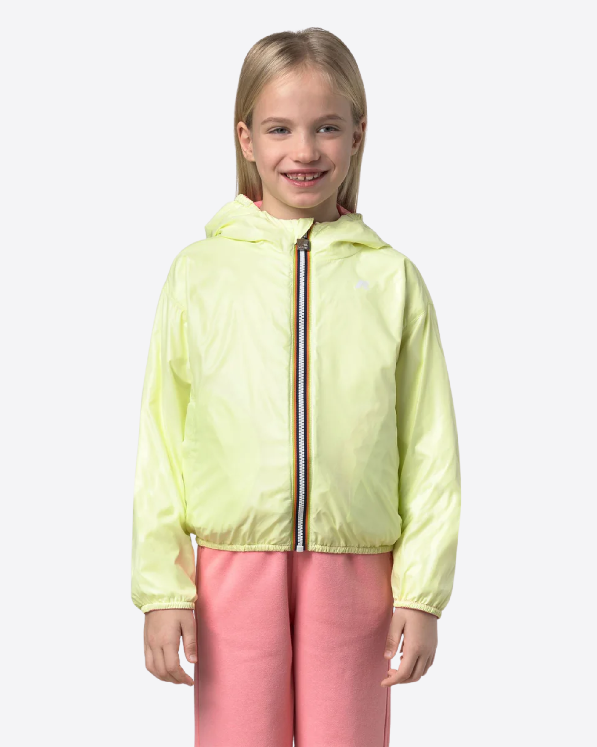 Laurette è una giacca corta da bambina dal design pratico e funzionale, impacchettabile e reversibile. Il modello presenta un lato in nylon spalmato e un lato in nylon liscio in colore a contrasto, per offrire versatilità e due look in un unico capo.