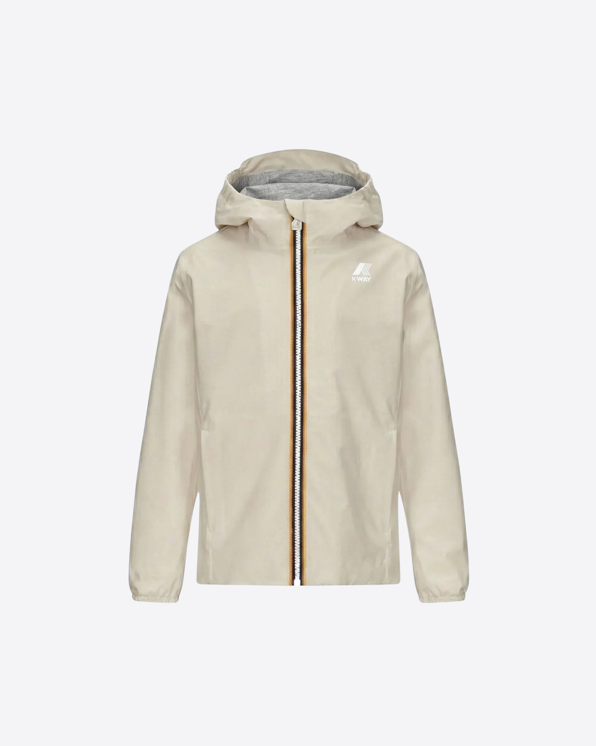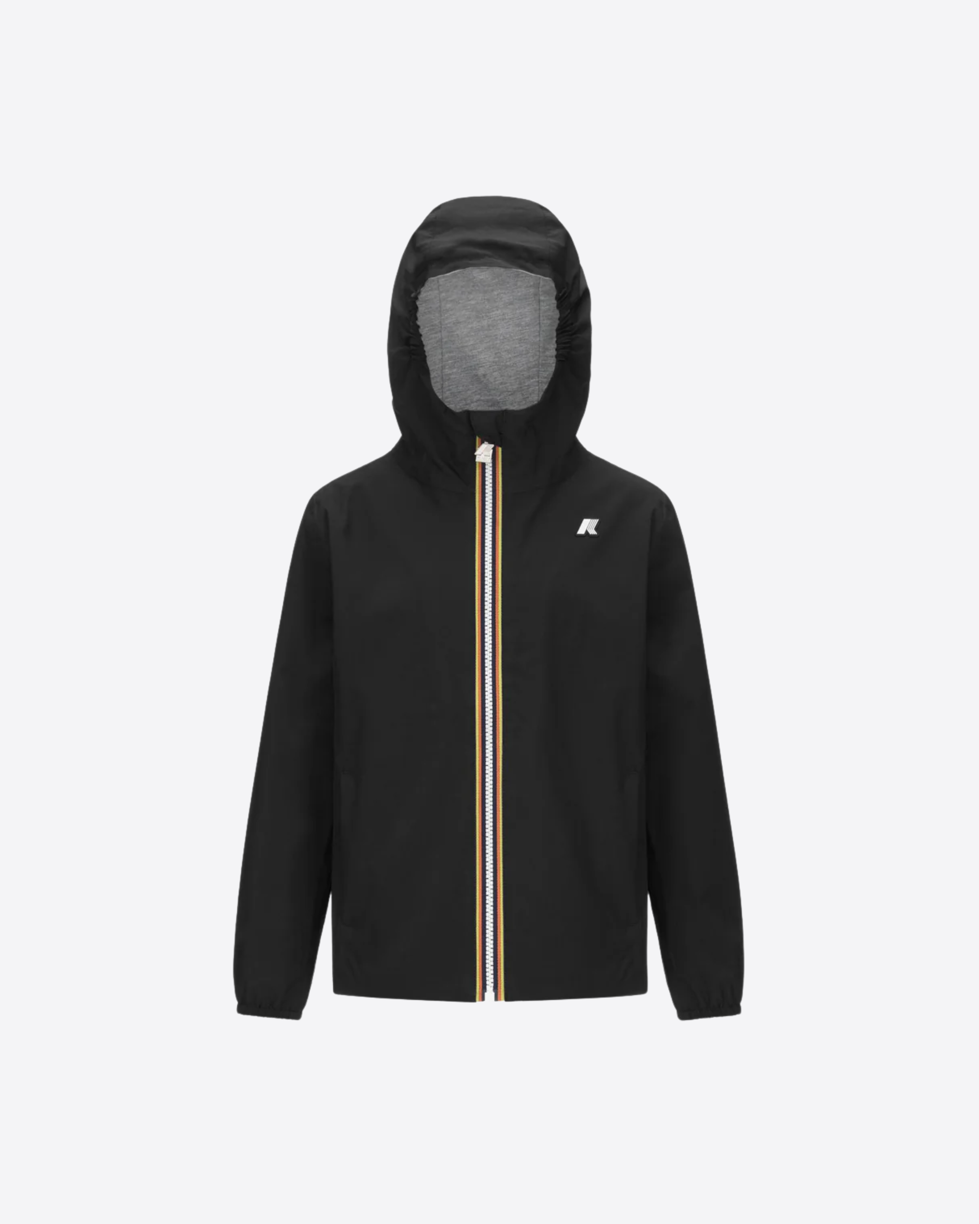 La giacca presenta cuciture termonastrate, cappuccio non staccabile, chiusura con zip, polsi elasticizzati e fondo regolabile per una vestibilità confortevole e adattabile. Completano il design due tasche con zip, un taglio di ventilazione sul retro e un fitting regolare. Il logo applicato colorato aggiunge un dettaglio distintivo firmato K-Way.