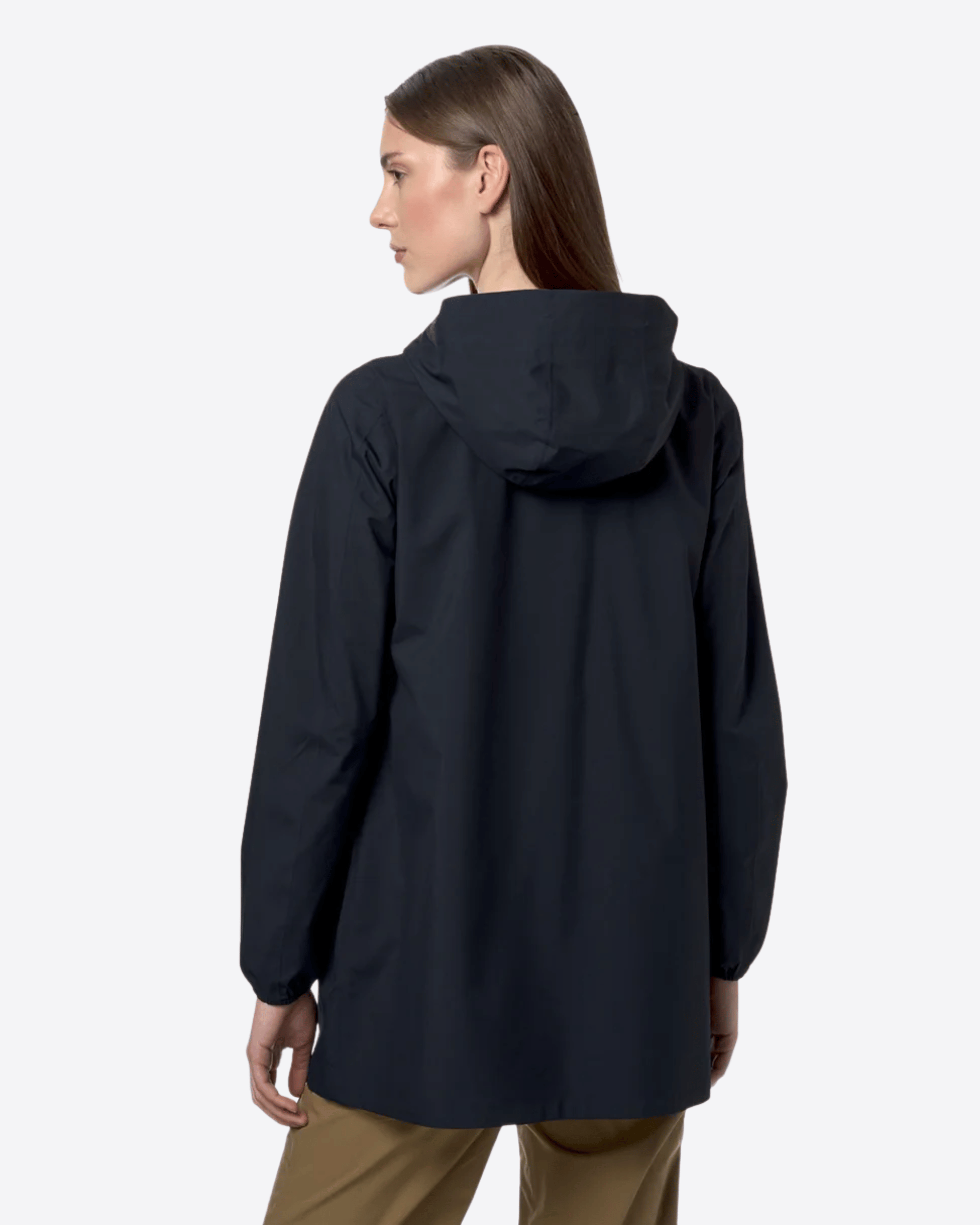Sophie è una giacca da donna a tre quarti con vestibilità slim, ideale per le mezze stagioni. Realizzata in tessuto tecnico elasticizzato, segue i movimenti e protegge dal vento e dalla pioggia fino a 10000 mm di colonna d’acqua. L’interno è foderato con una membrana isolante decorata con lettering K-Way stampato all over in tonalità argento. Le tasche laterali con zip, il cappuccio avvolgente, i polsini elastici e la chiusura zip con patta di copertura garantiscono funzionalità e comodità, mentre il fitting slim e il logo bianco stampato completano un design elegante e tecnico.