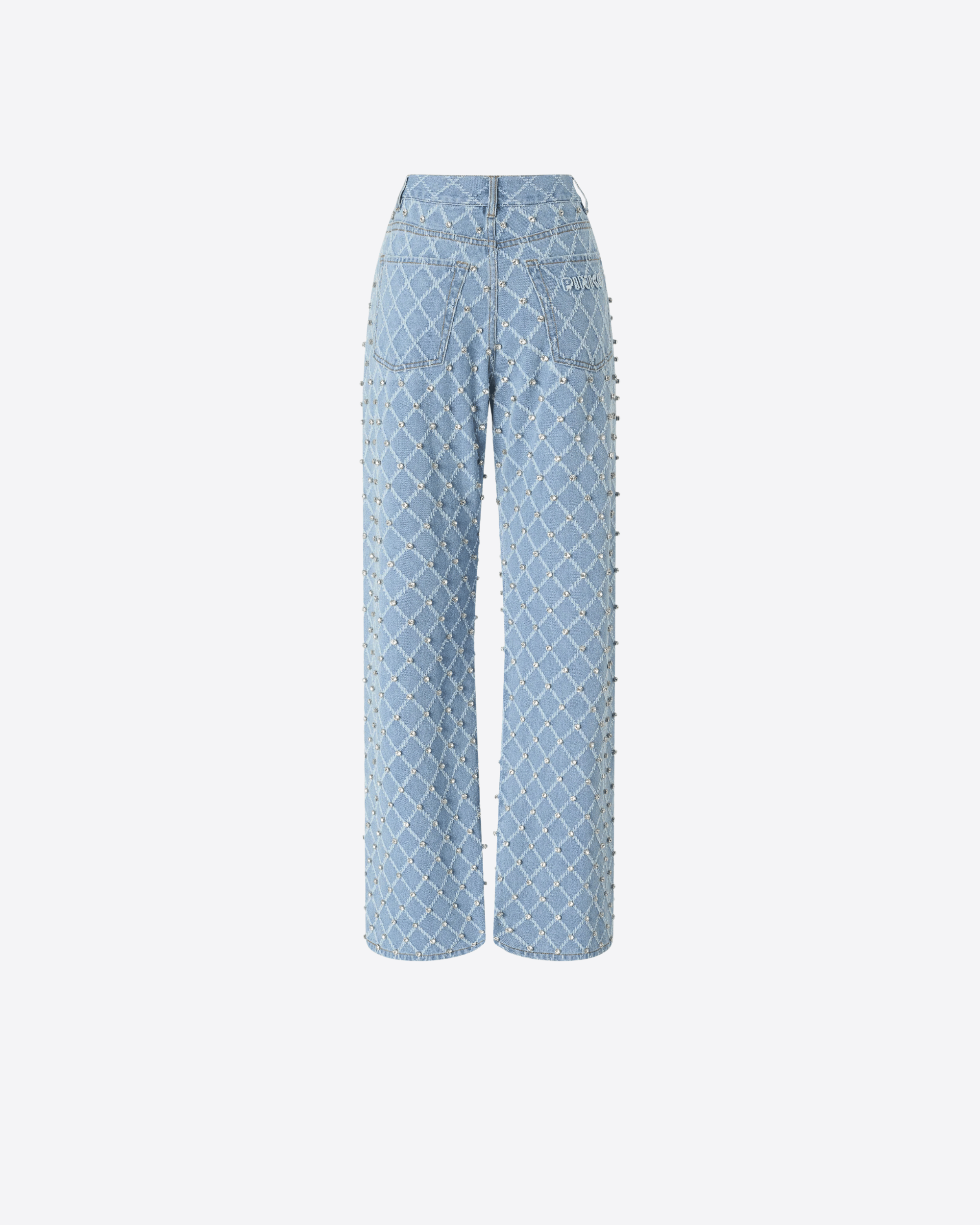 JEANS WIDE LEG CON DISEGNO ROMBI E STRASS PINKO